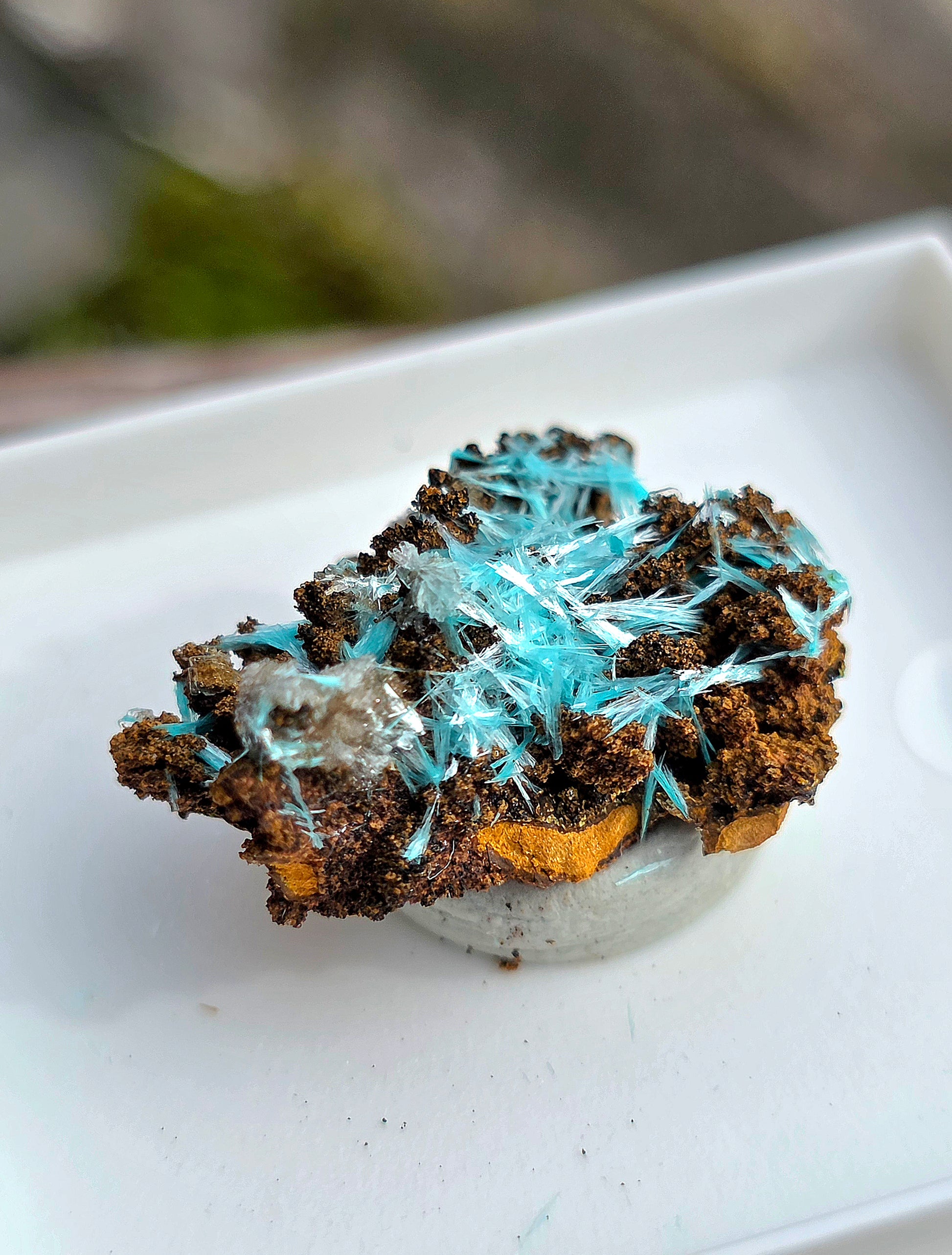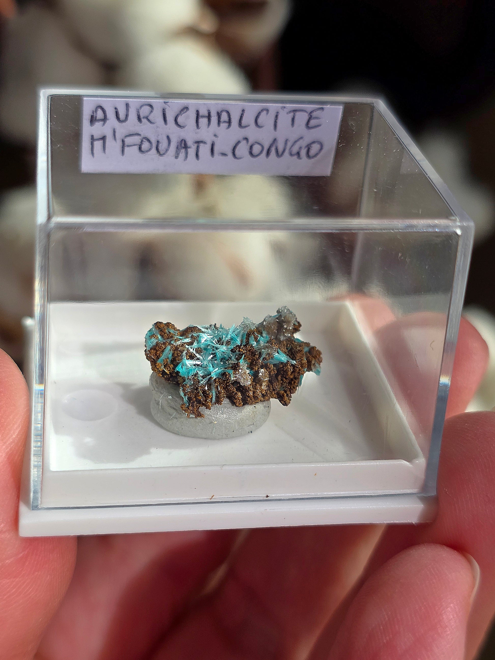 Magnifique Aurichalcite du Congo (rare de cette provenance) vendue dans sa boîte vitrine.