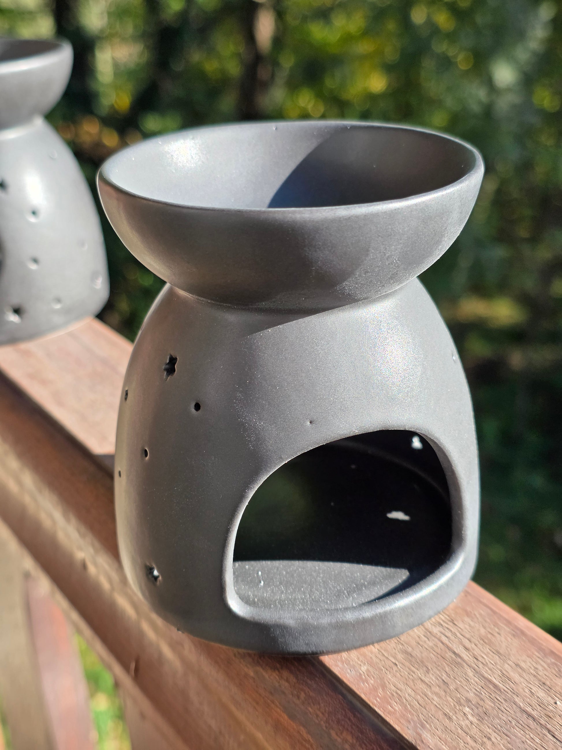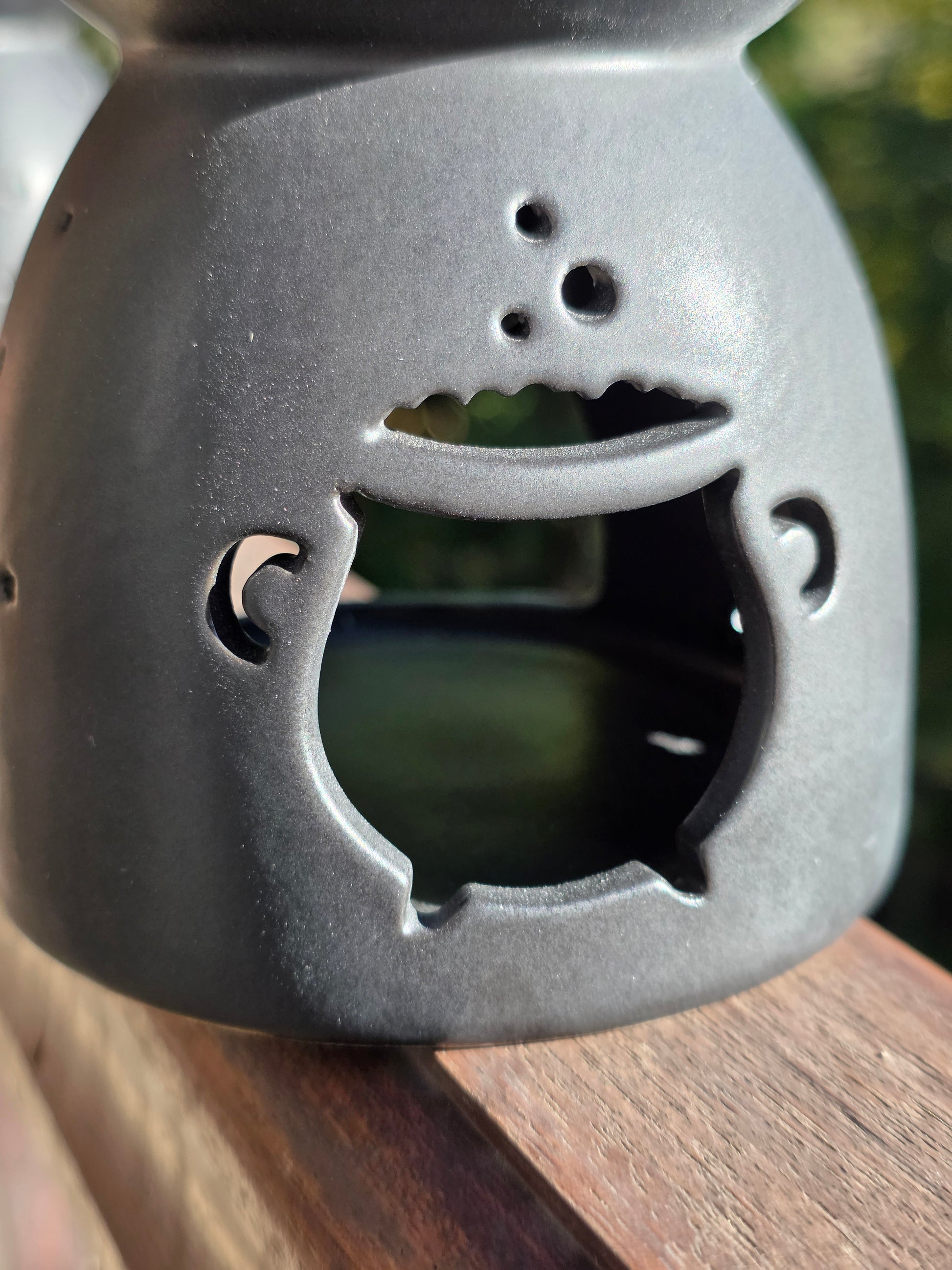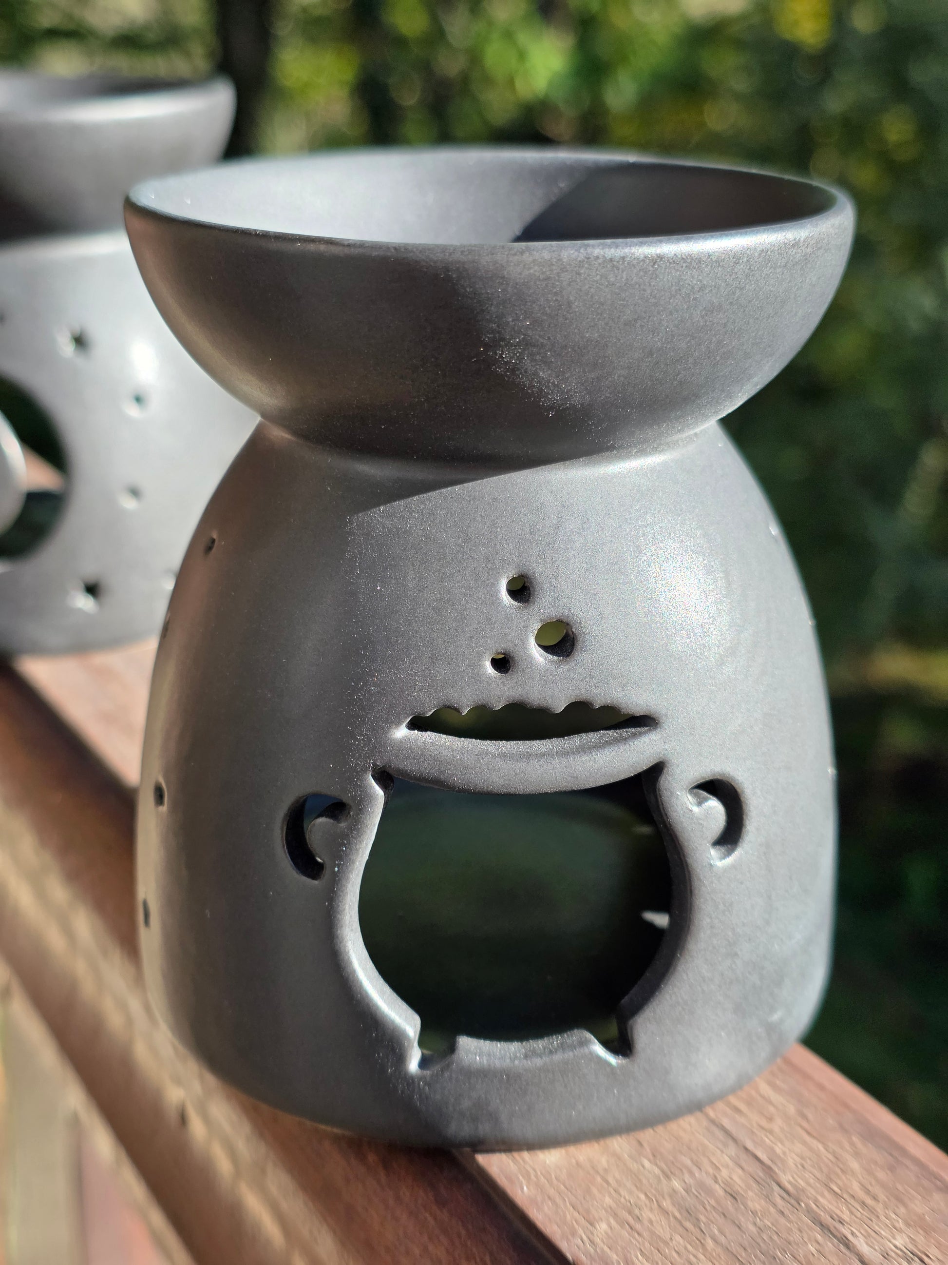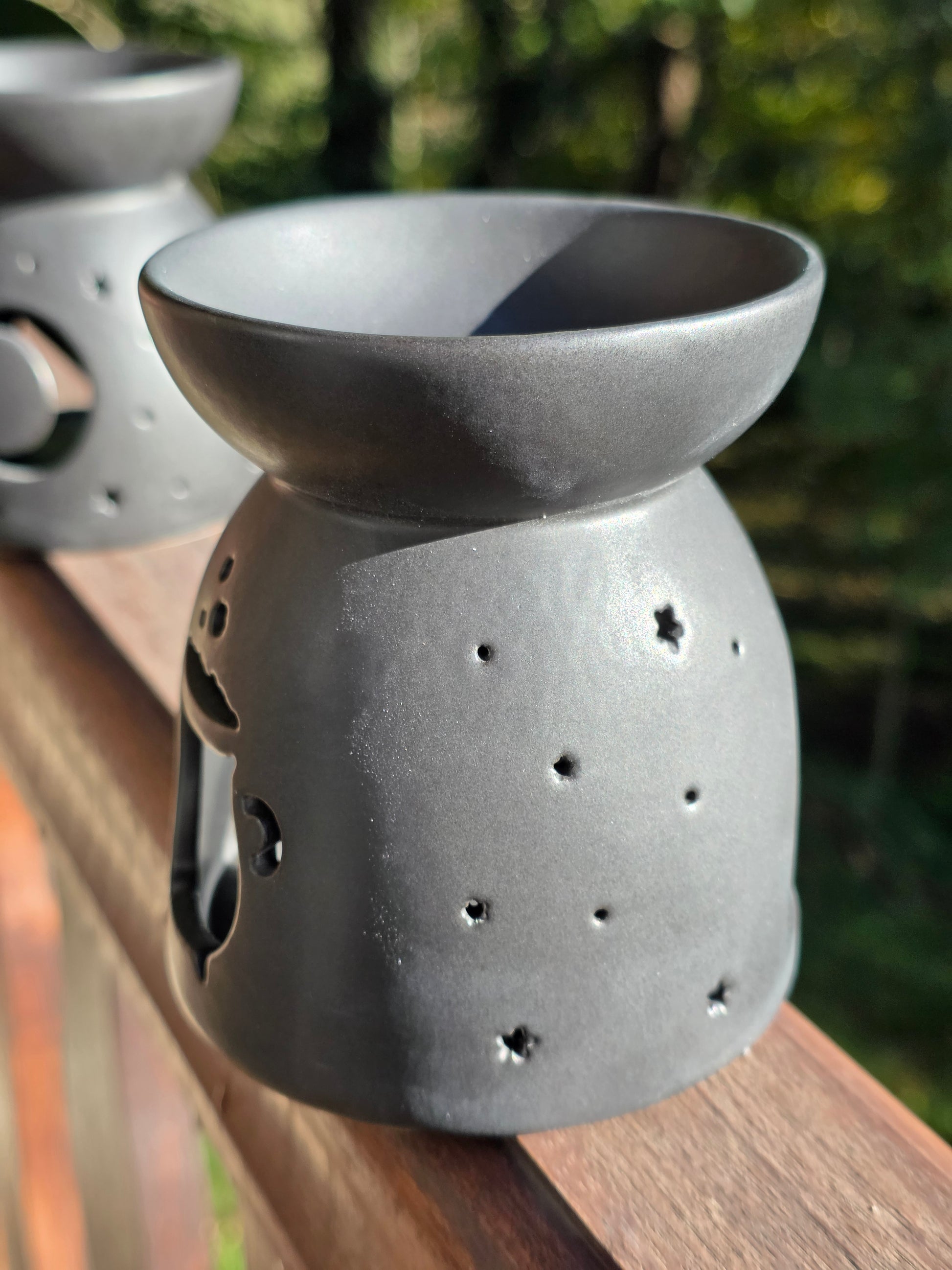Brûleur pour huiles ou petits fondants en cire. Fonctionne avec une bougie chauffe plat (non fournie). Vous pouvez également déposer vos encens dans le haut du brûleur ou votre résine.