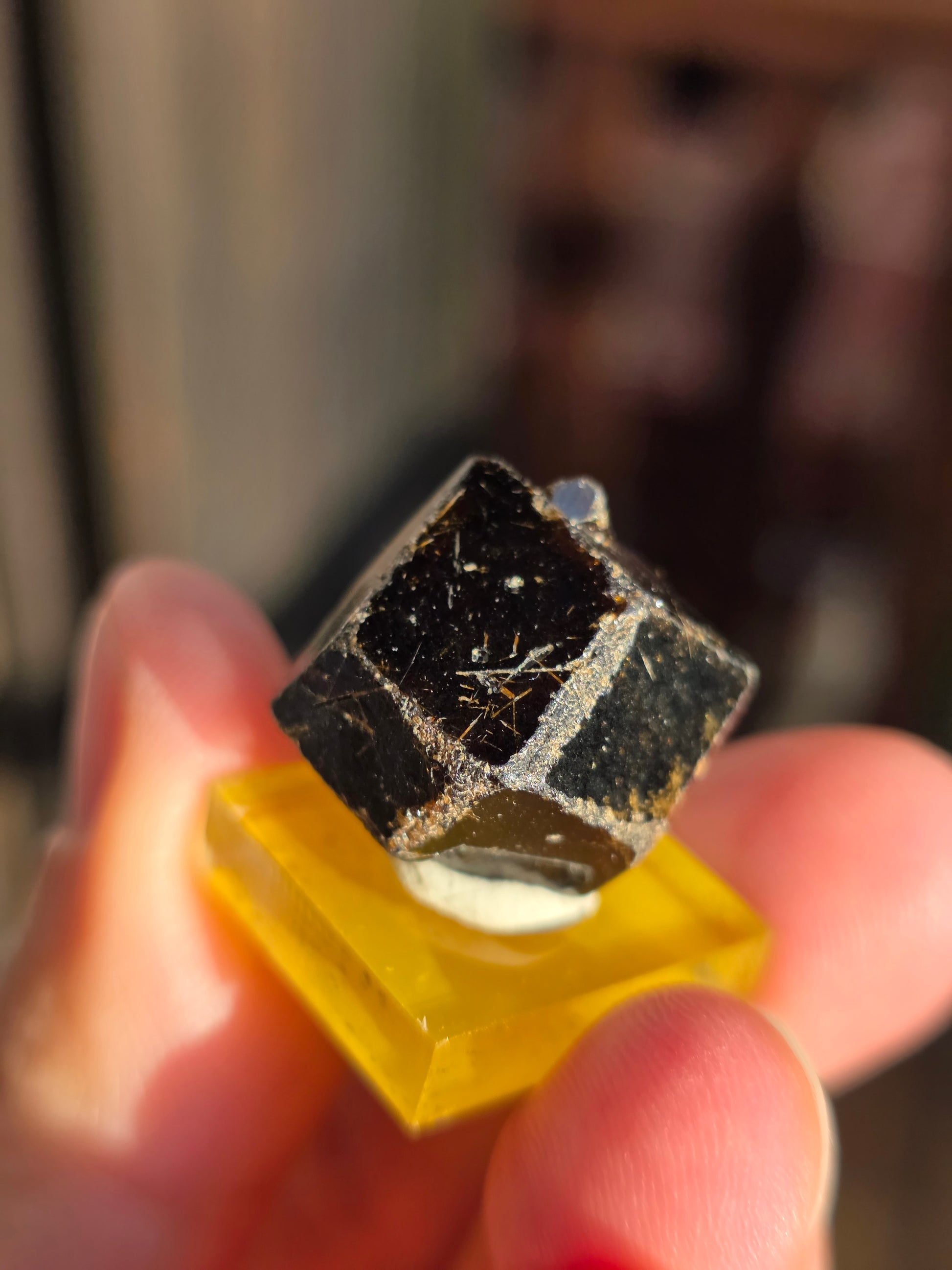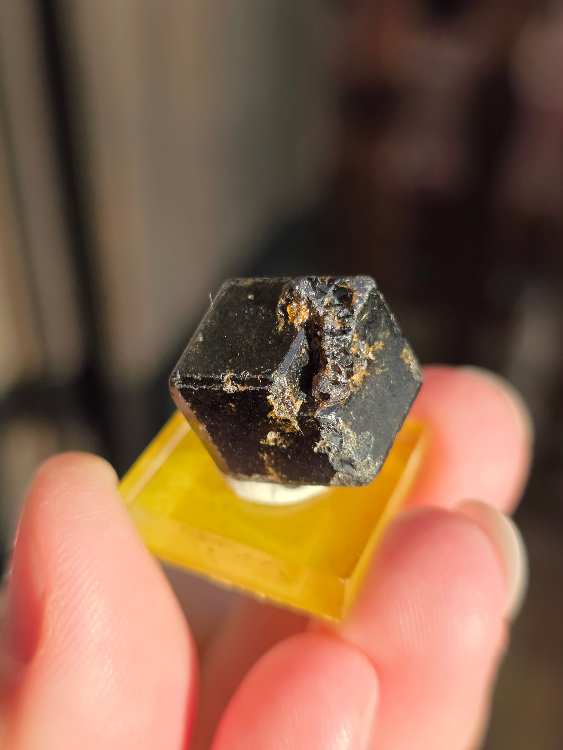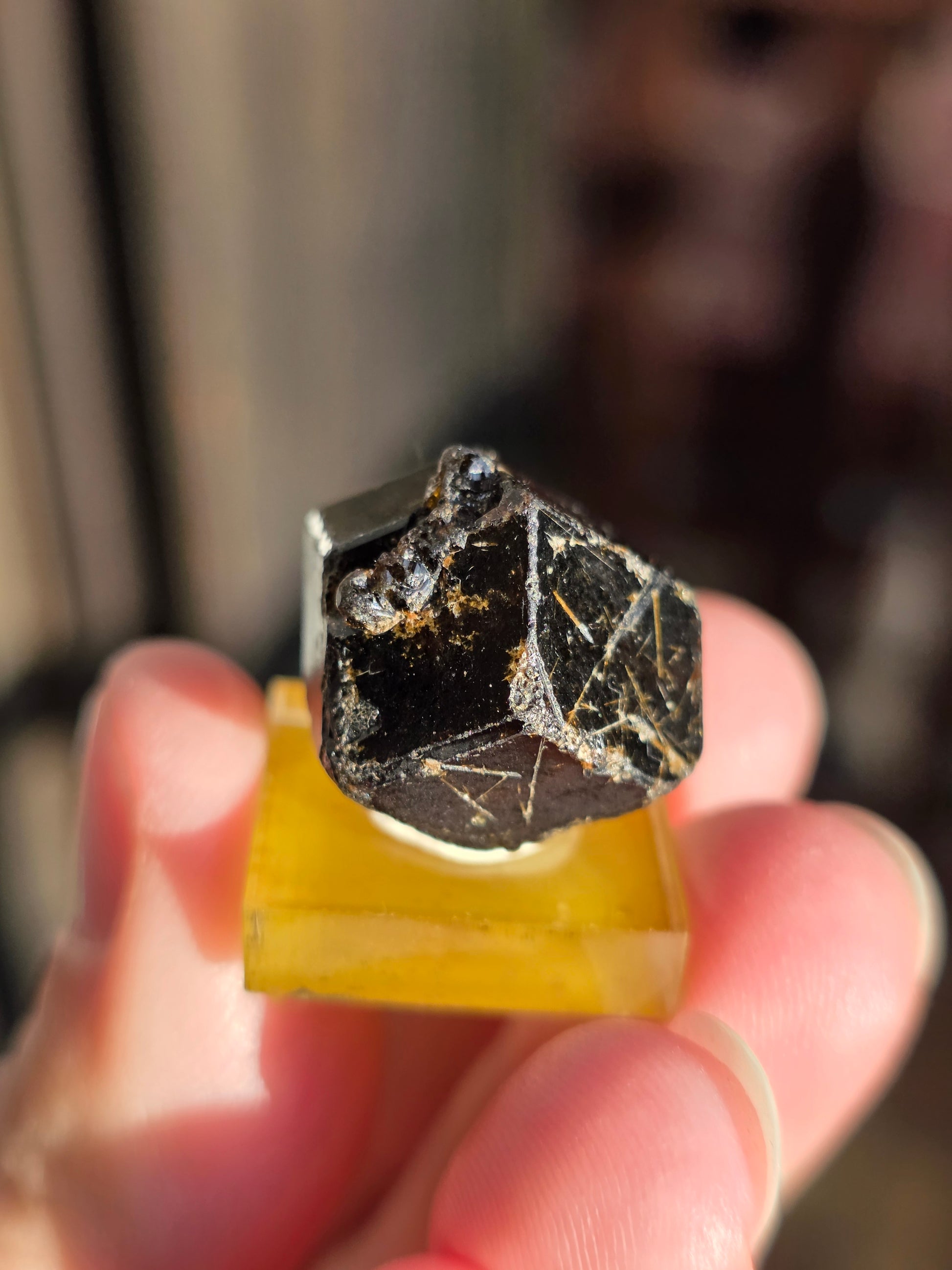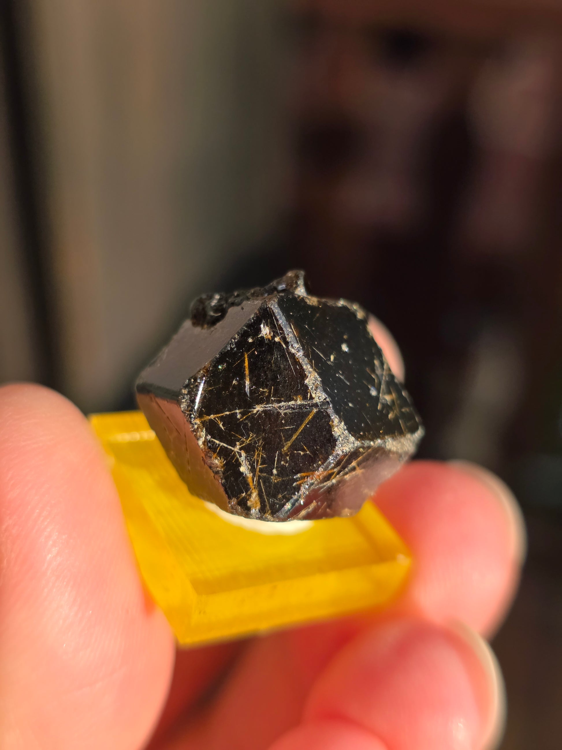 Joli Grenat Mélanite du Mali sur son socle en acrylique. (vidéo ici)