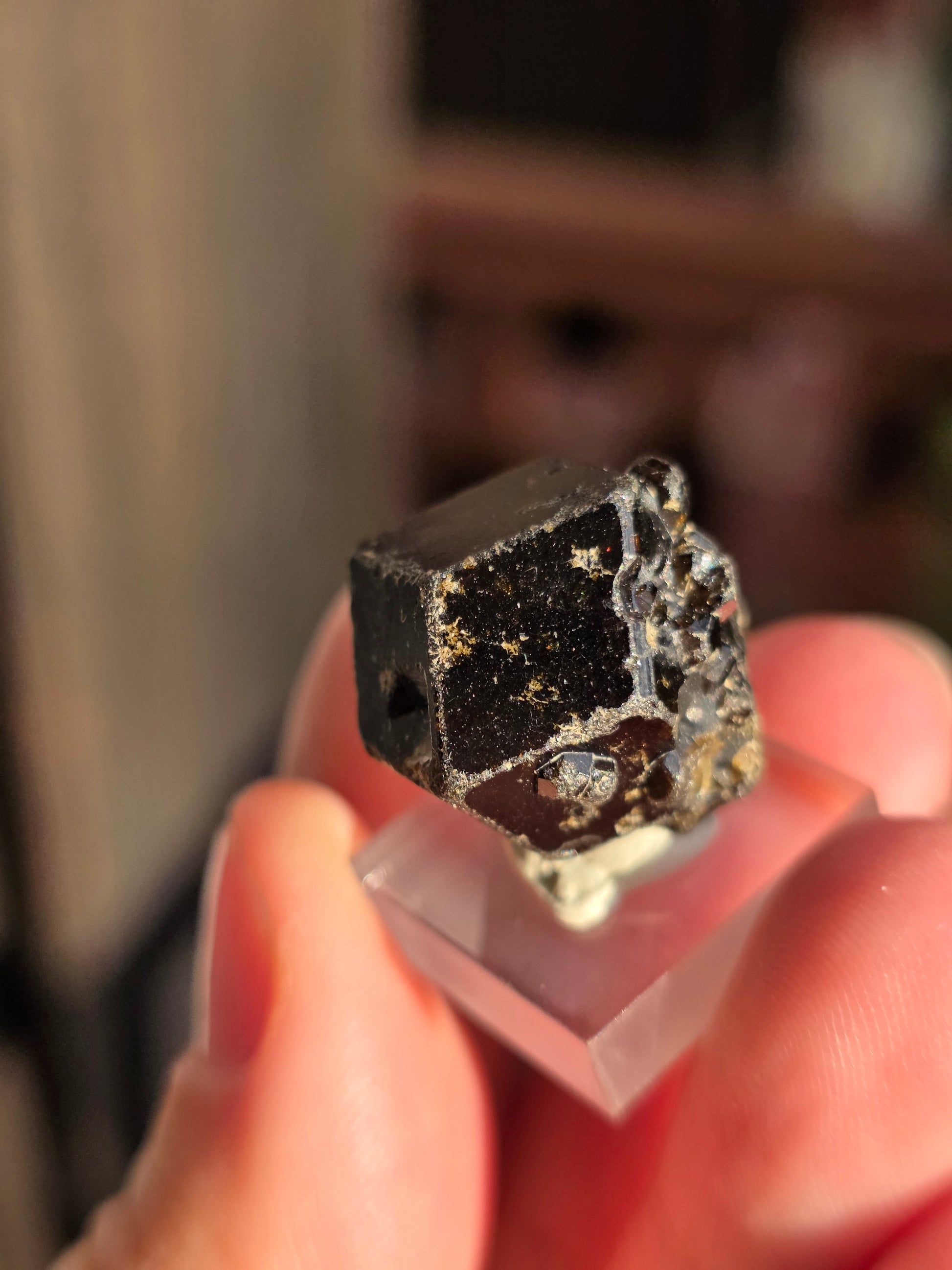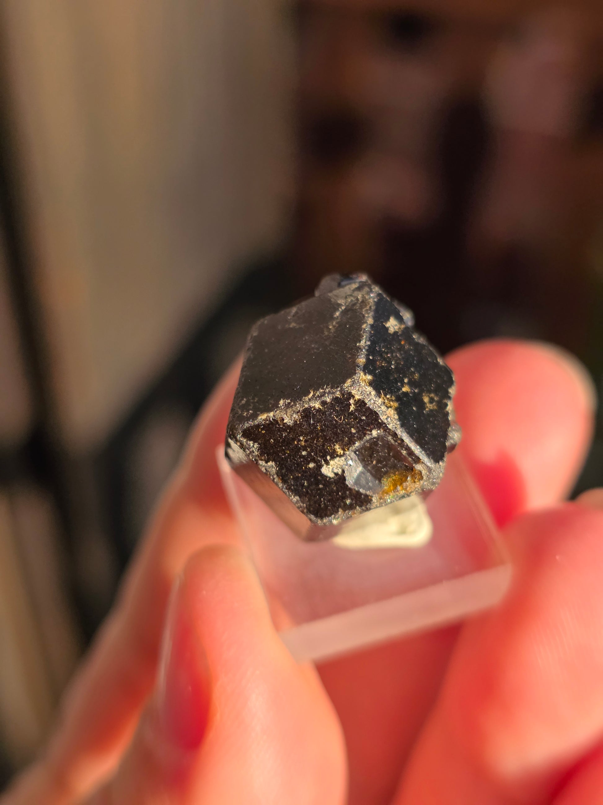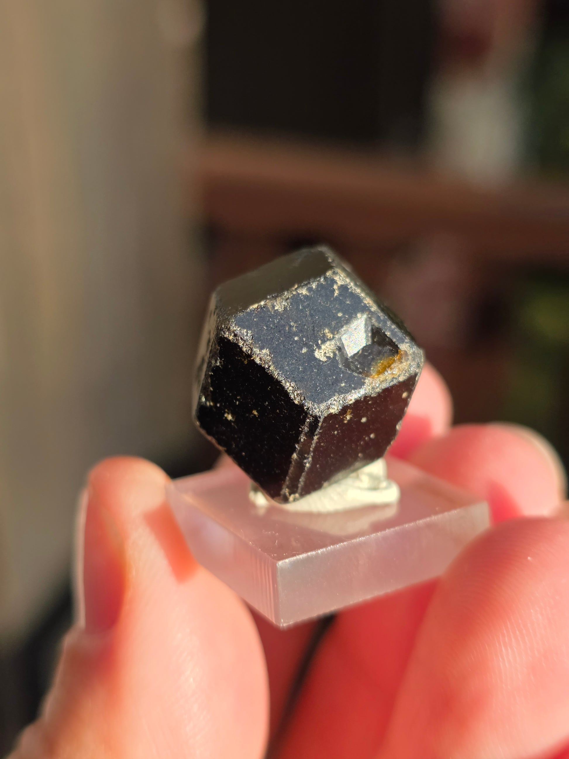 Joli Grenat Mélanite du Mali sur son socle en acrylique. (vidéo ici)
