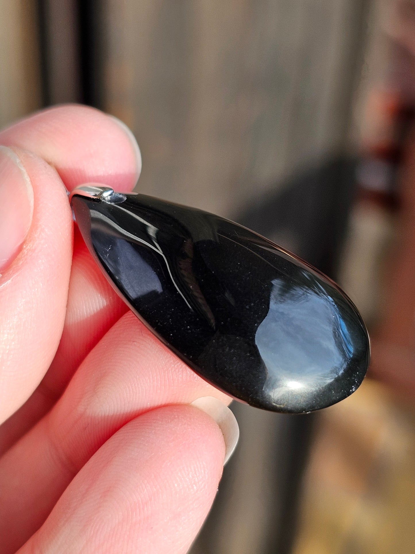 Superbe pendentif en Obsidienne œil céleste monté sur une bélière en argent 925.