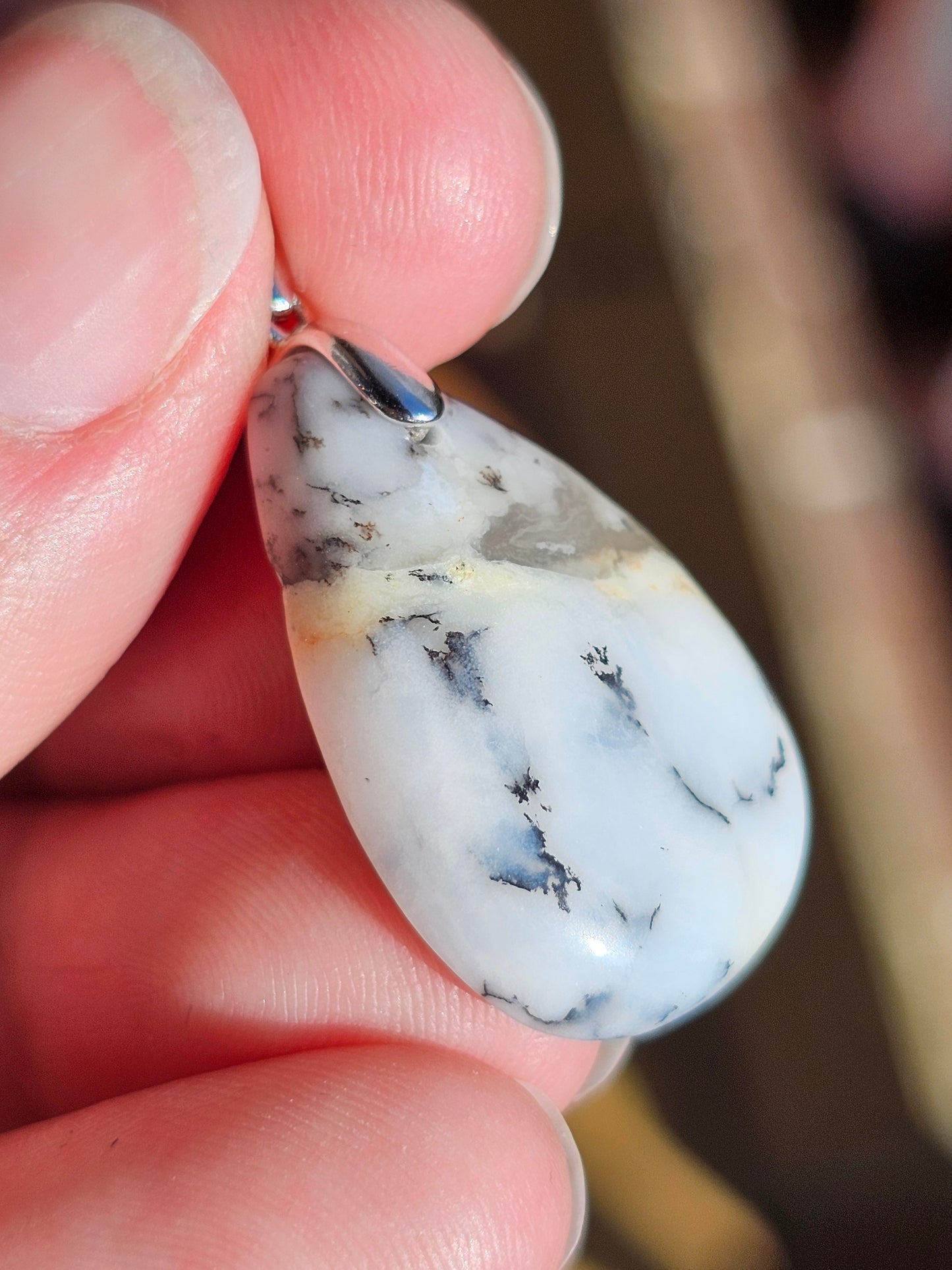 Joli pendentif en Opale dendritique monté sur une bélière en argent 925.