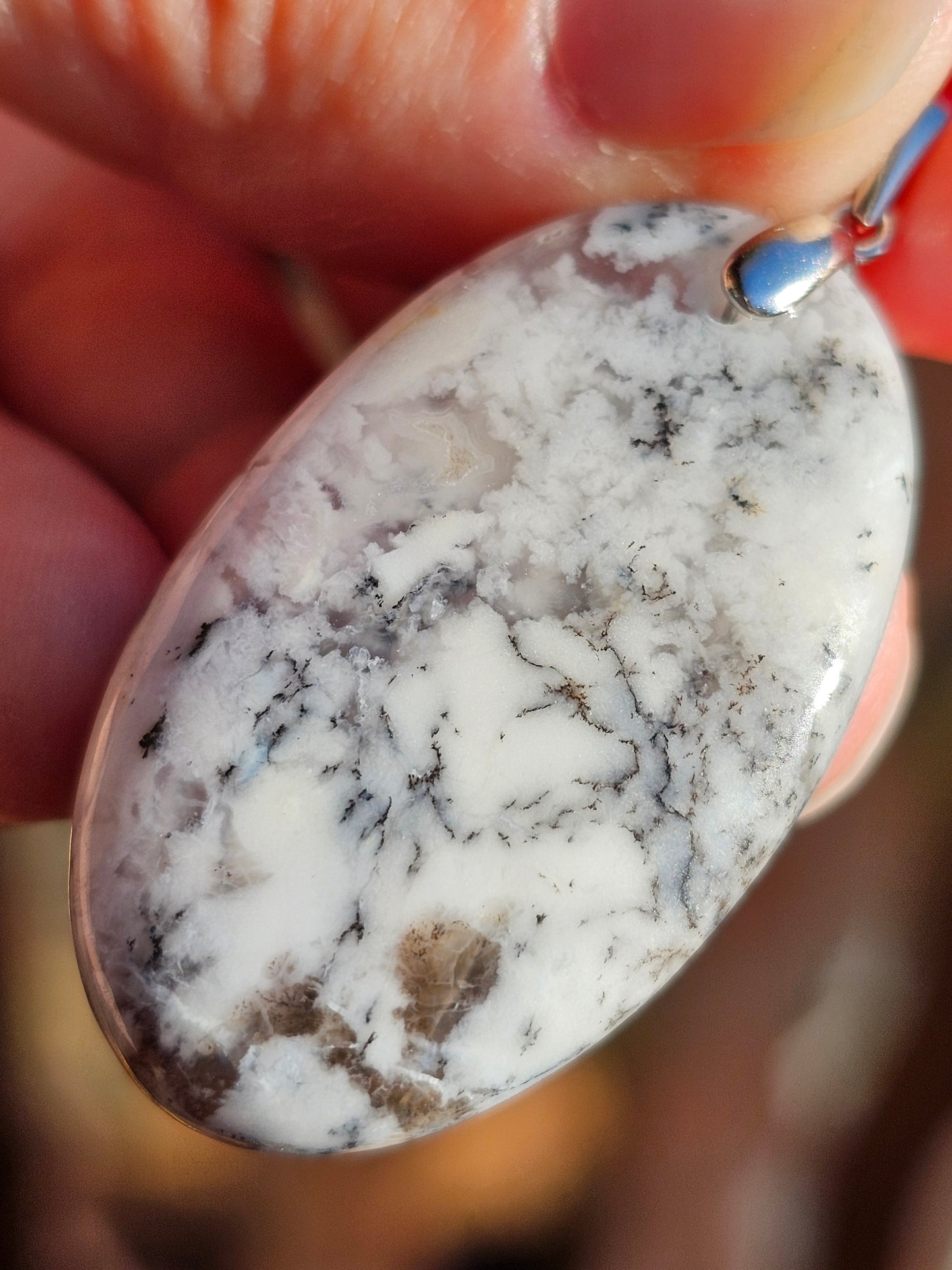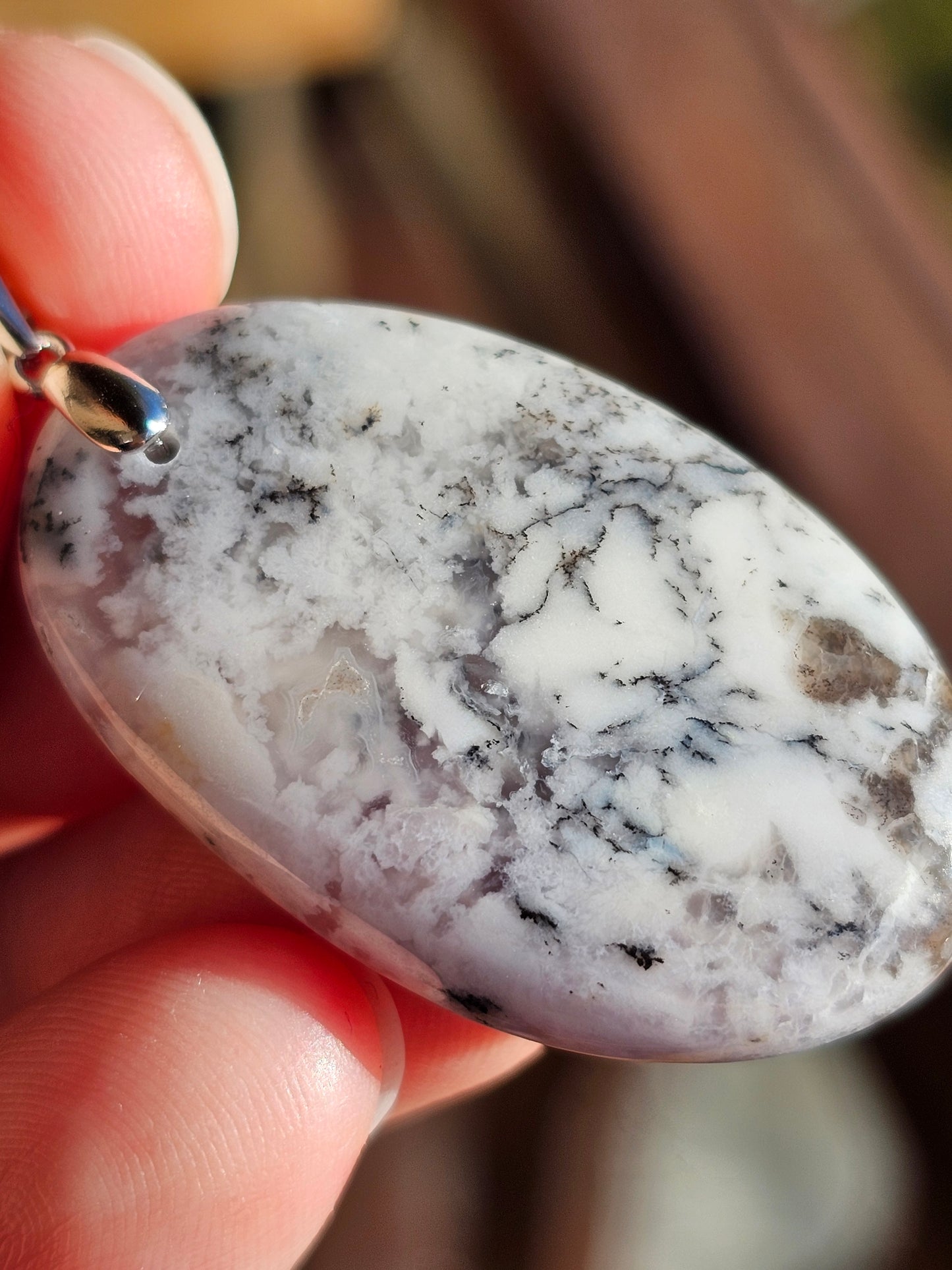 Joli pendentif en Opale dendritique monté sur une bélière en argent 925.