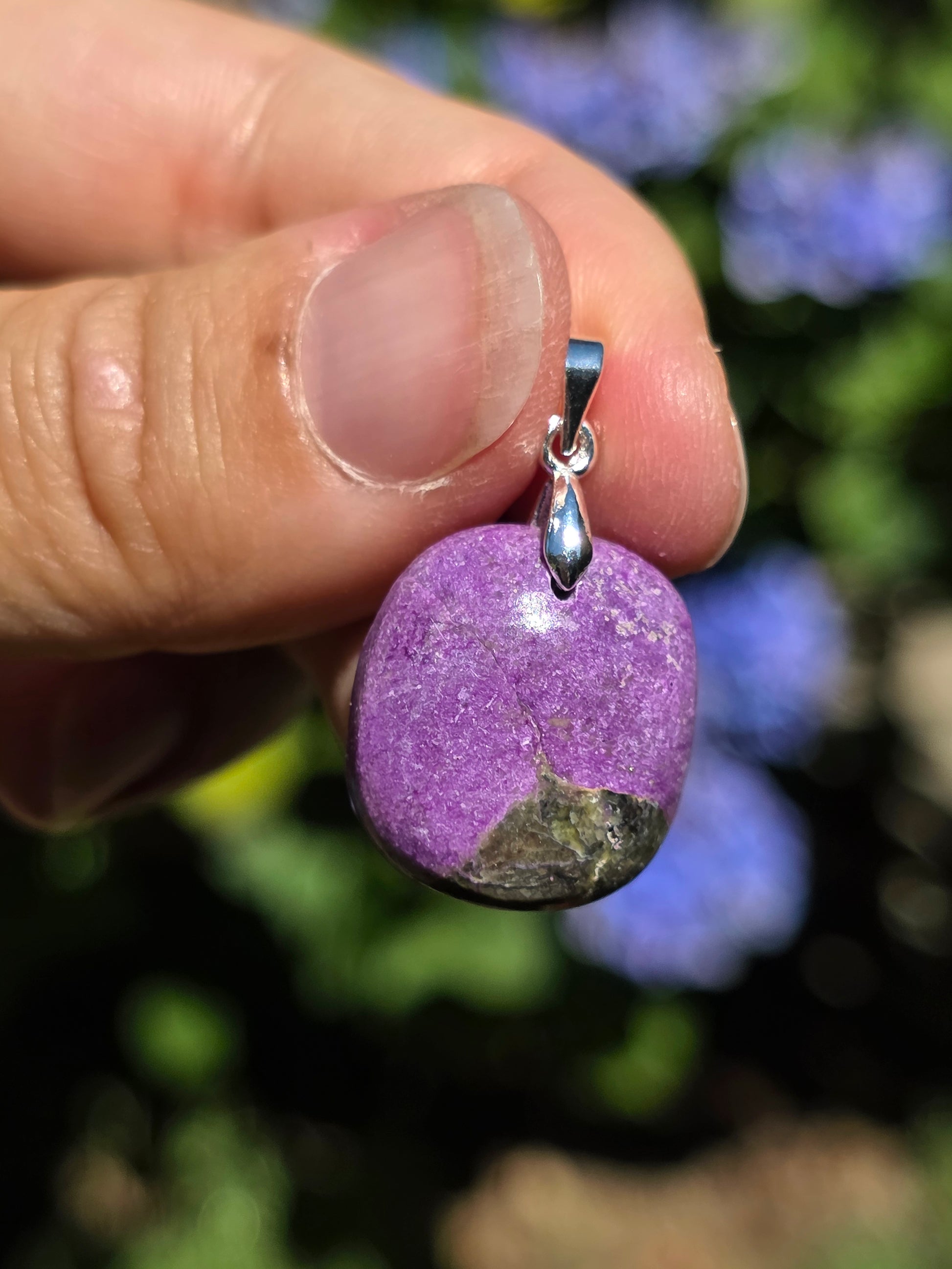 Joli pendentif en Stitchite d'Australie monté sur une bélière en argent 925. Certains pendentifs ont des inclusions de Serpentine (vert).