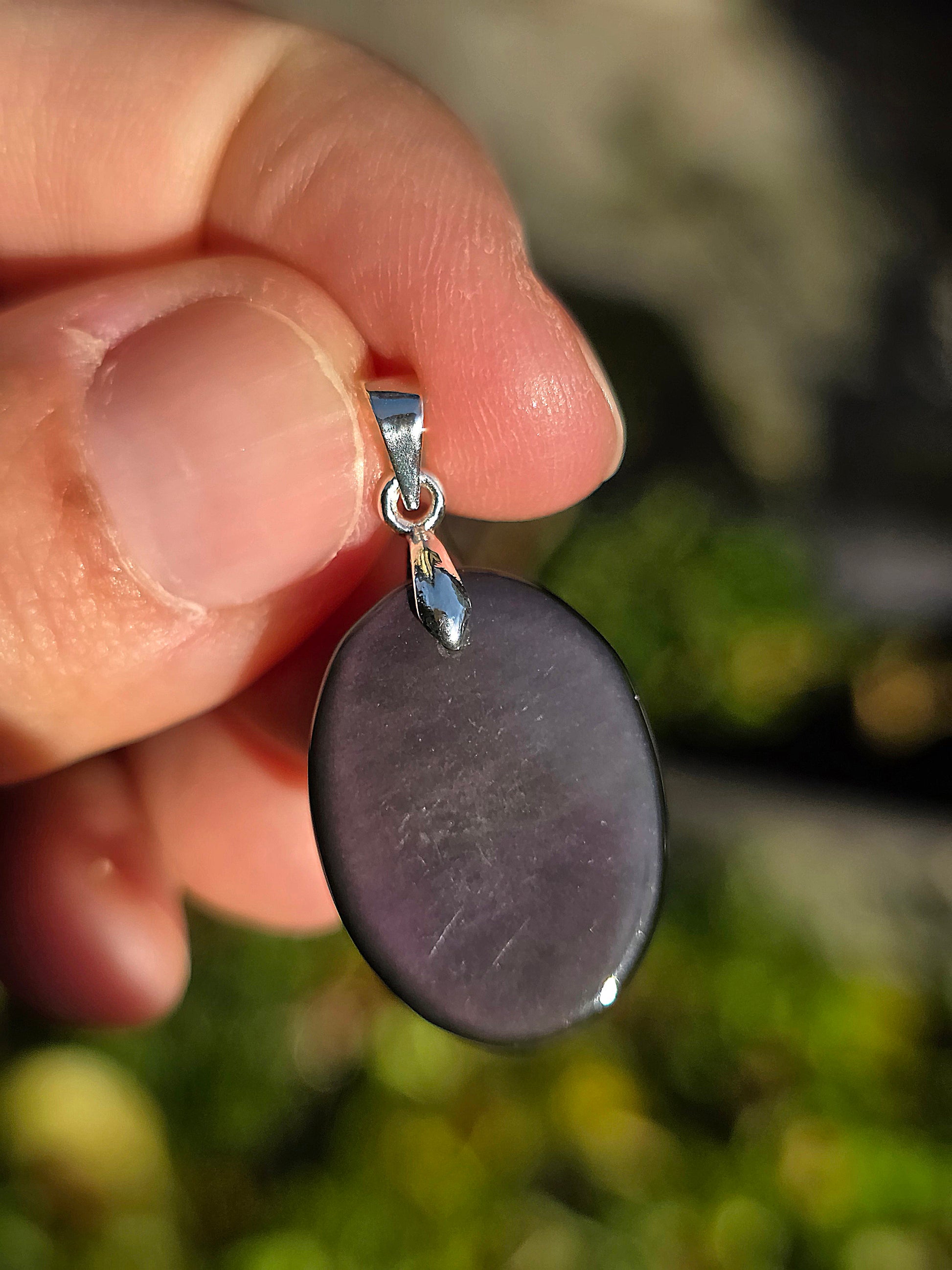 Magnifique pendentif en Obsidienne Oeil céleste, montée sur une bélière en argent à choisir.