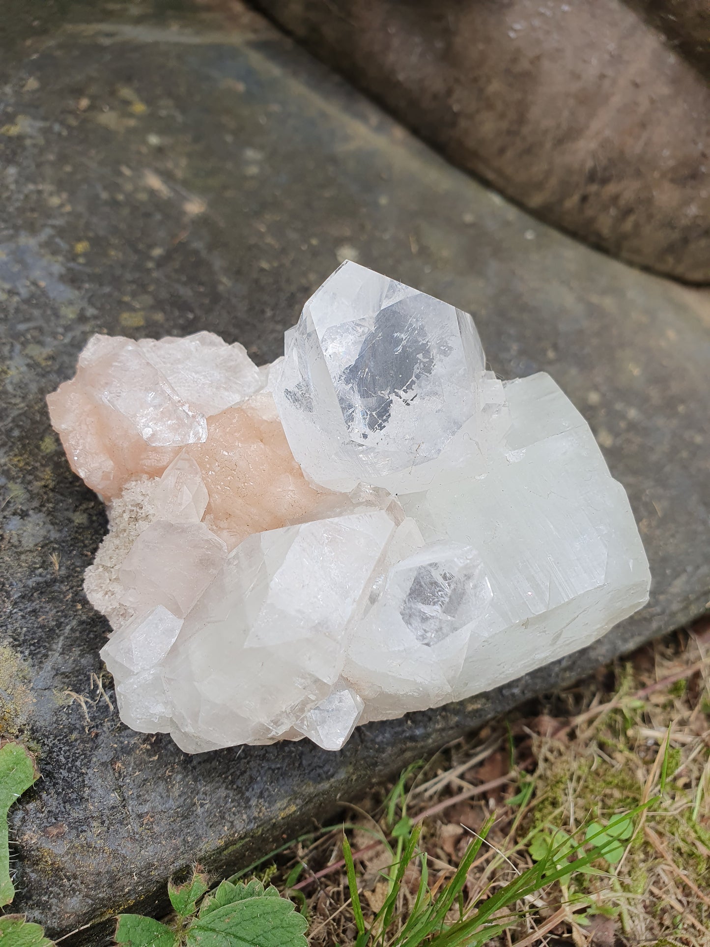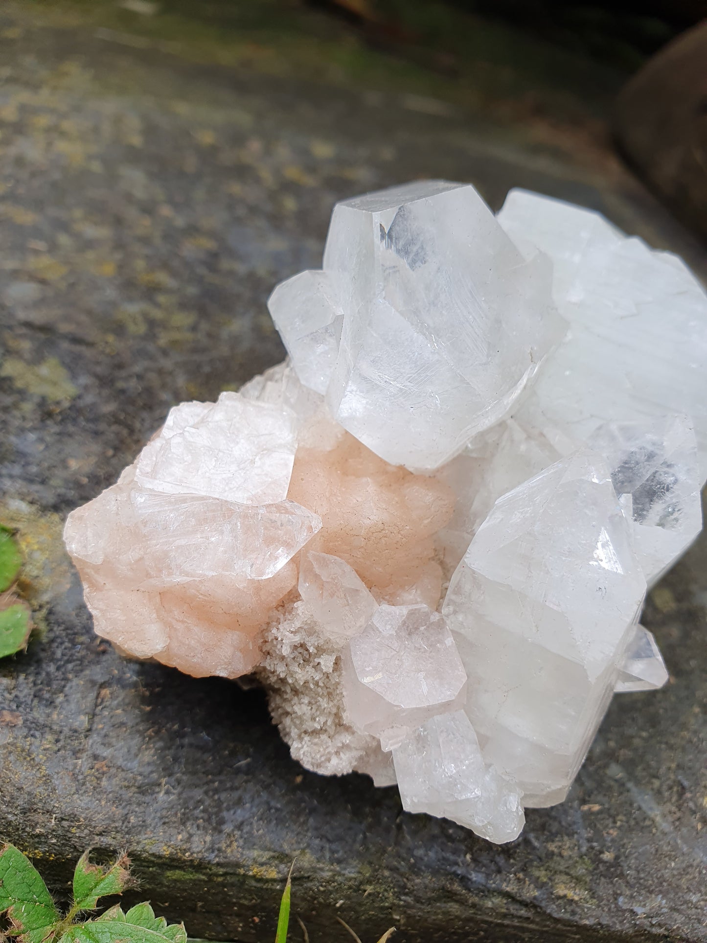 Sublime mélange d'apophyllite, stilbite et calcédoine en provenance d'Inde.