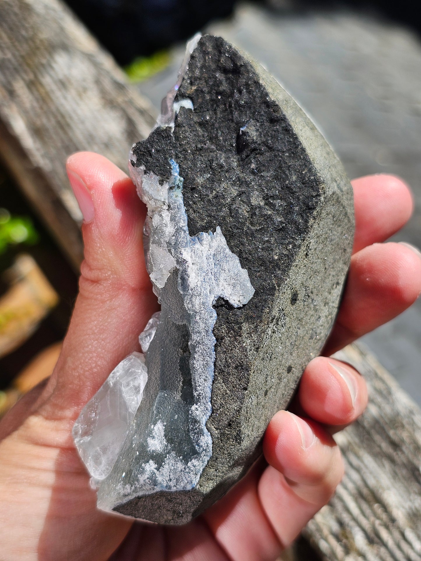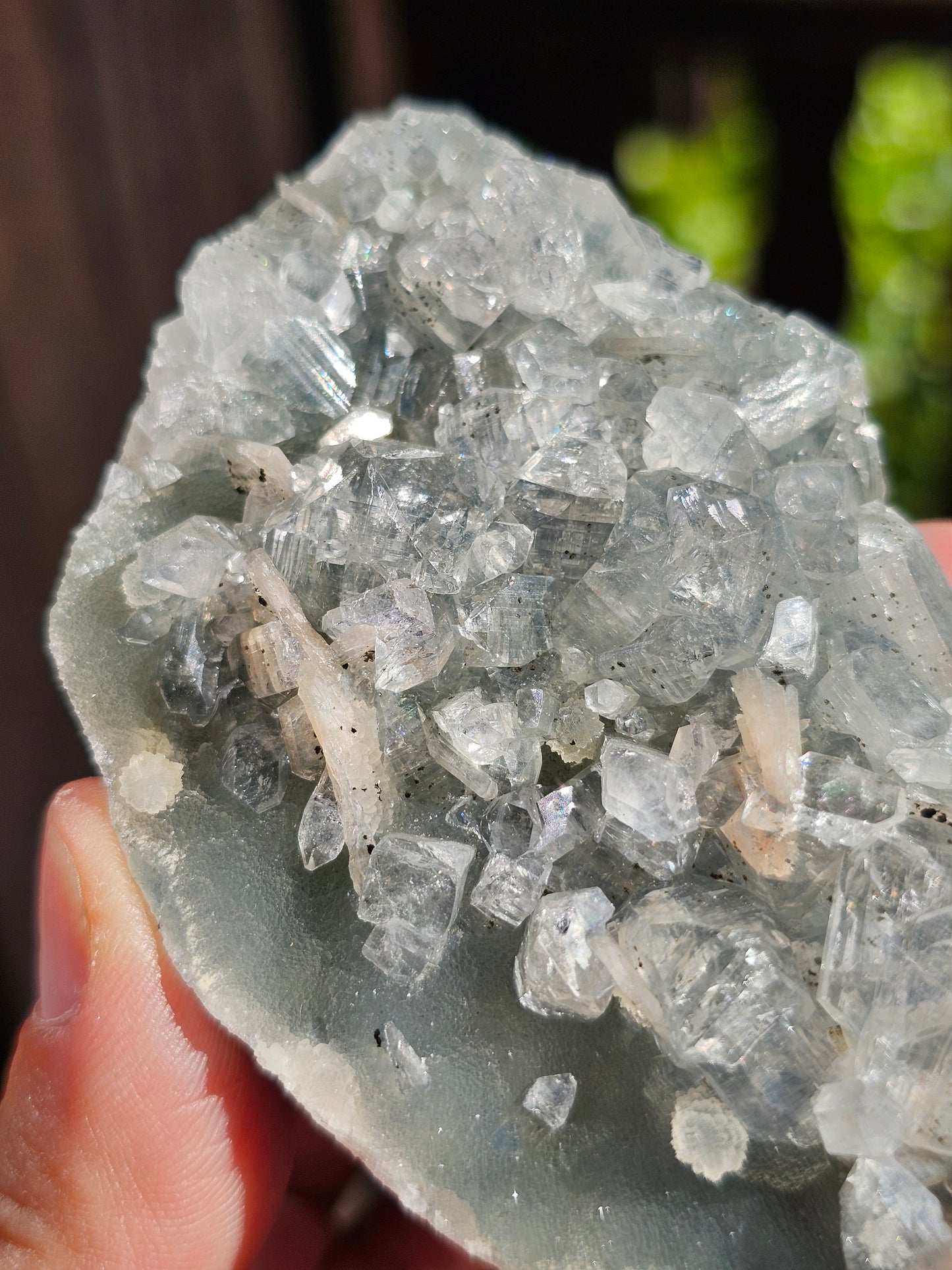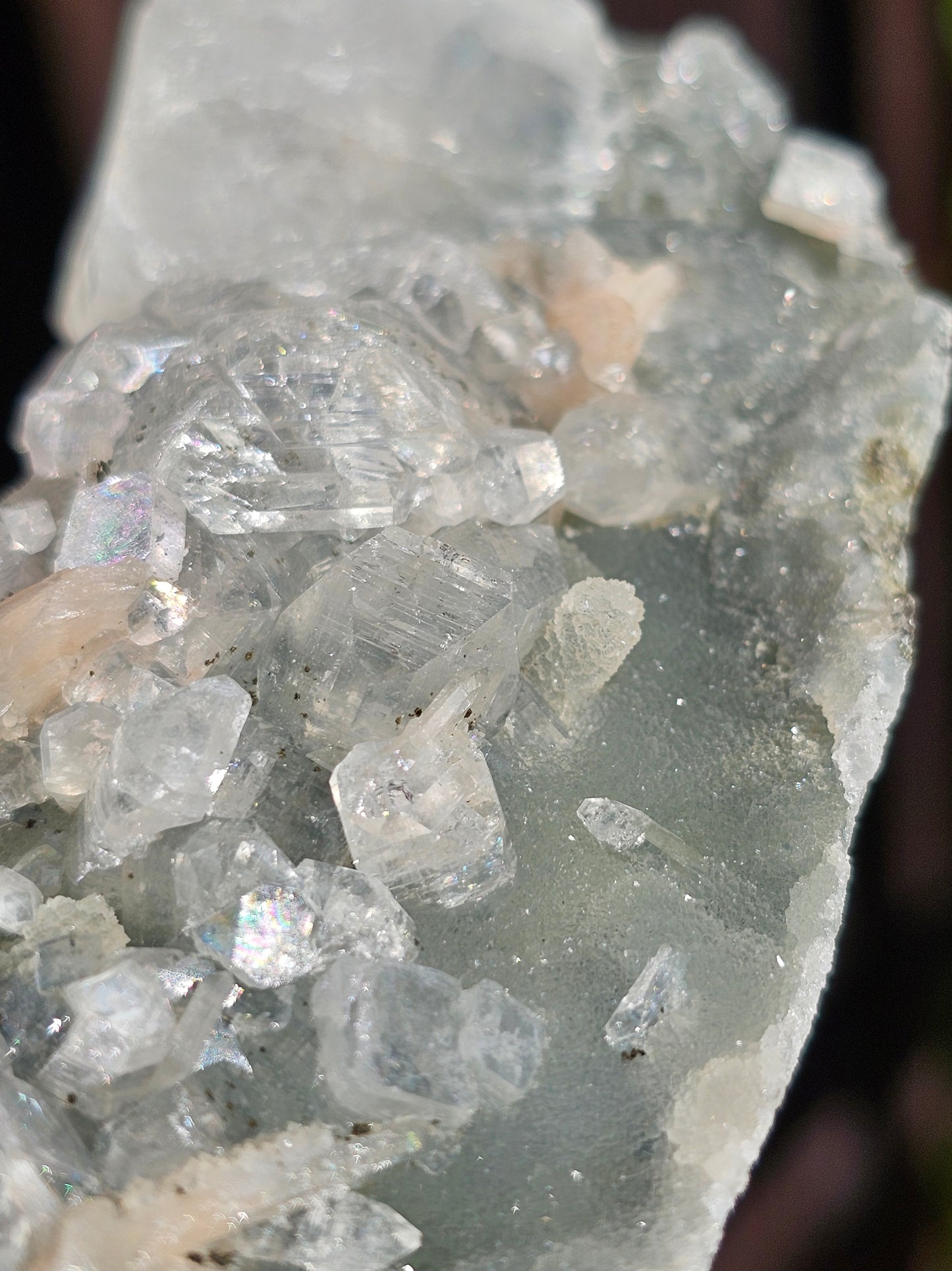 Jolie Apophyllite et Stilbite sur Calcédoine bleue en provenance d'Inde.