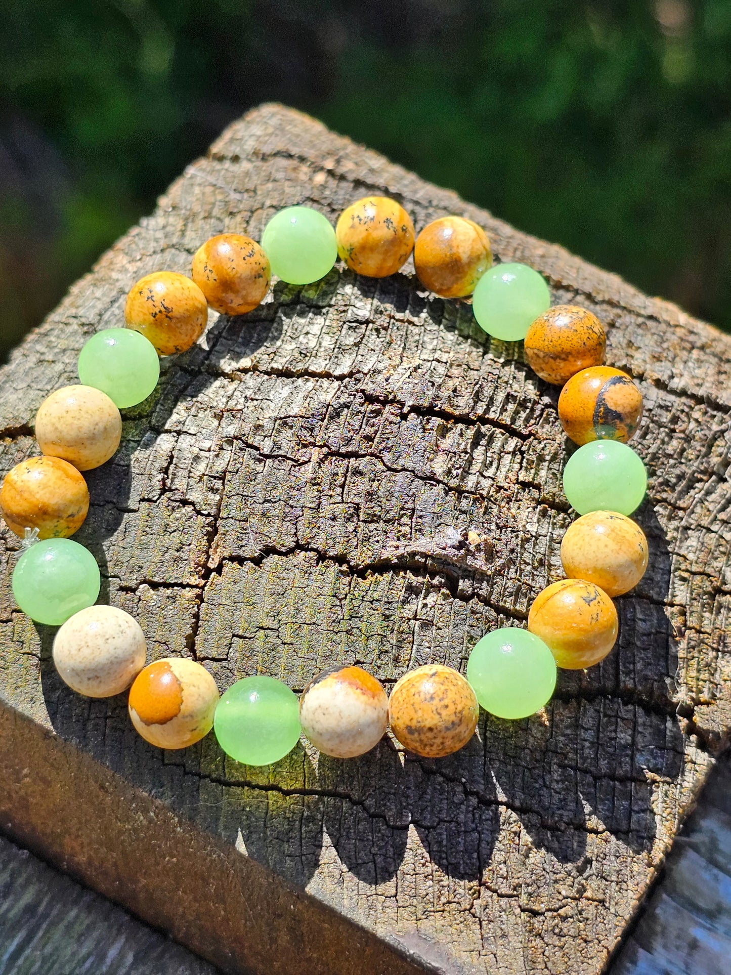 Bracelet Calcite verte et Jaspe paysage