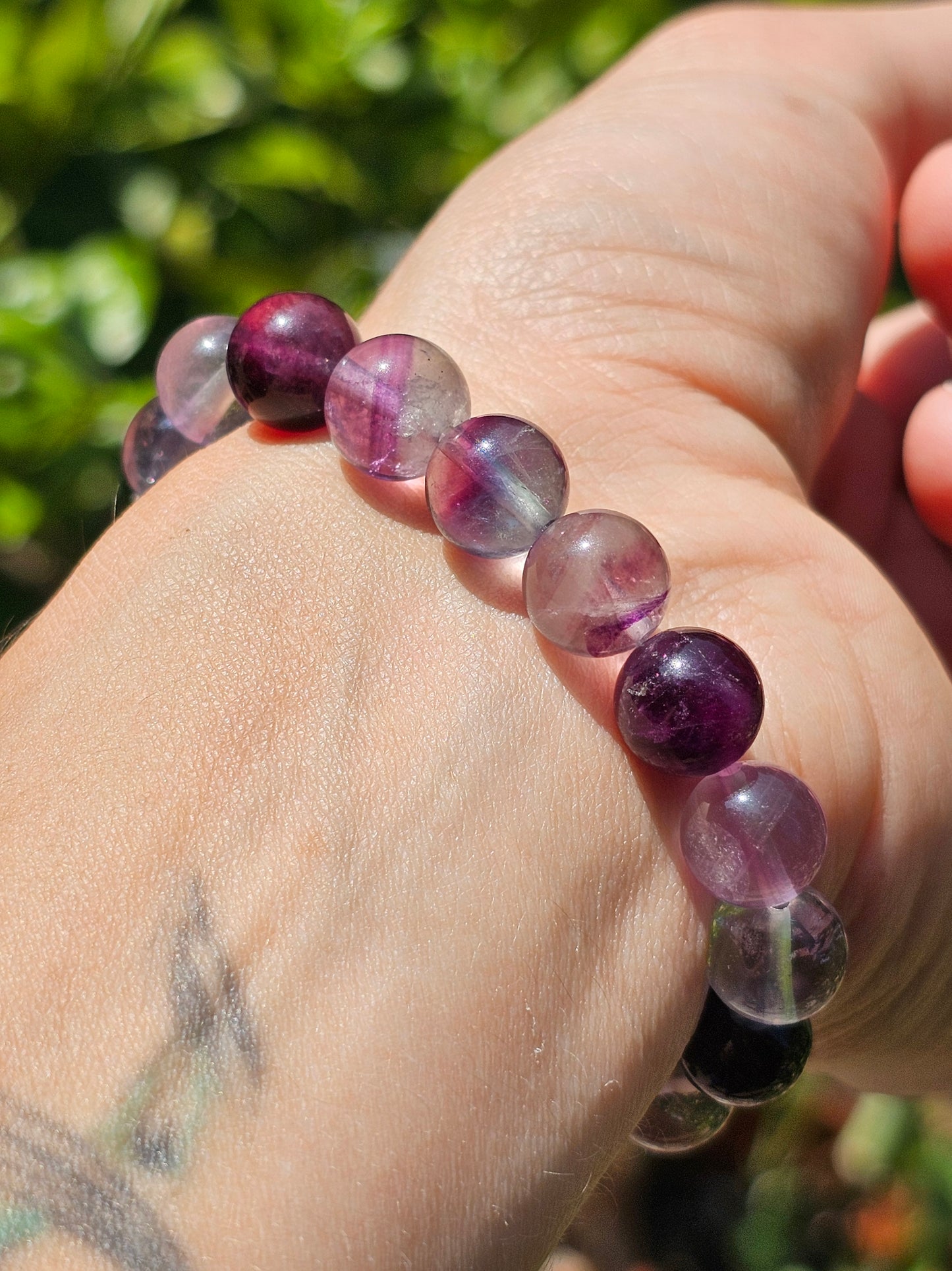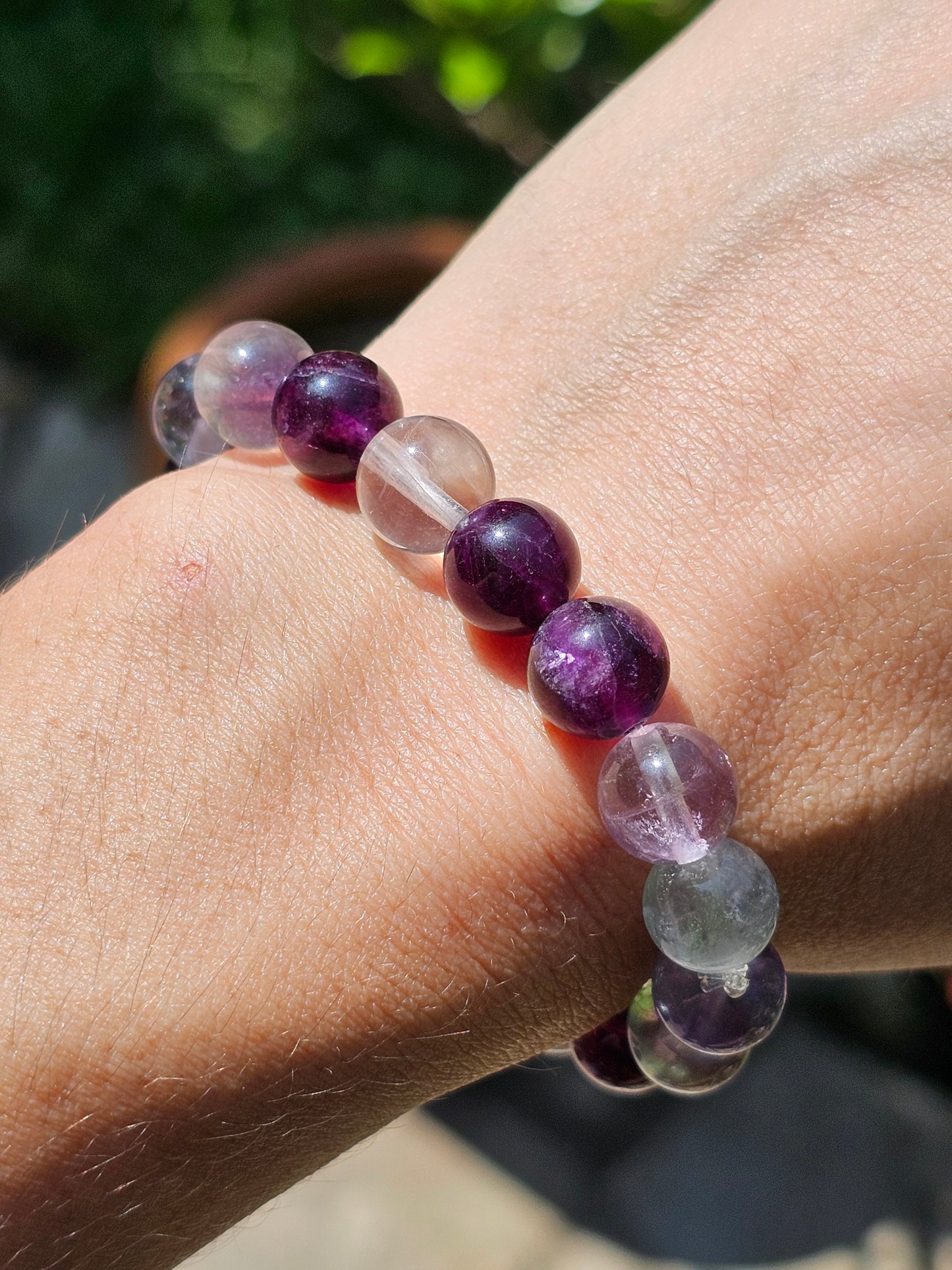 Joli bracelet en Fluorite arc en ciel en 10mm.
