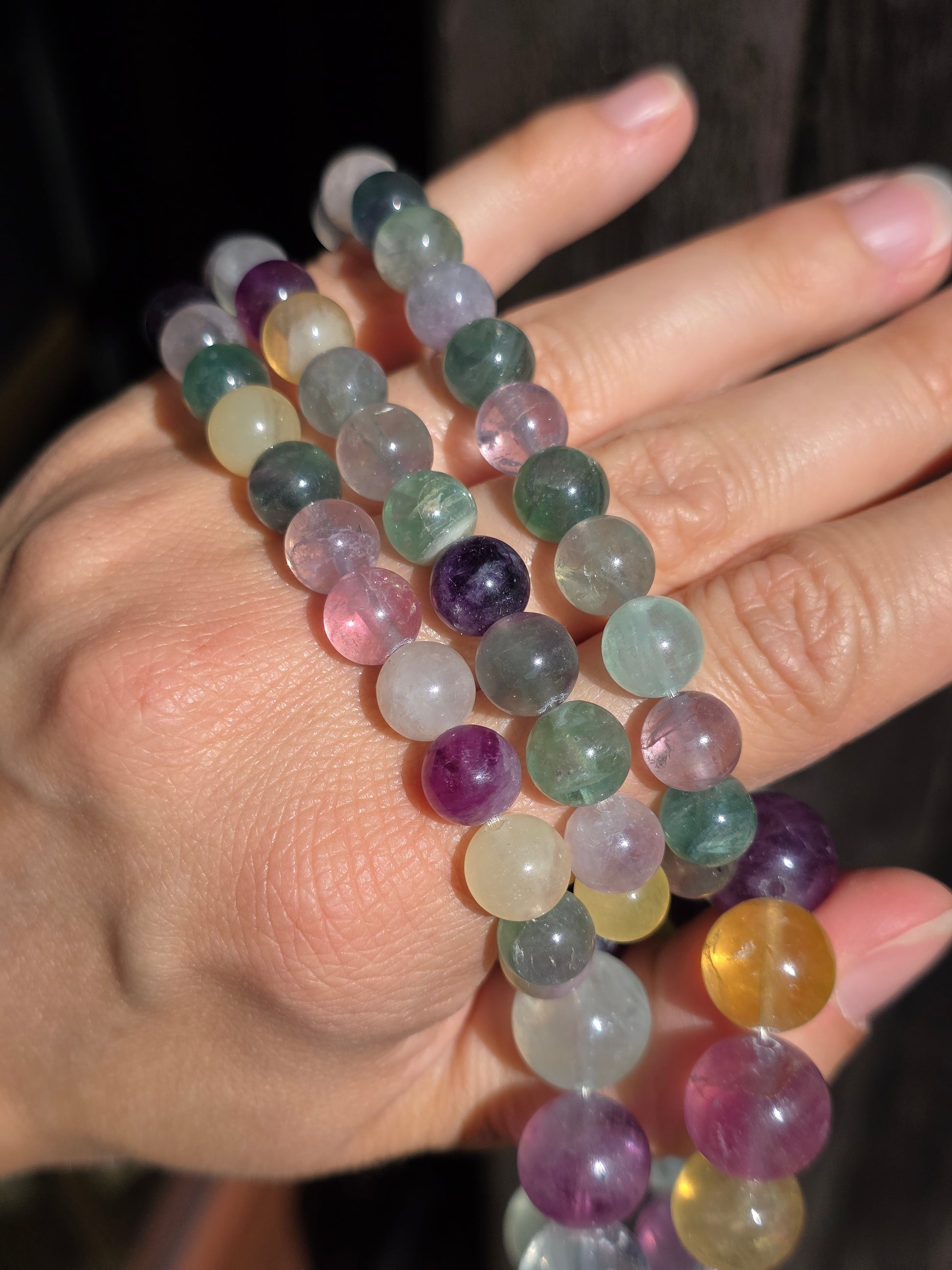 Superbe bracelet en Fluorite multicolore en 6mm, 8mm ou 12mm.