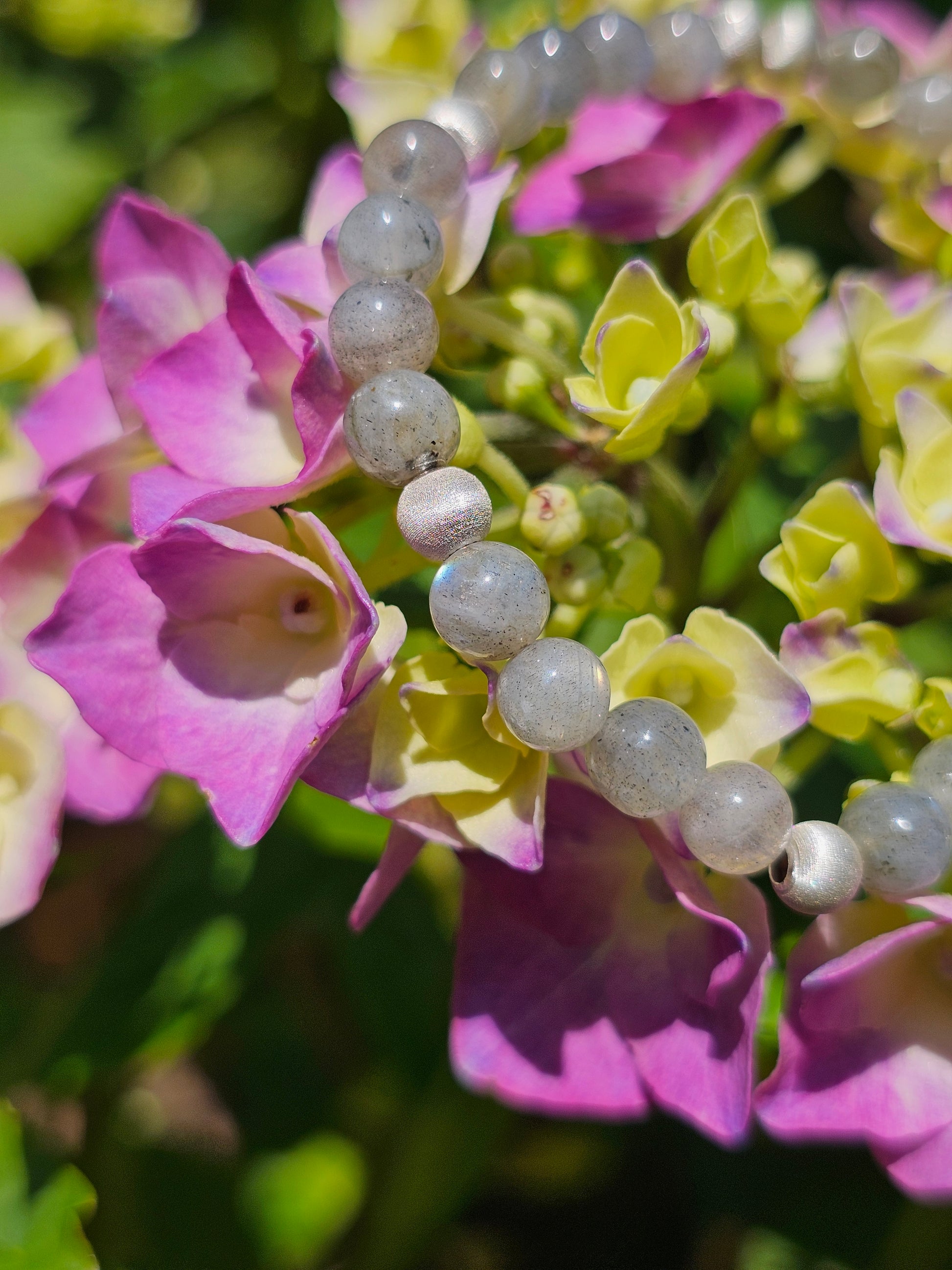 Magnifique bracelet avec perles de 6mm en Labradorite, et perles de 5mm en argent 925.