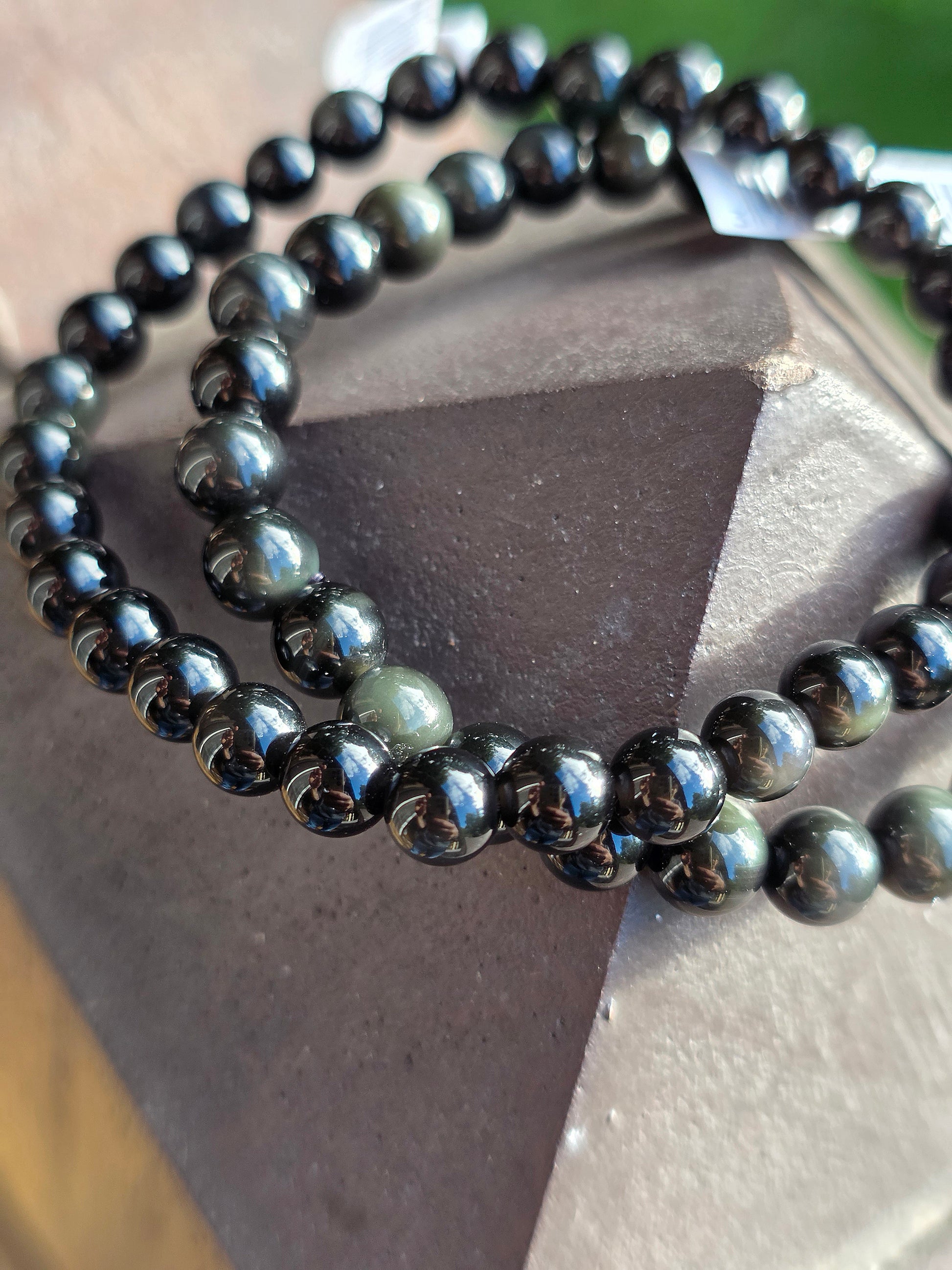 Joli bracelet en Obsidienne oeil céleste en perles de 6mm.