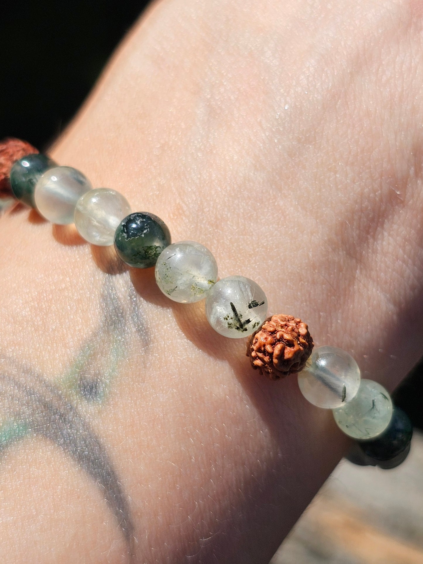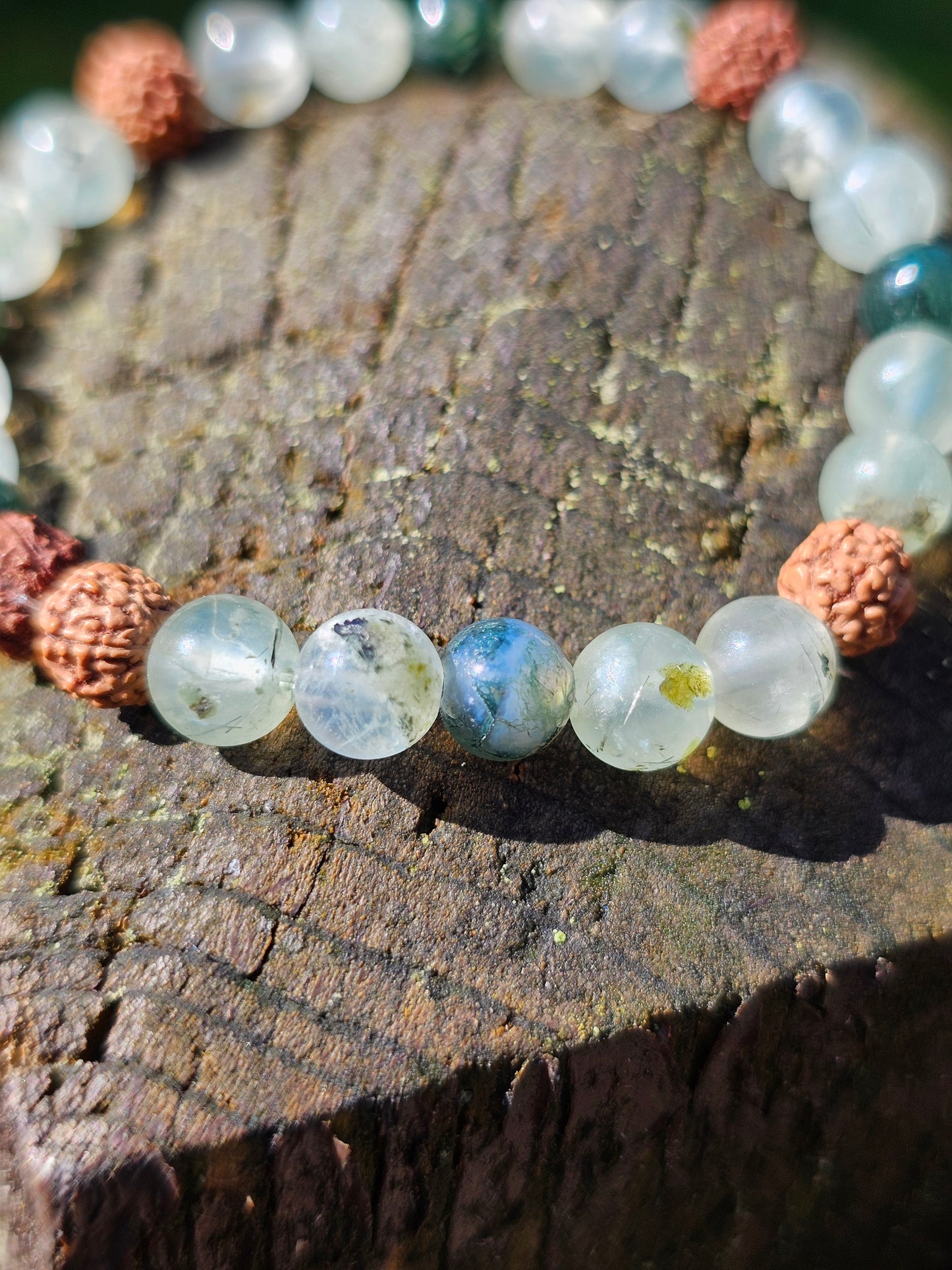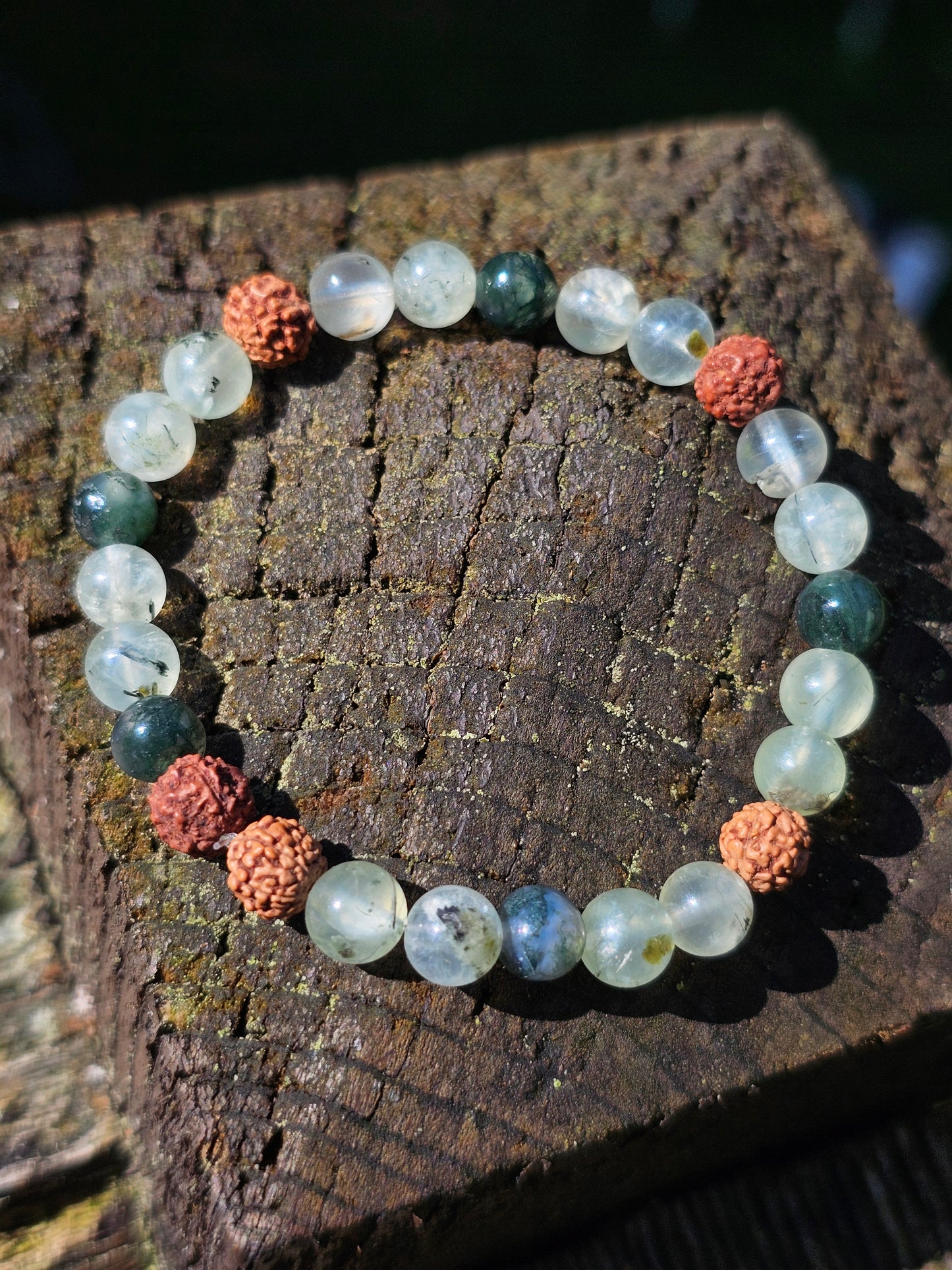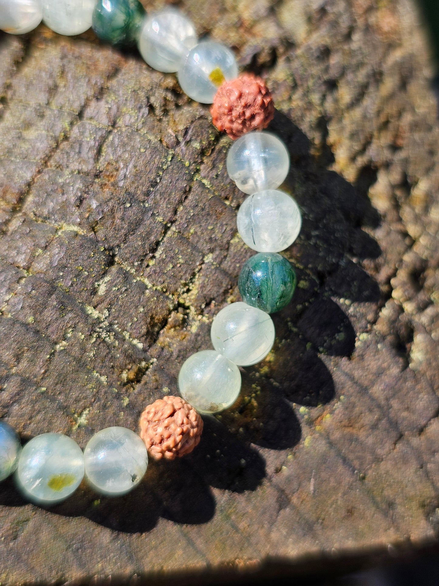 Bracelet Prehnite, Agate mousse et Rudraksha