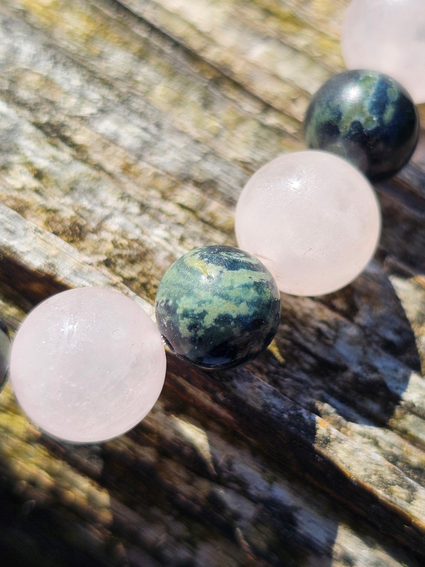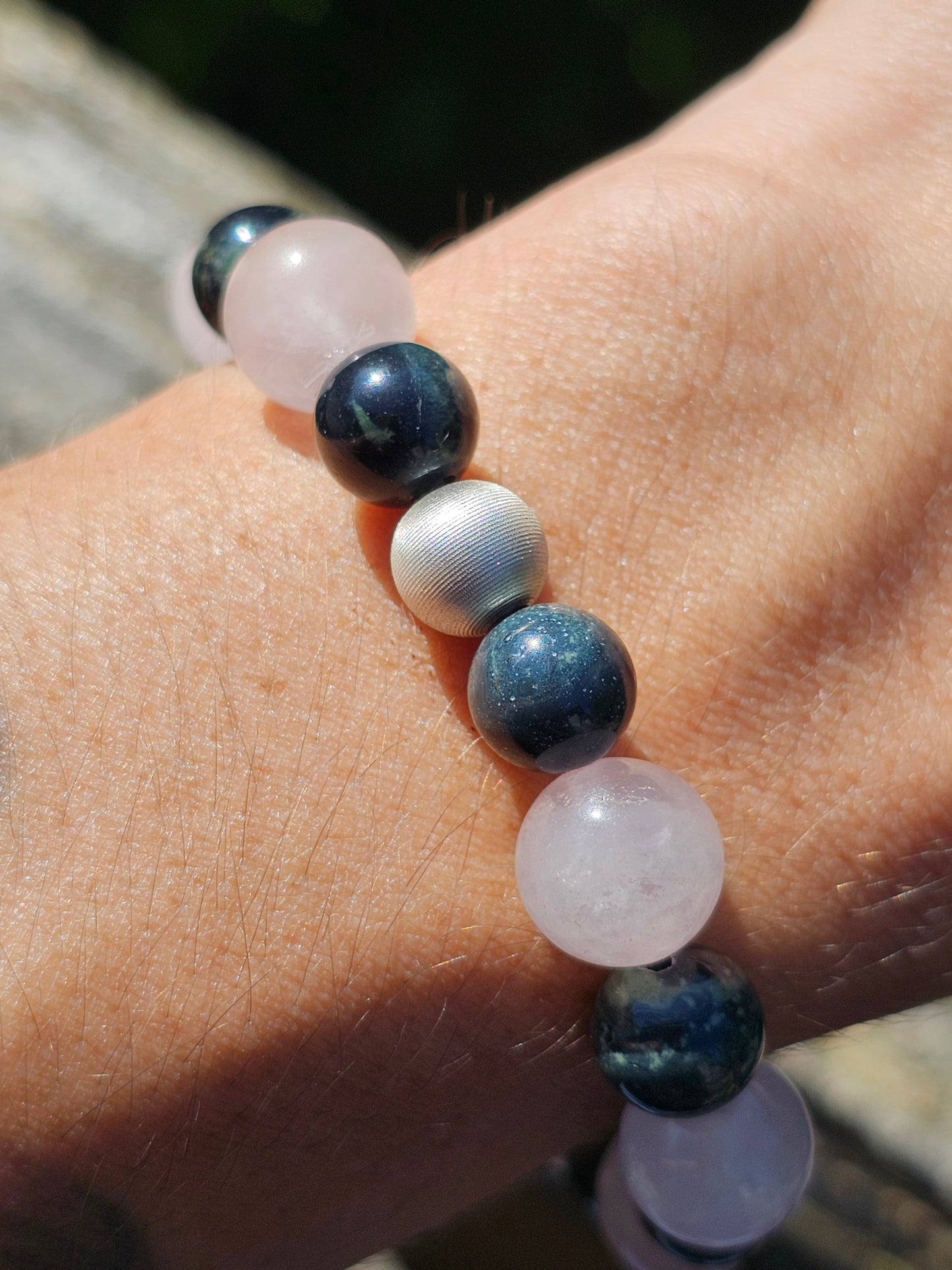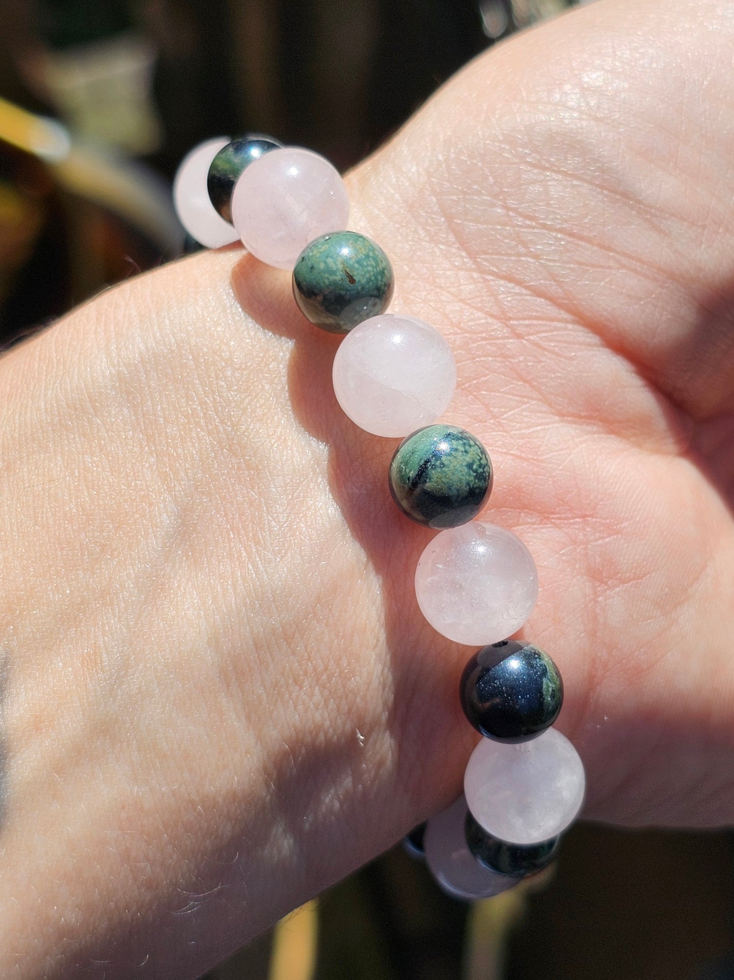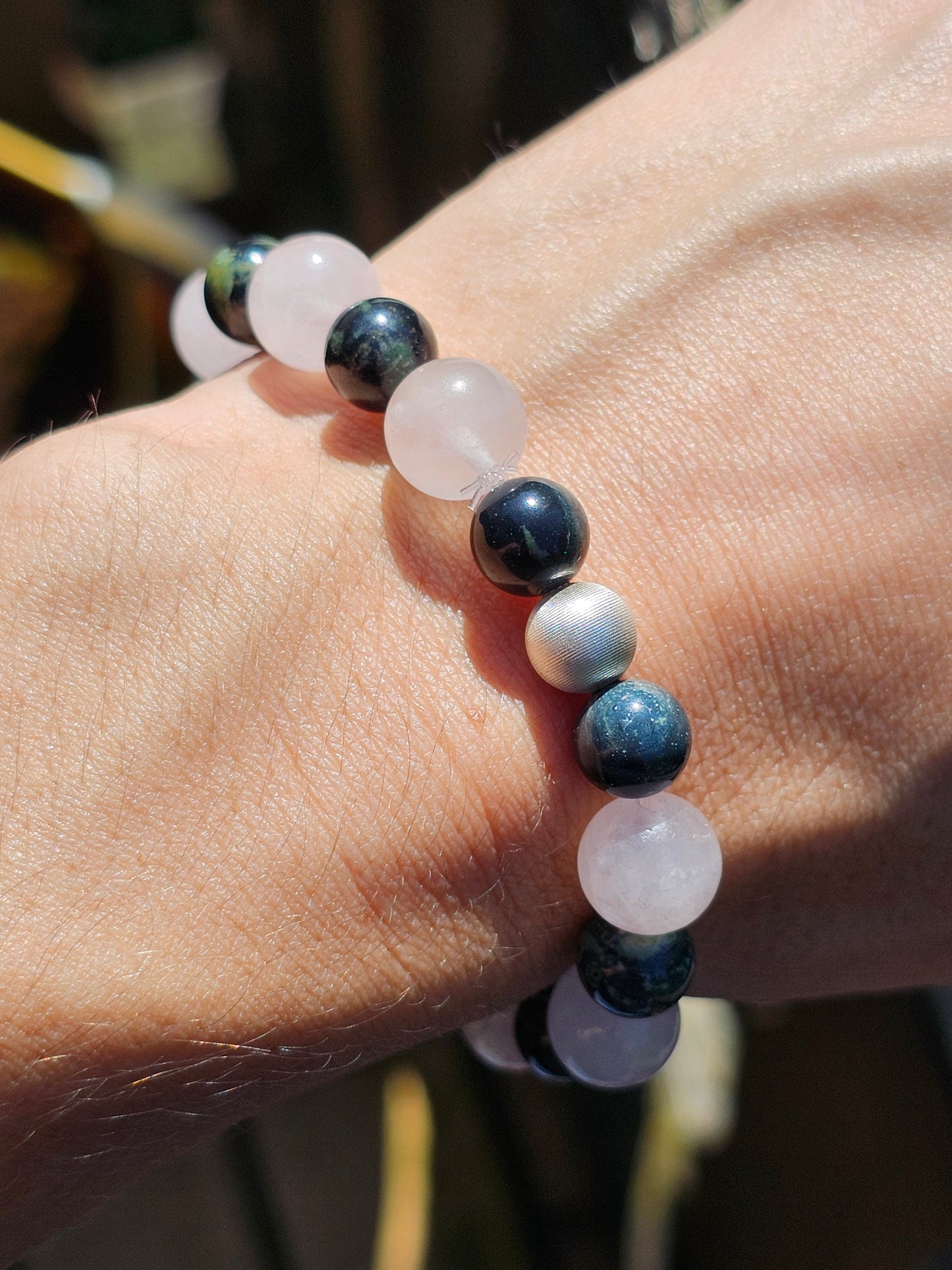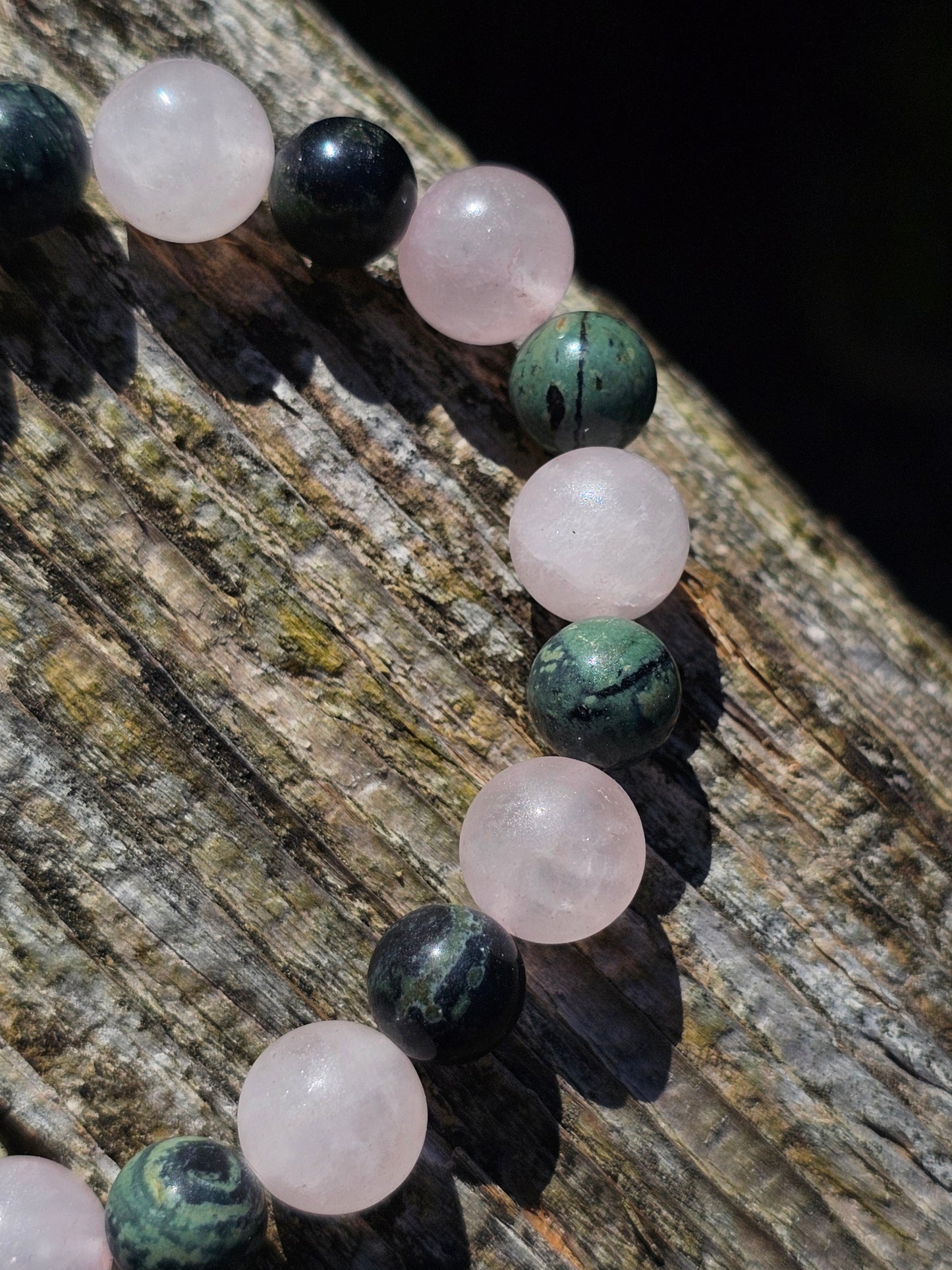 Bracelet Quartz rose, Jaspe Kambaba et argent.