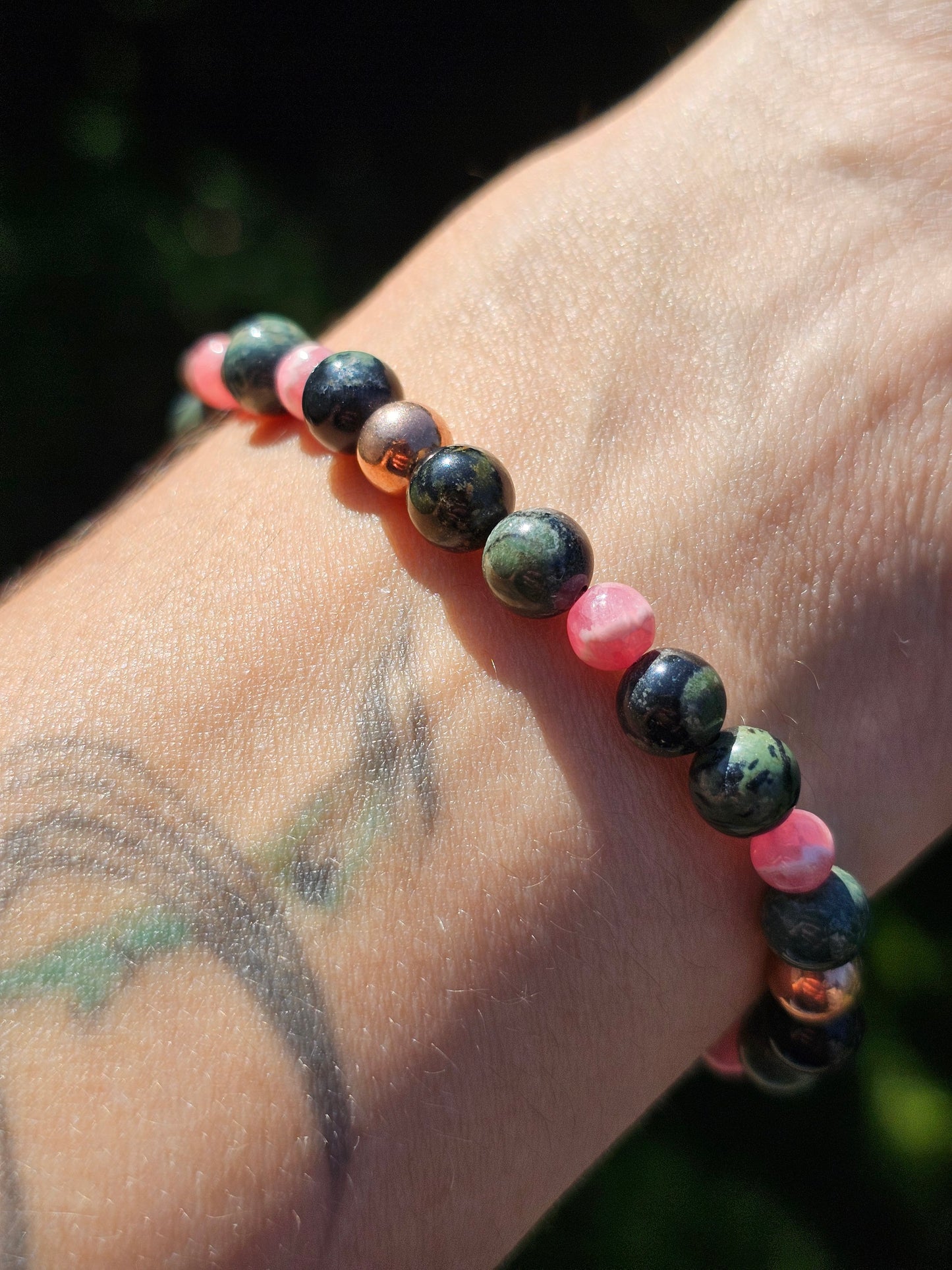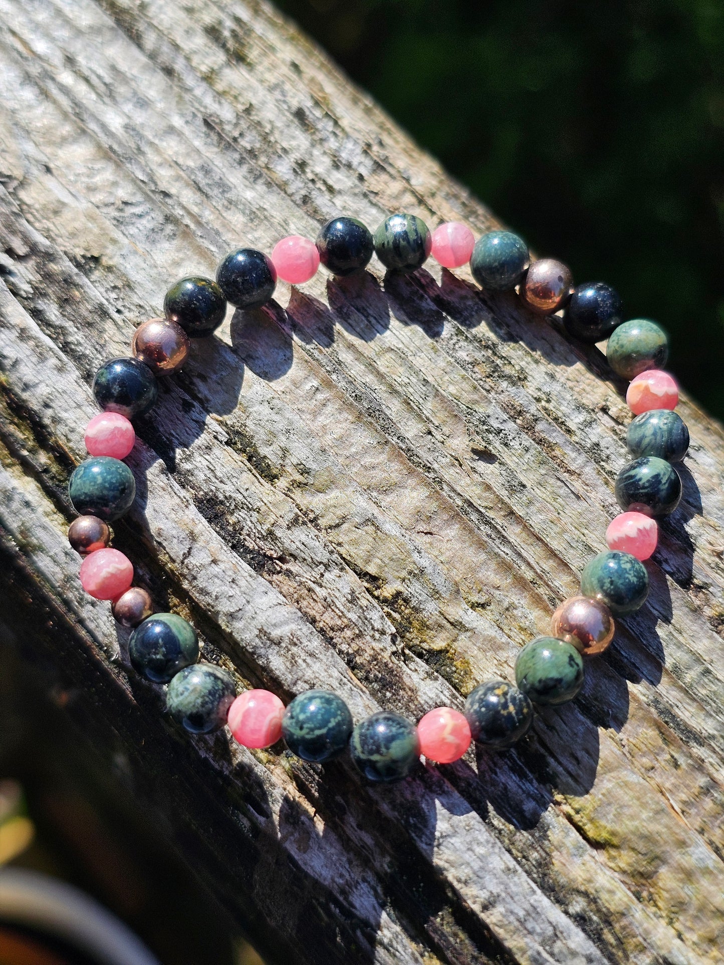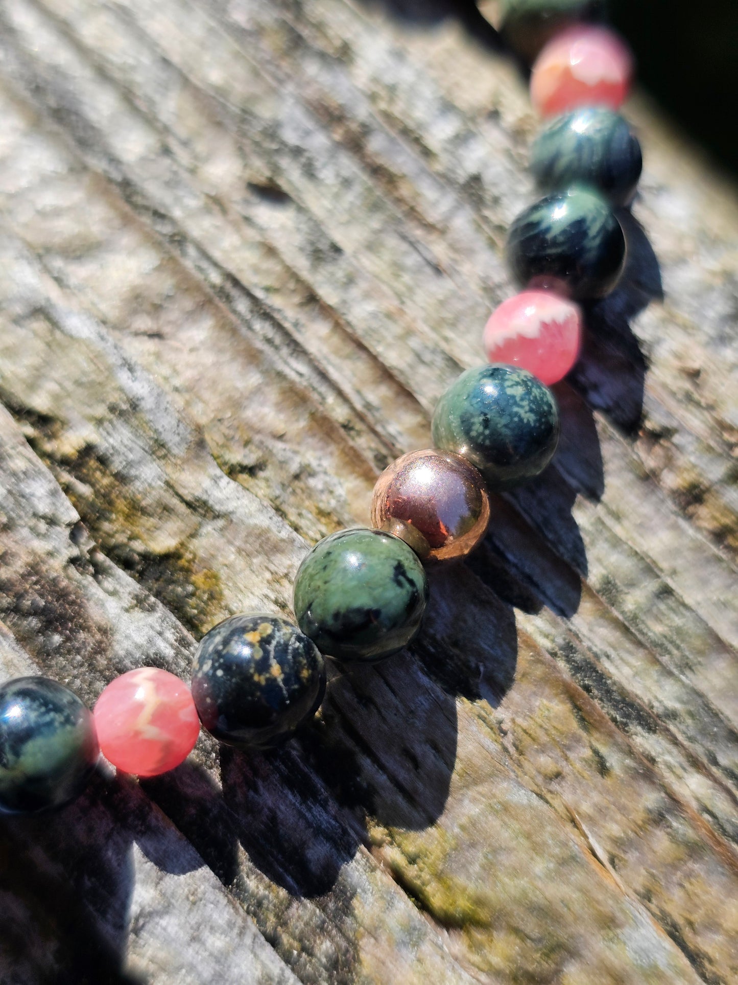 Bracelet Rhodochrosite, Jaspe Kambaba et argent rosé