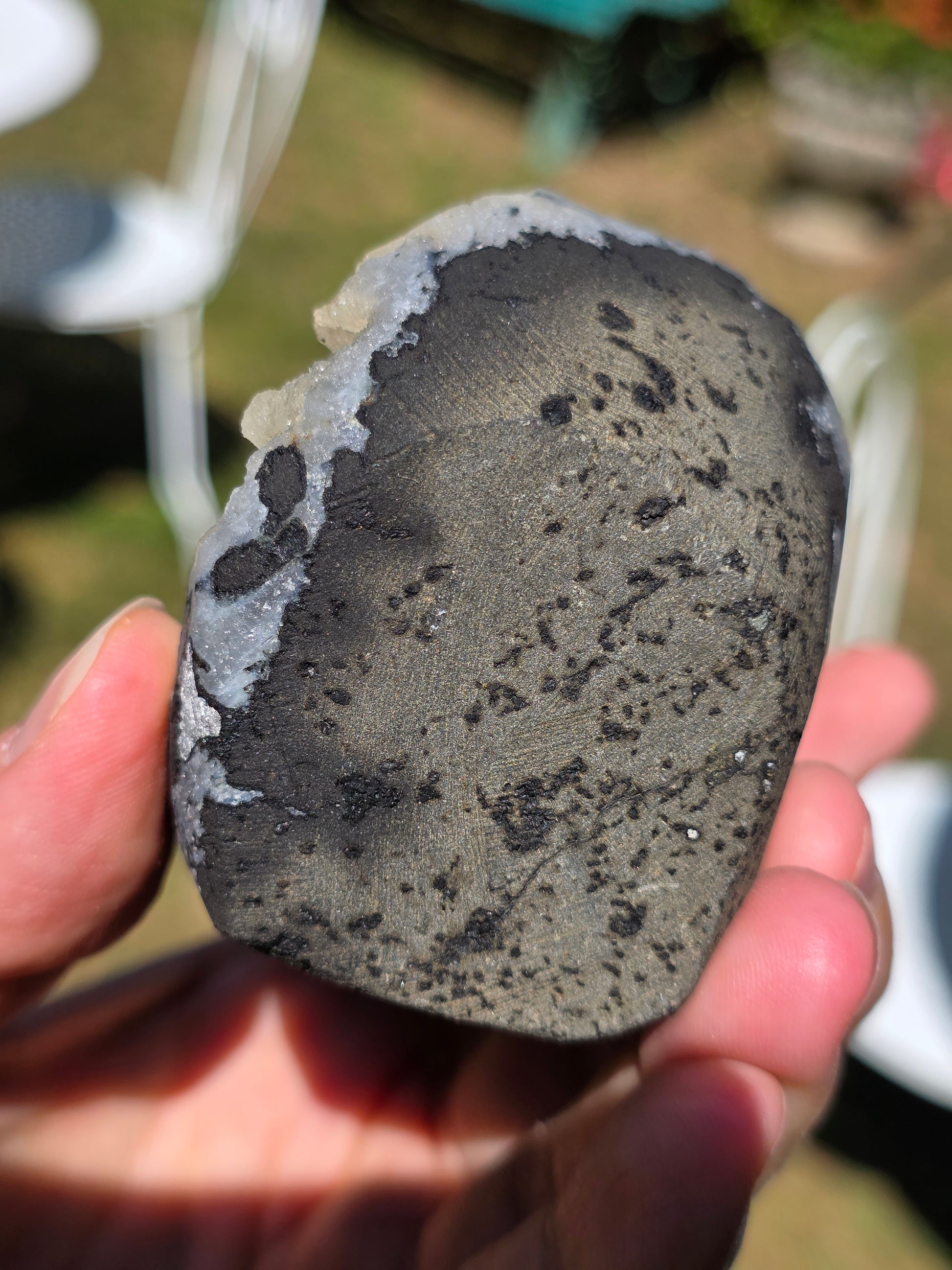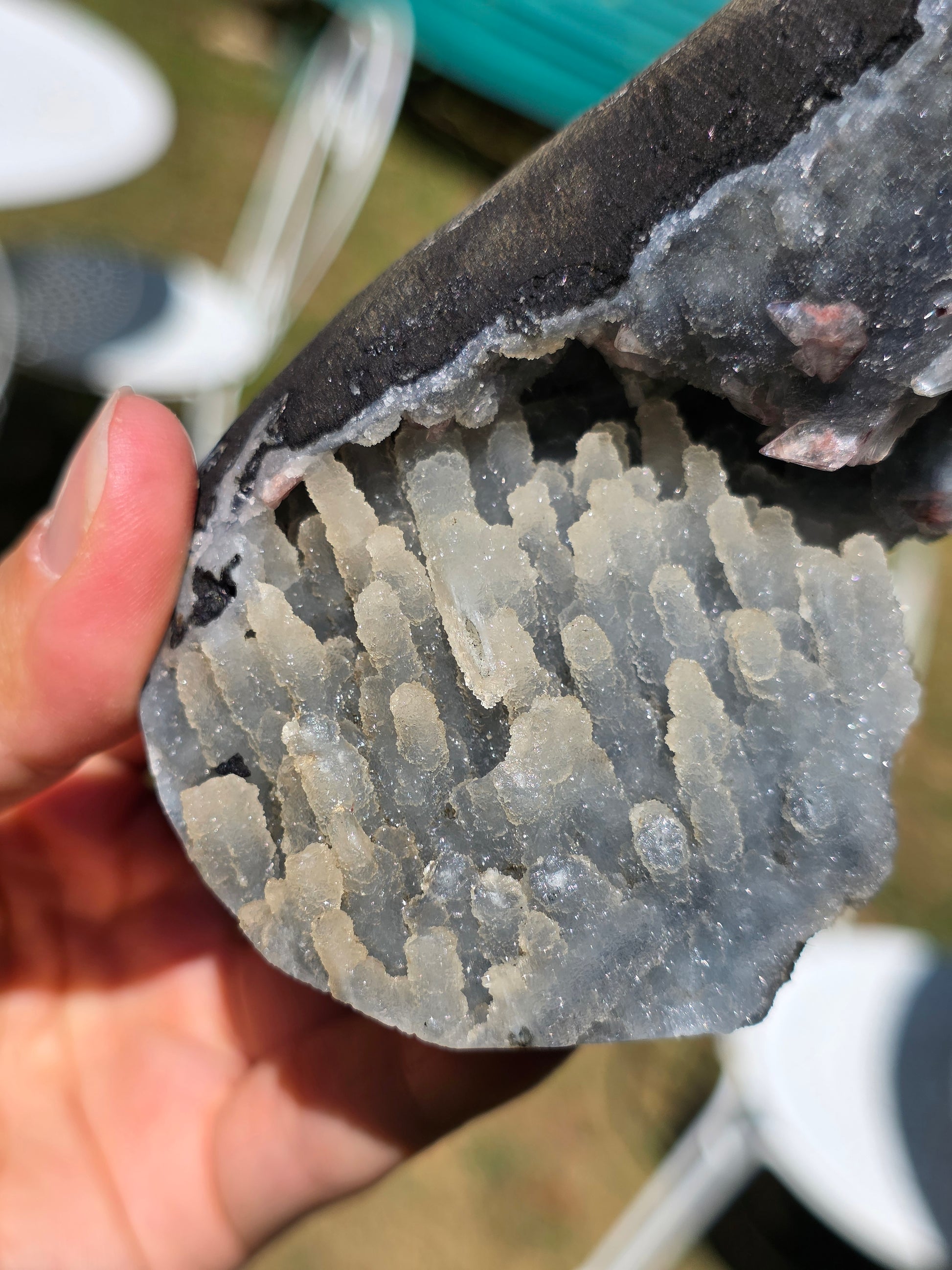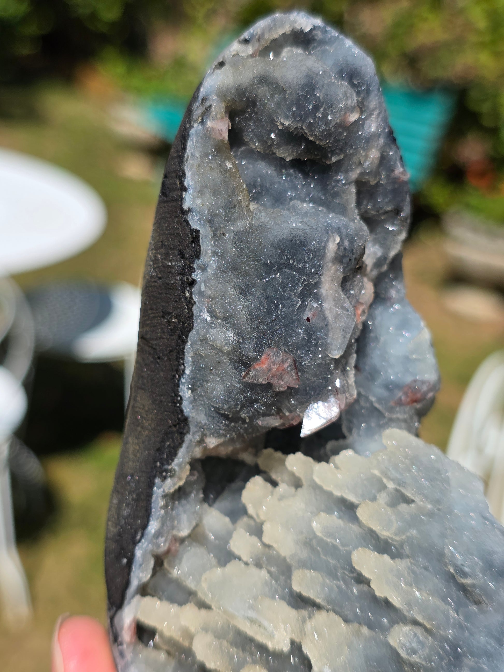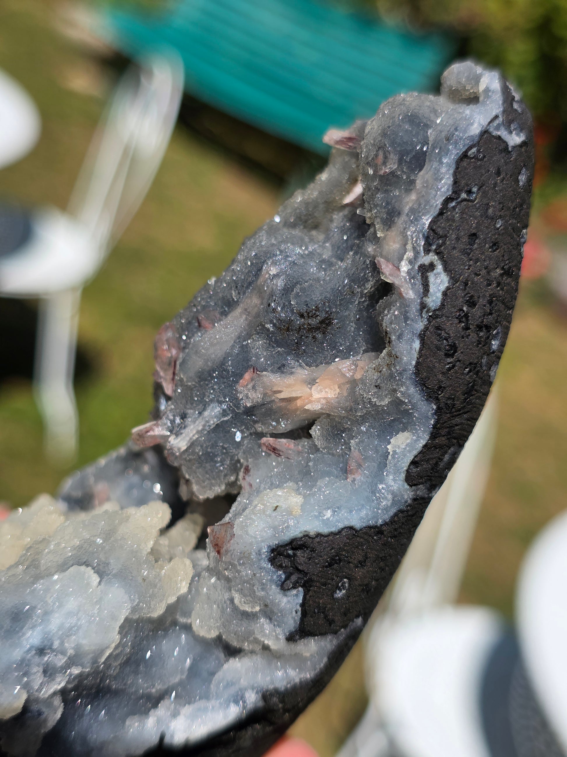 Superbe Calcédoine avec Stilbite en provenance d'Inde (vidéo ici).