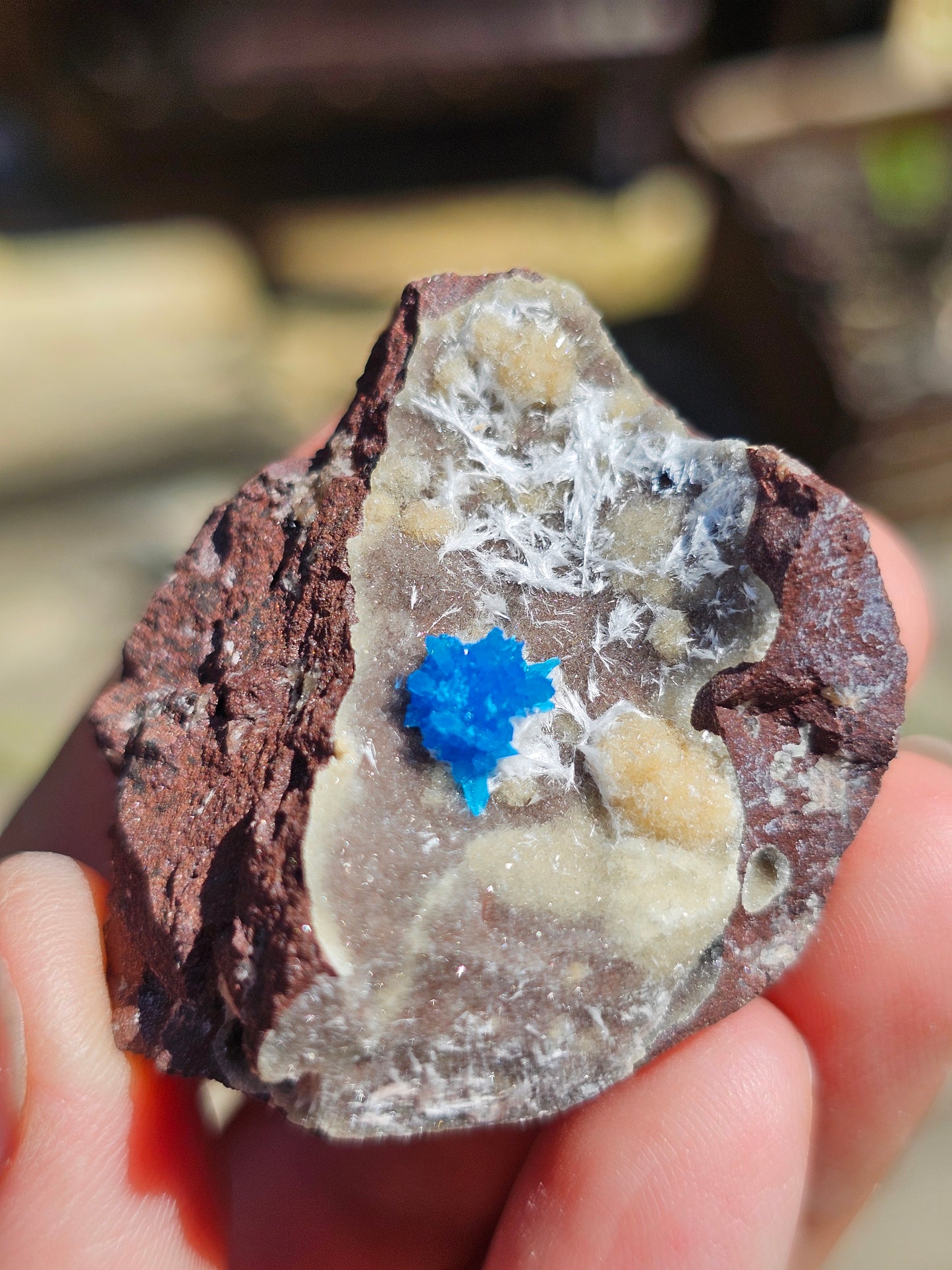 Magnifique Cavansite sur Mordénite et Heulandite d'Inde.