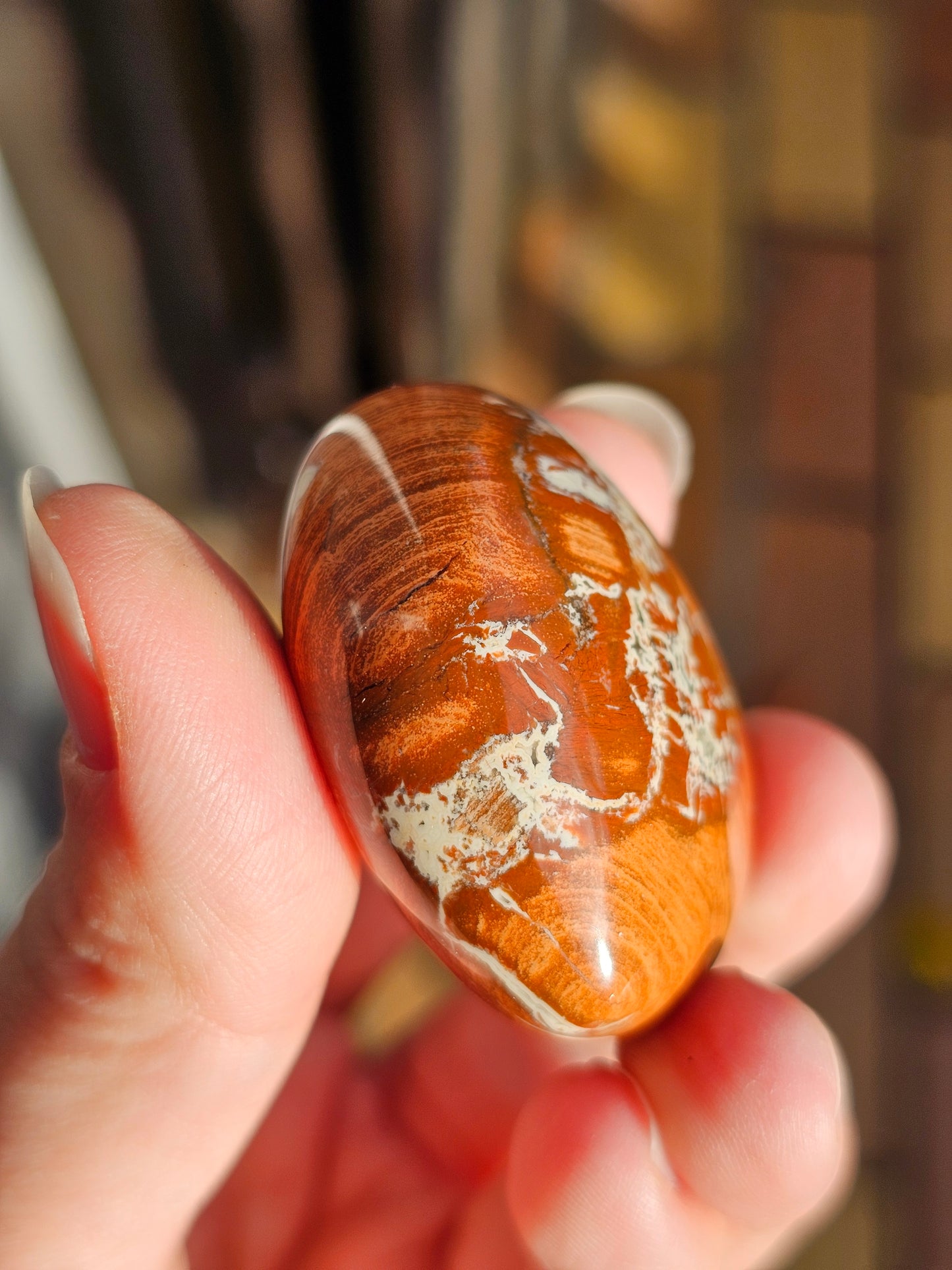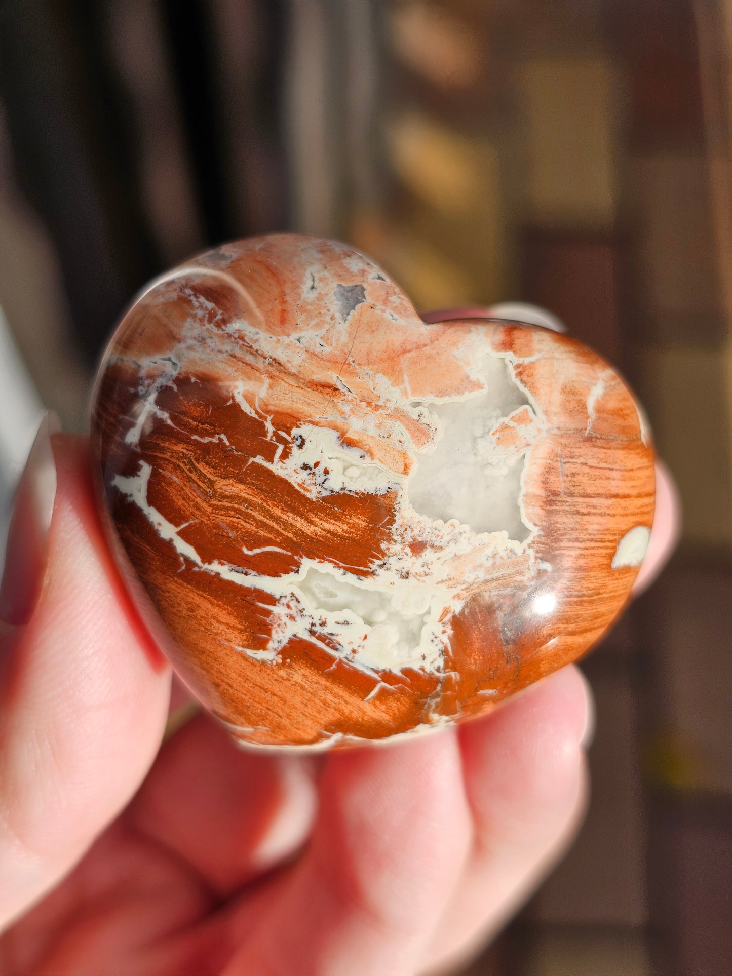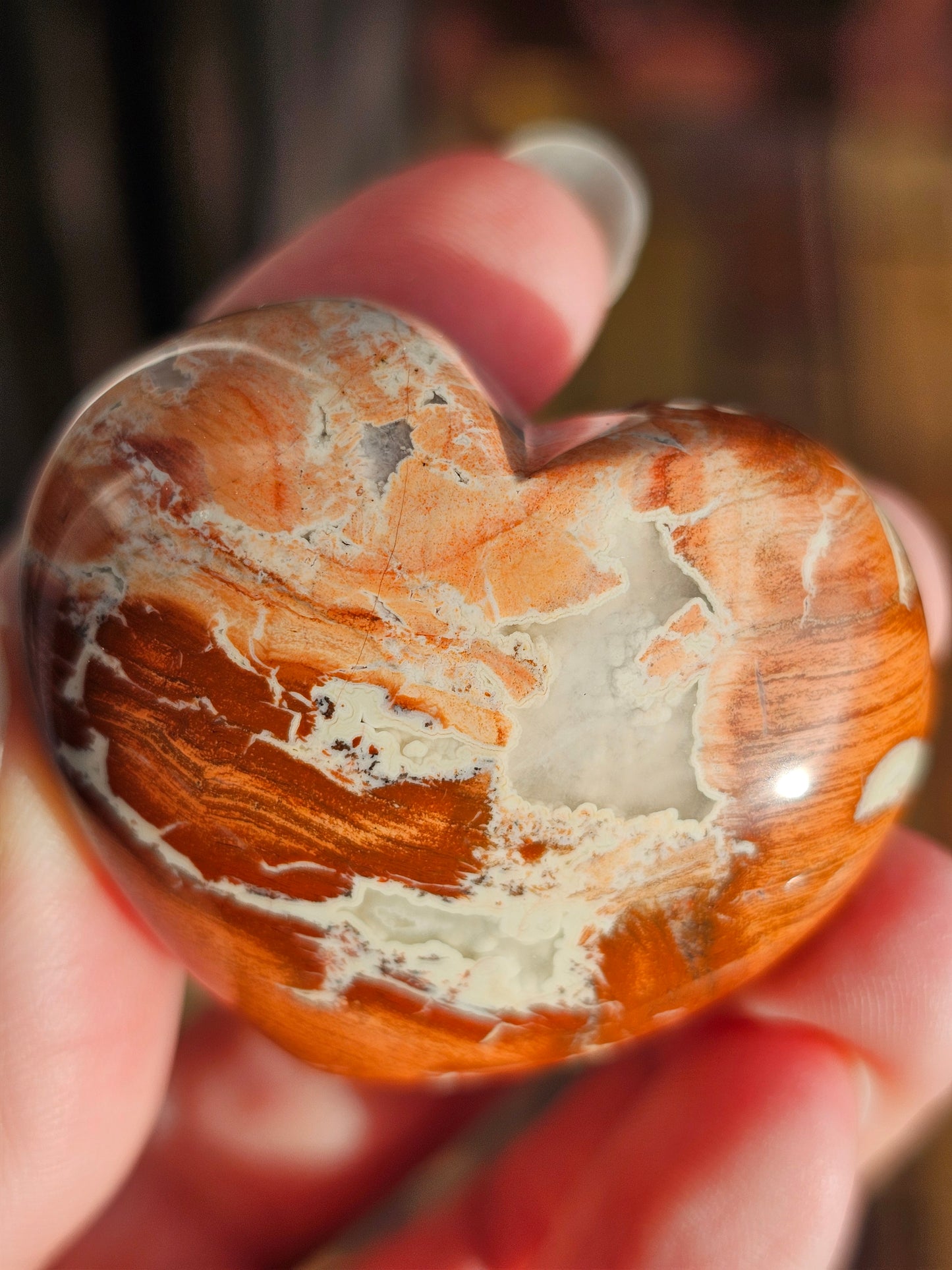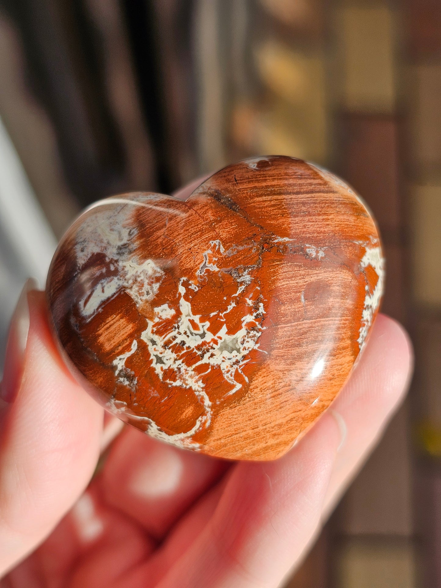 Joli cœur de Jaspe Brescia, également appelé Jaspe bréchique en provenance de Madagascar.