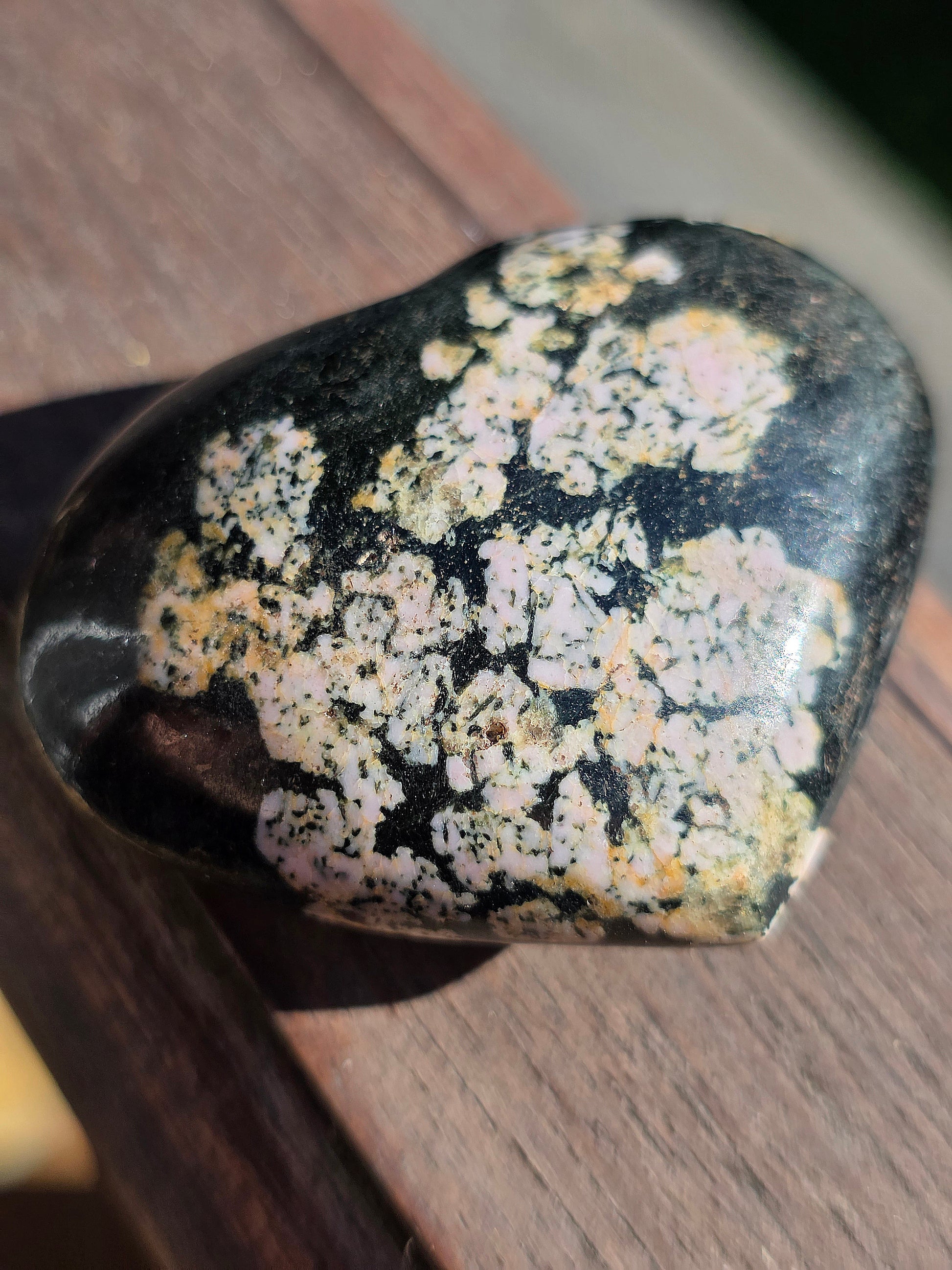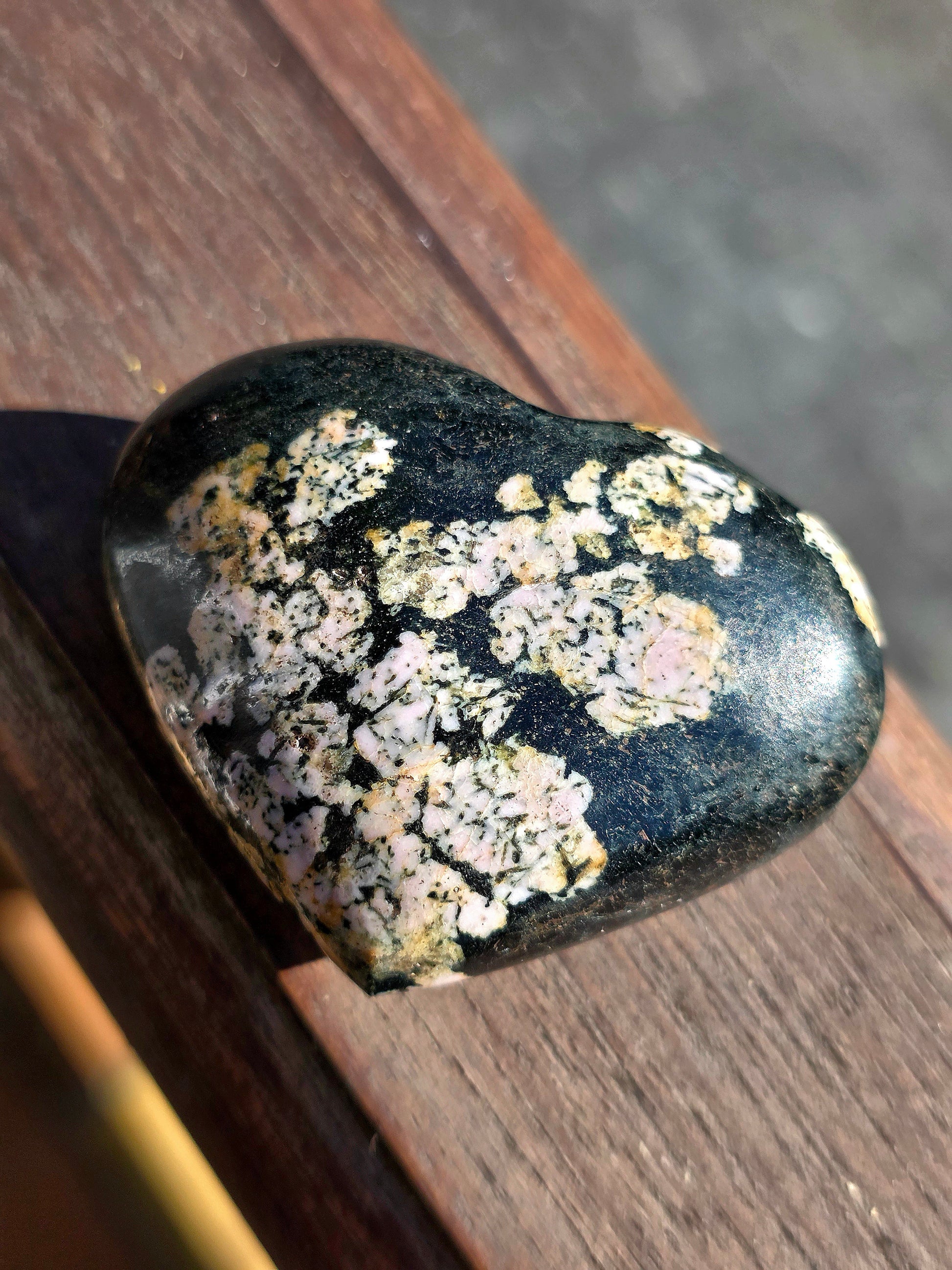 Joli cœur en Obsidienne Flocons de neige. (vidéo disponible ici)