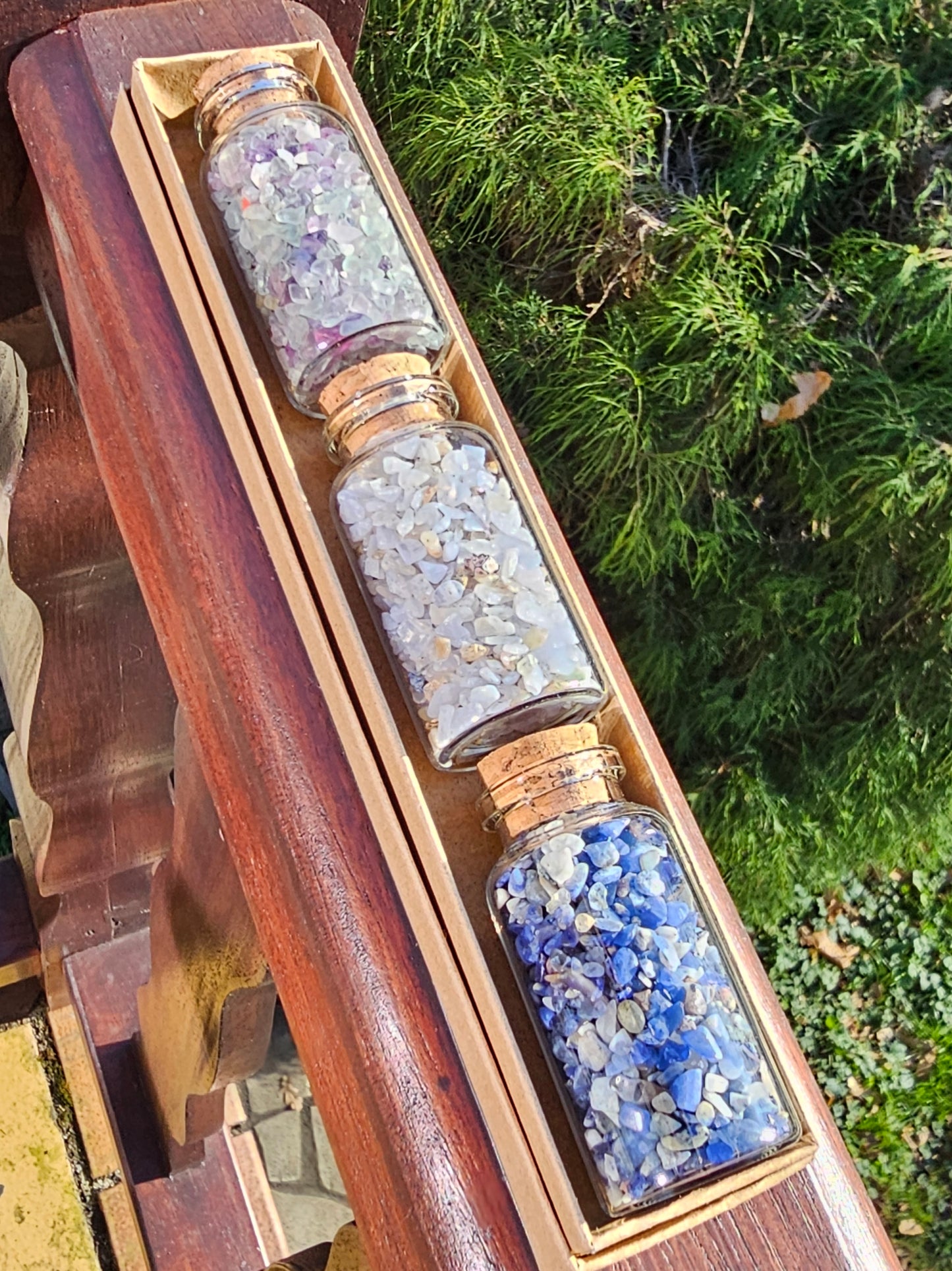 Offrez un superbe coffret composé de 3 fioles de mini pierres sur le thème de l'ouverture aux autres, de la communication :