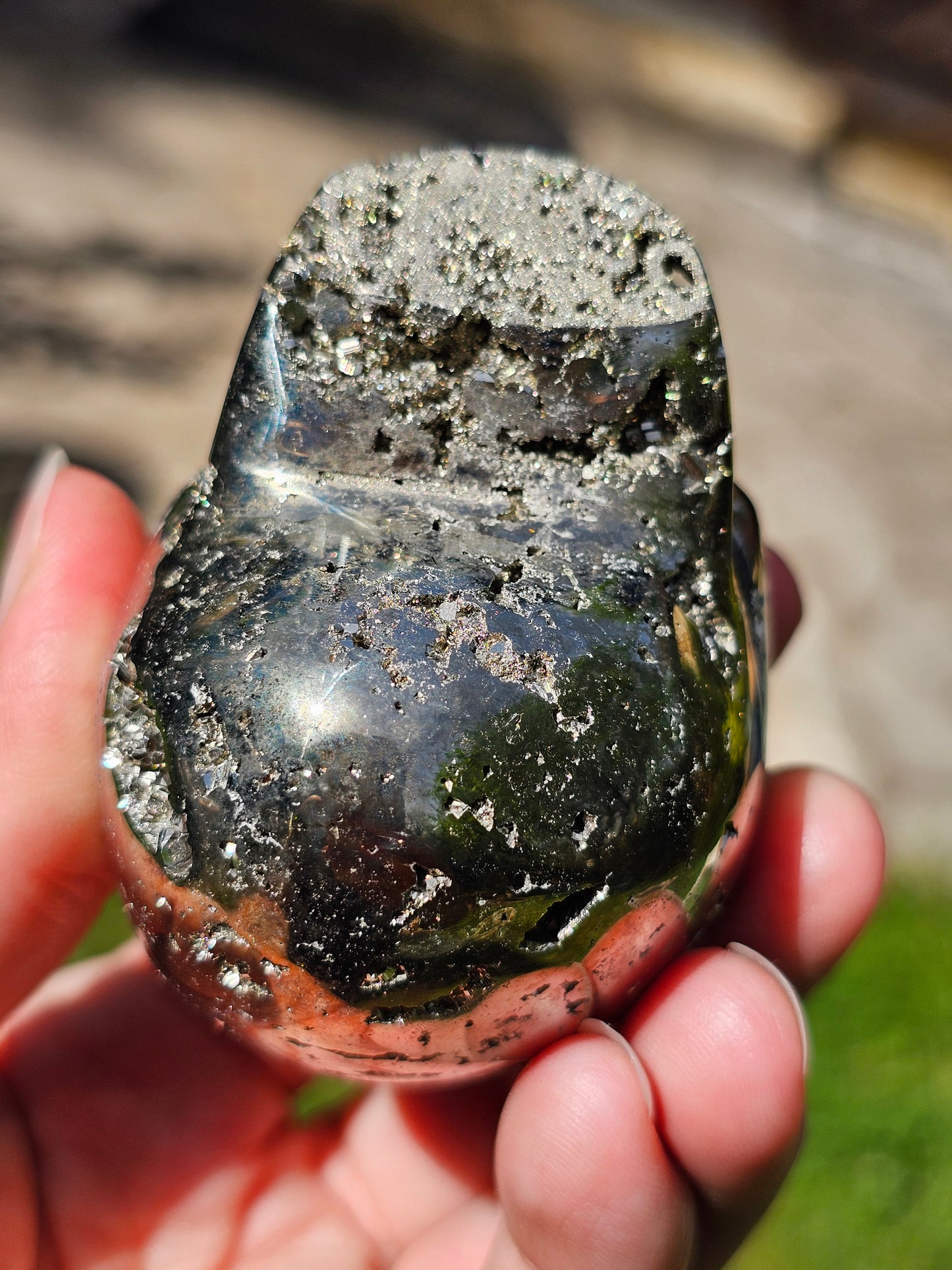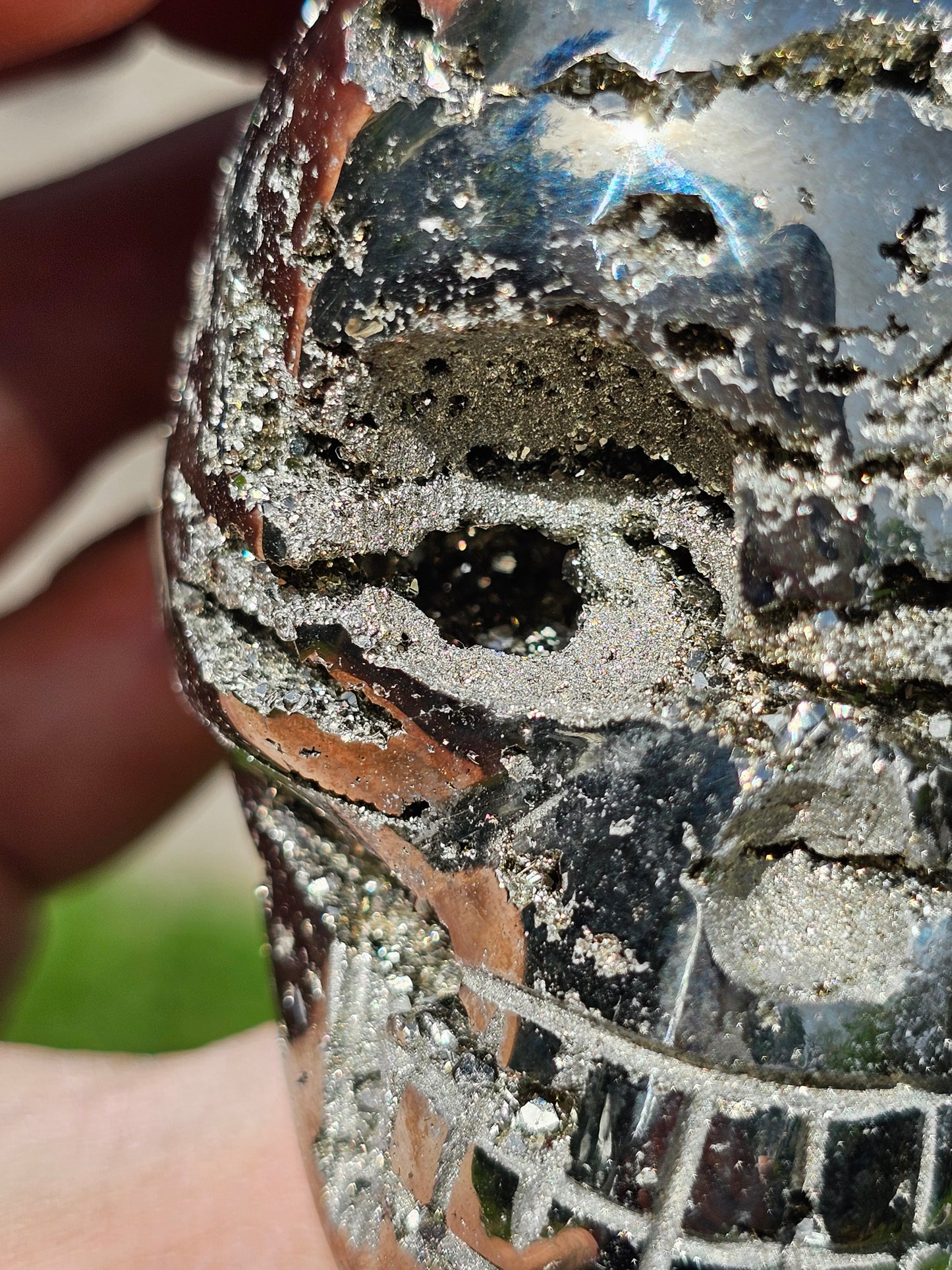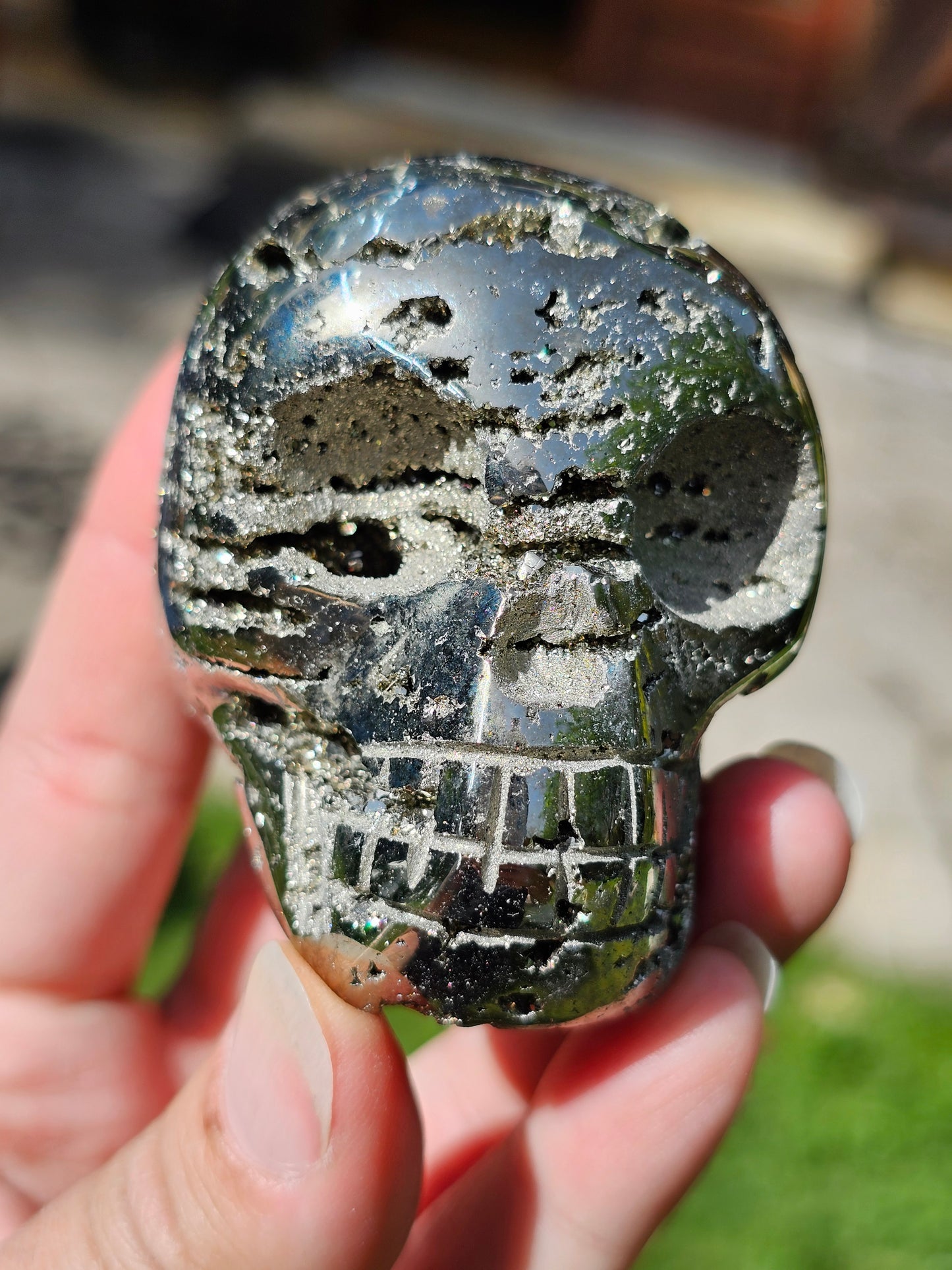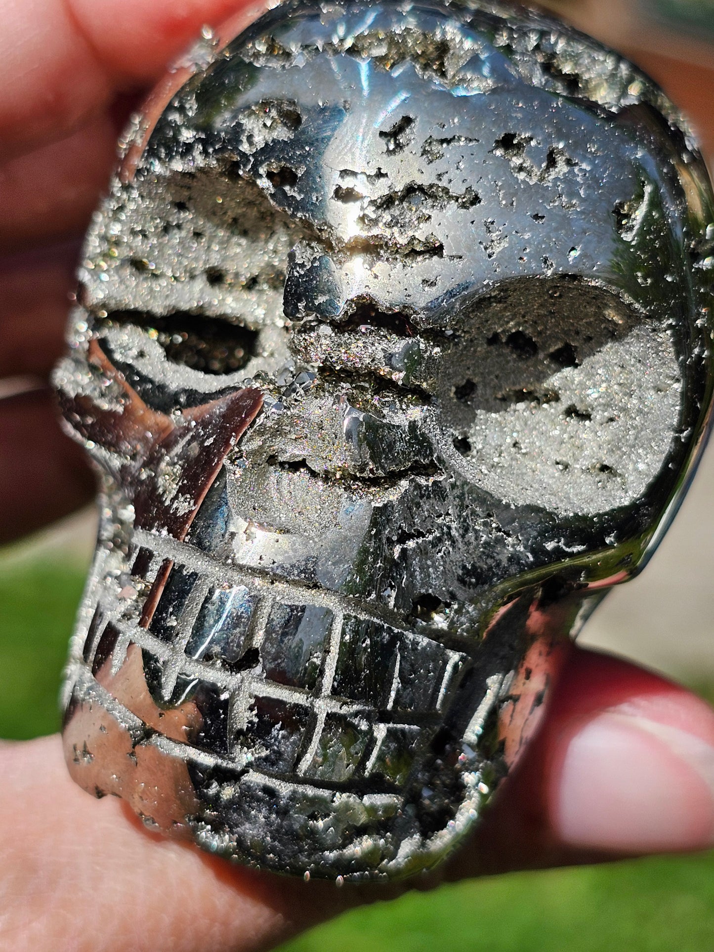 Magnifique crâne en Pyrite du Pérou. (vidéo ici)