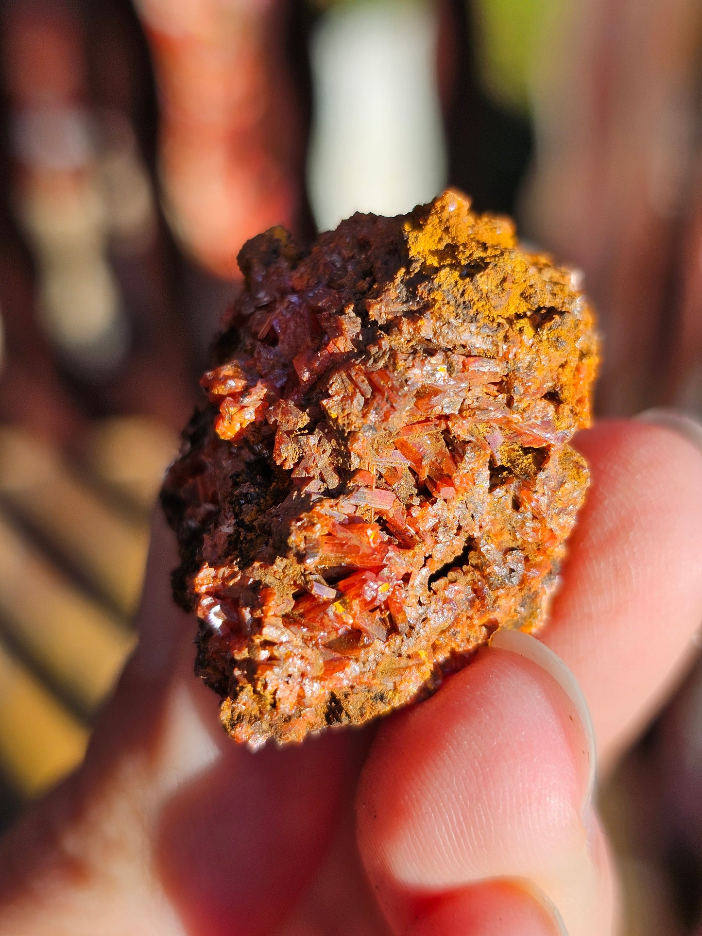 Pensez à vous lavez les mains soigneusement après avoir manipulé la pierre du fait de sa composition à base de chromate de plomb. Rien dangereux mais c'est une précaution.