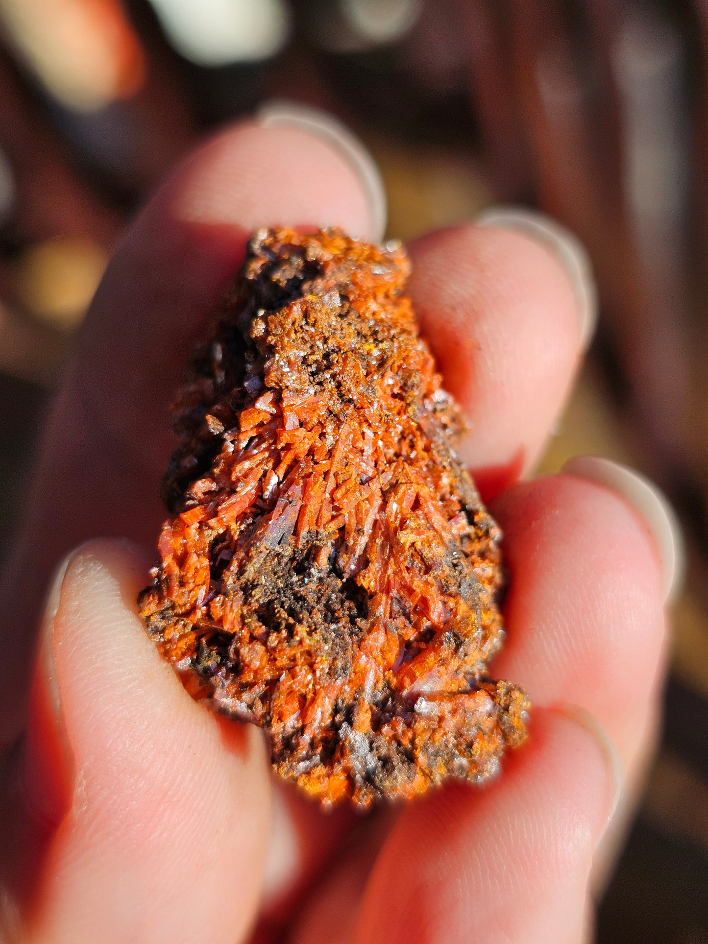 Pensez à vous lavez les mains soigneusement après avoir manipulé la pierre du fait de sa composition à base de chromate de plomb. Rien dangereux mais c'est une précaution.