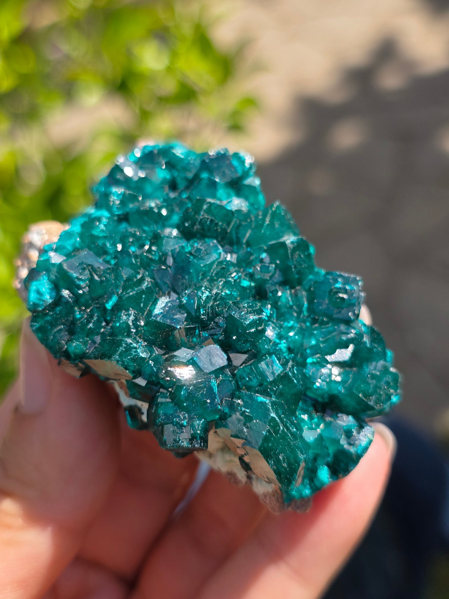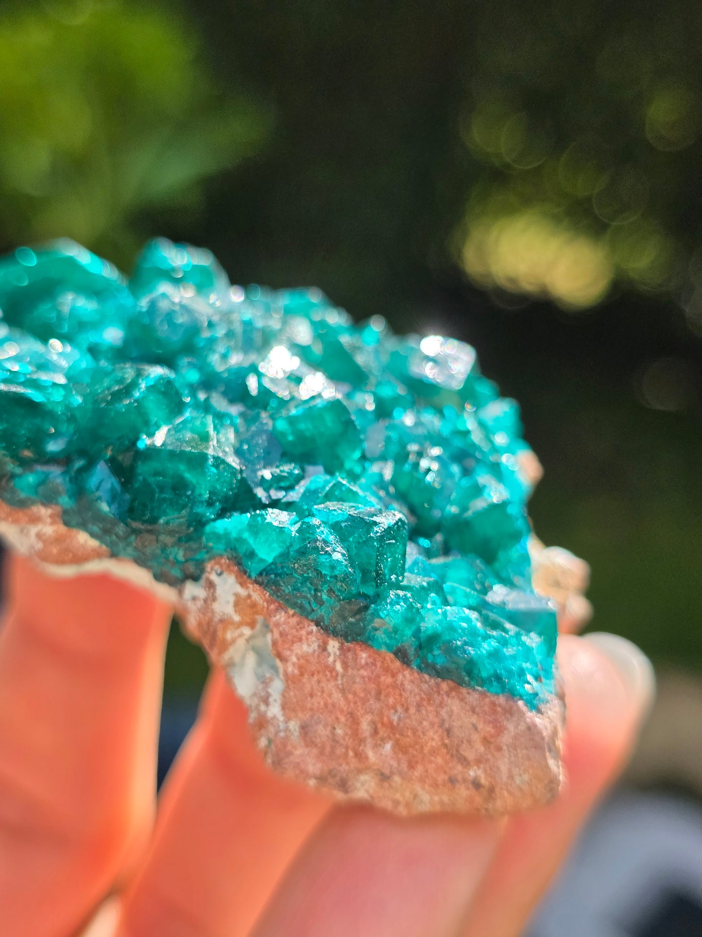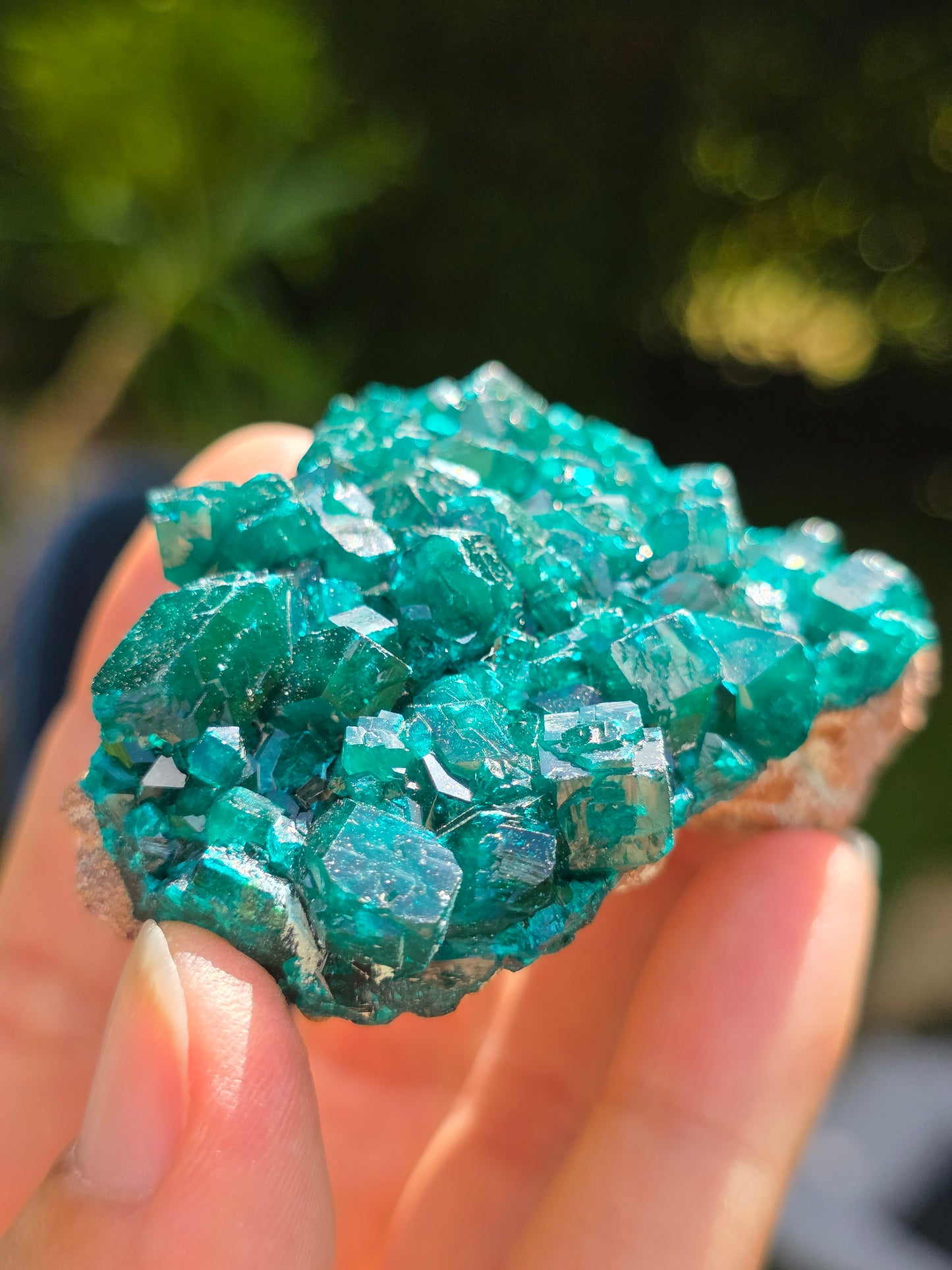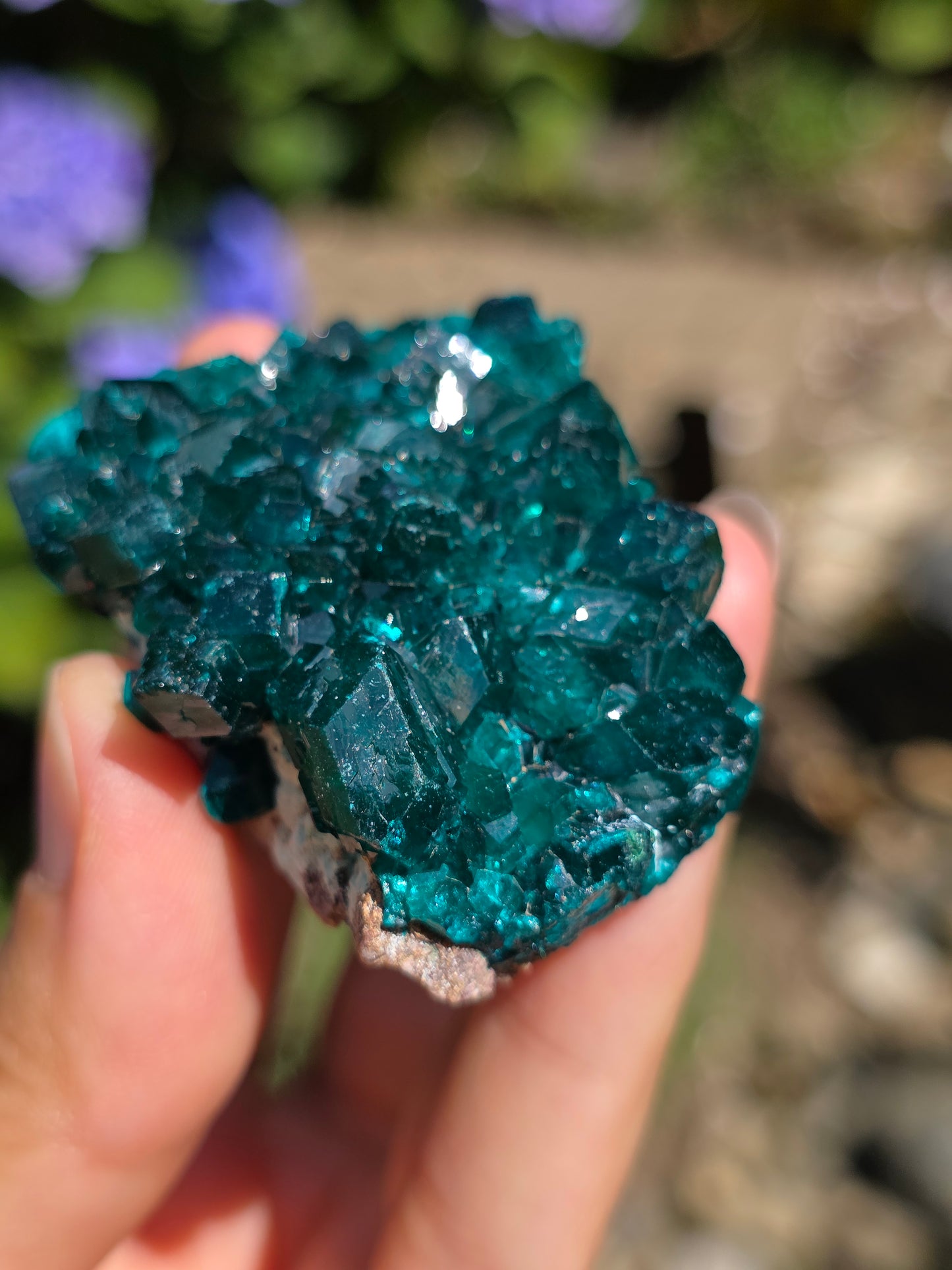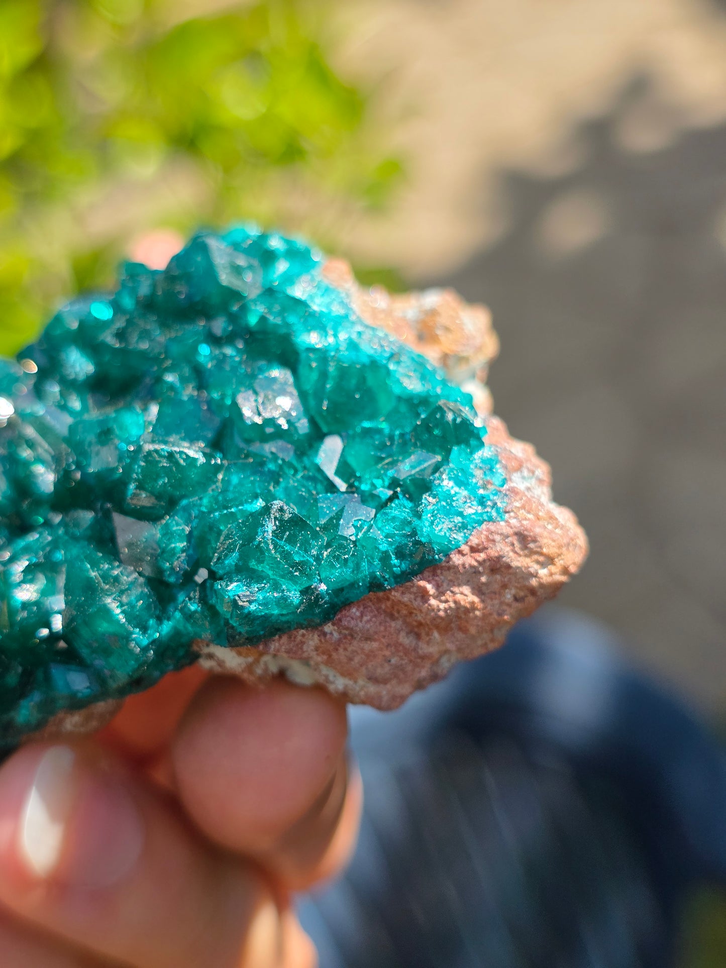 Superbe Dioptase cristallisée en provenance du Congo. (vidéo disponible ici)