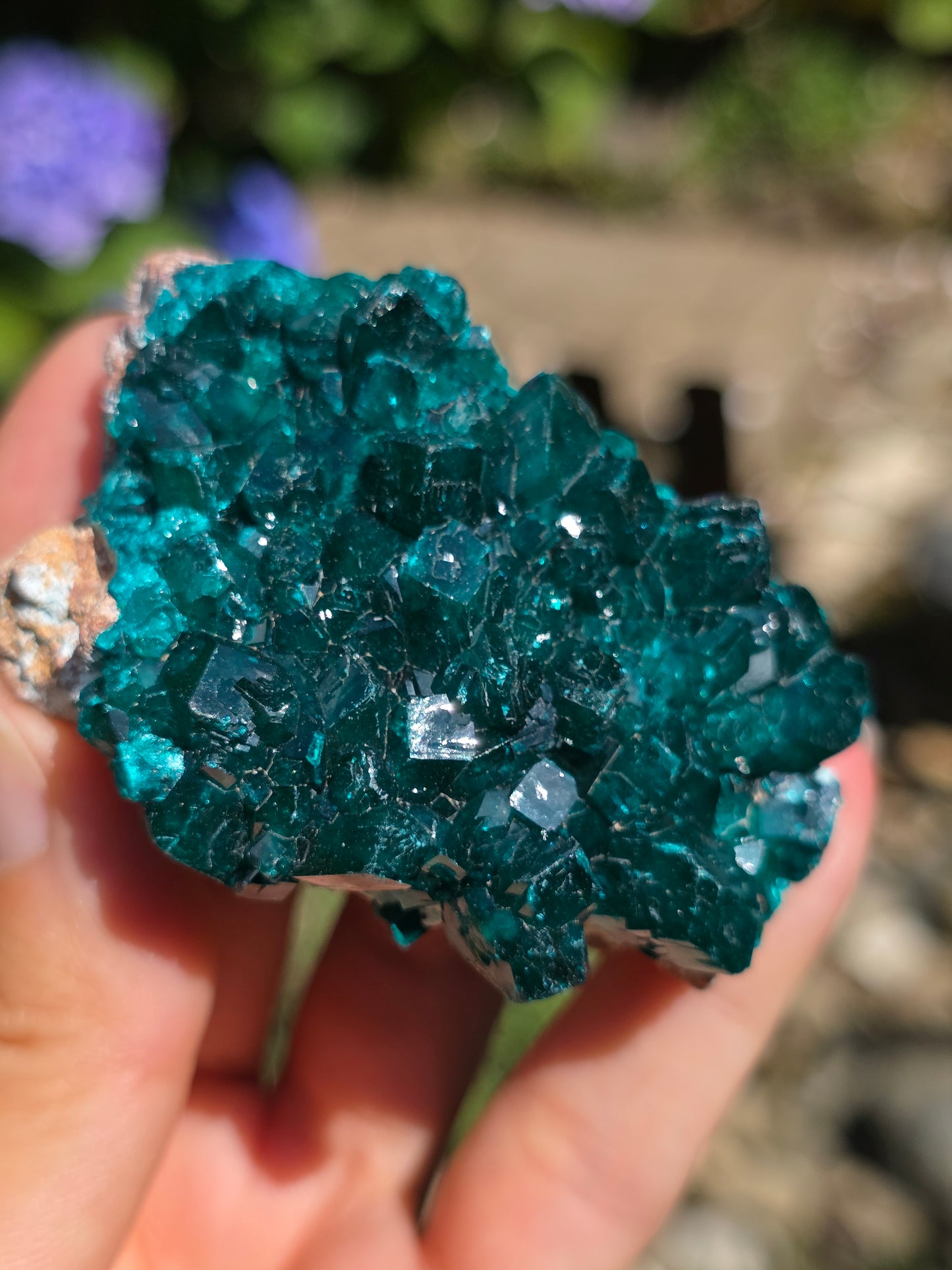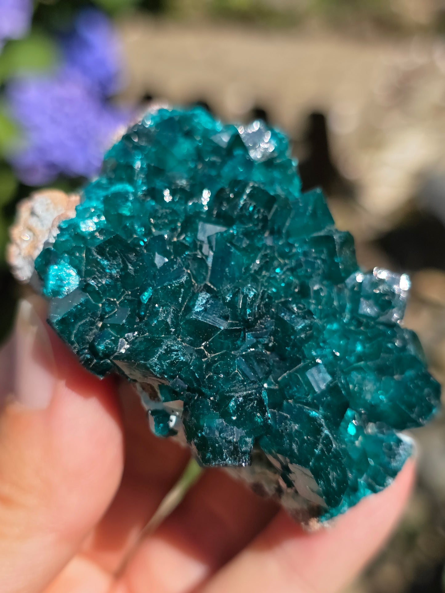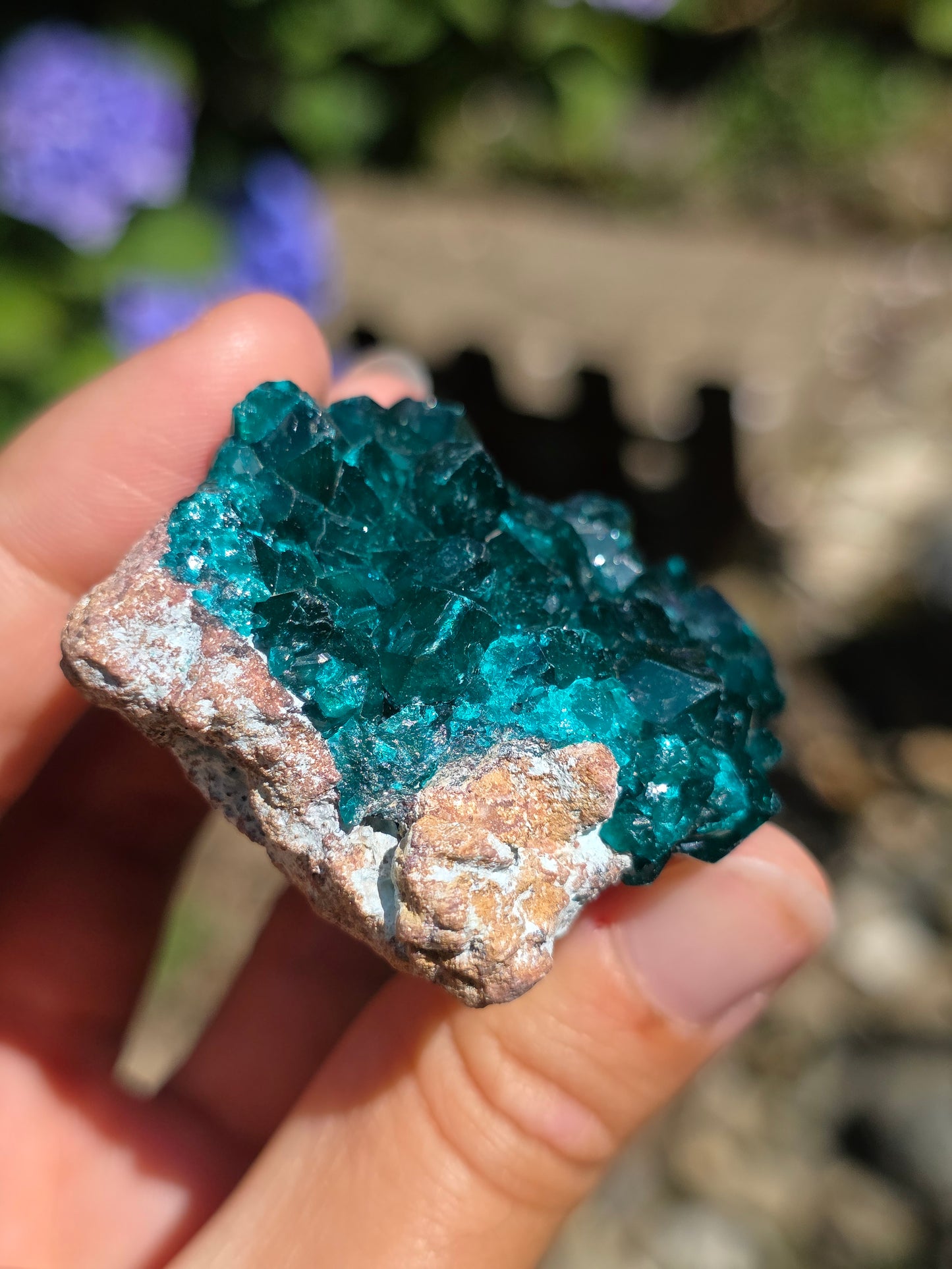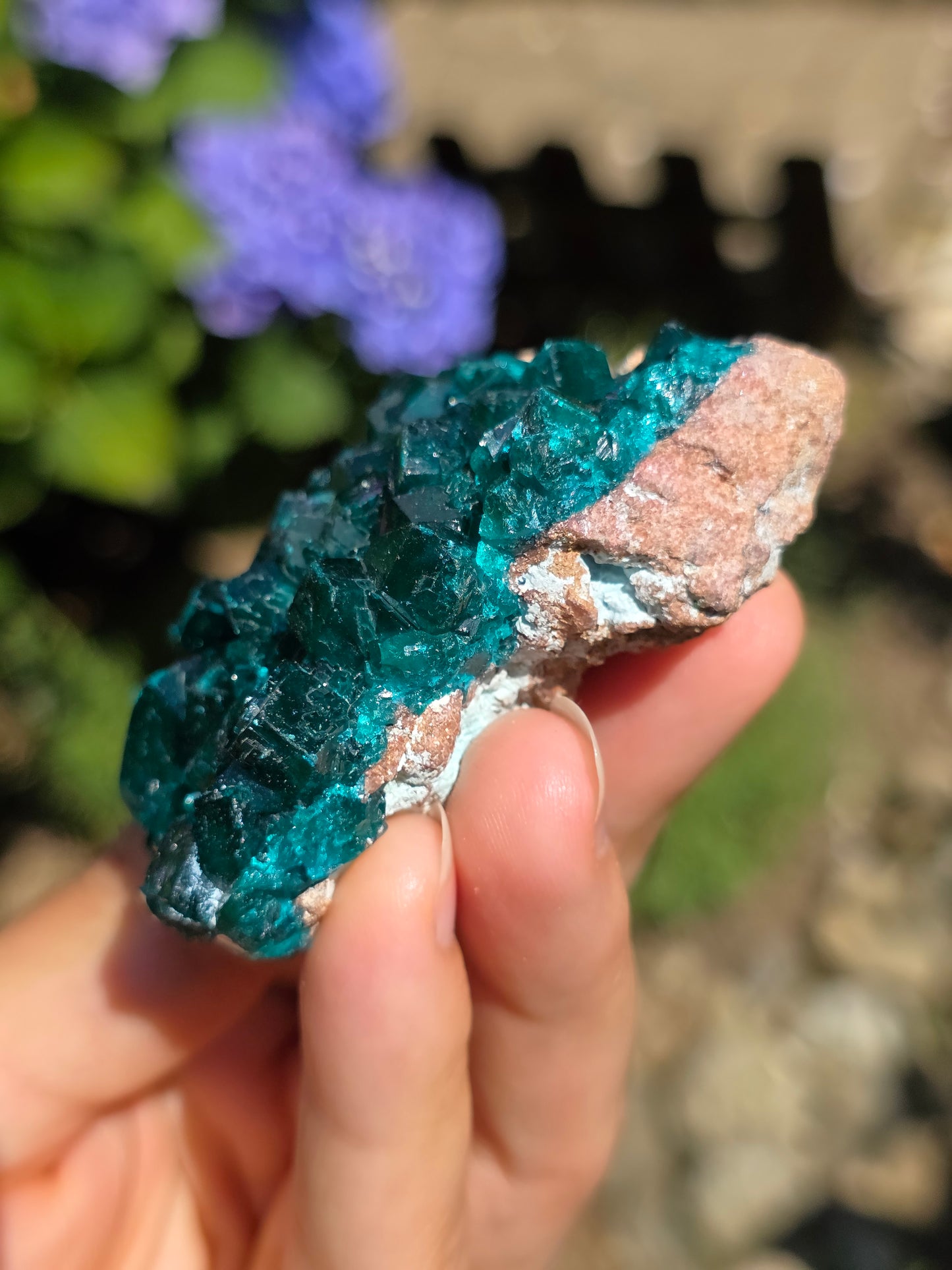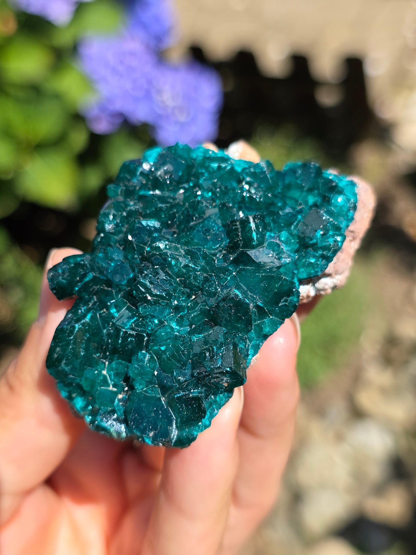 Superbe Dioptase cristallisée en provenance du Congo. (vidéo disponible ici)