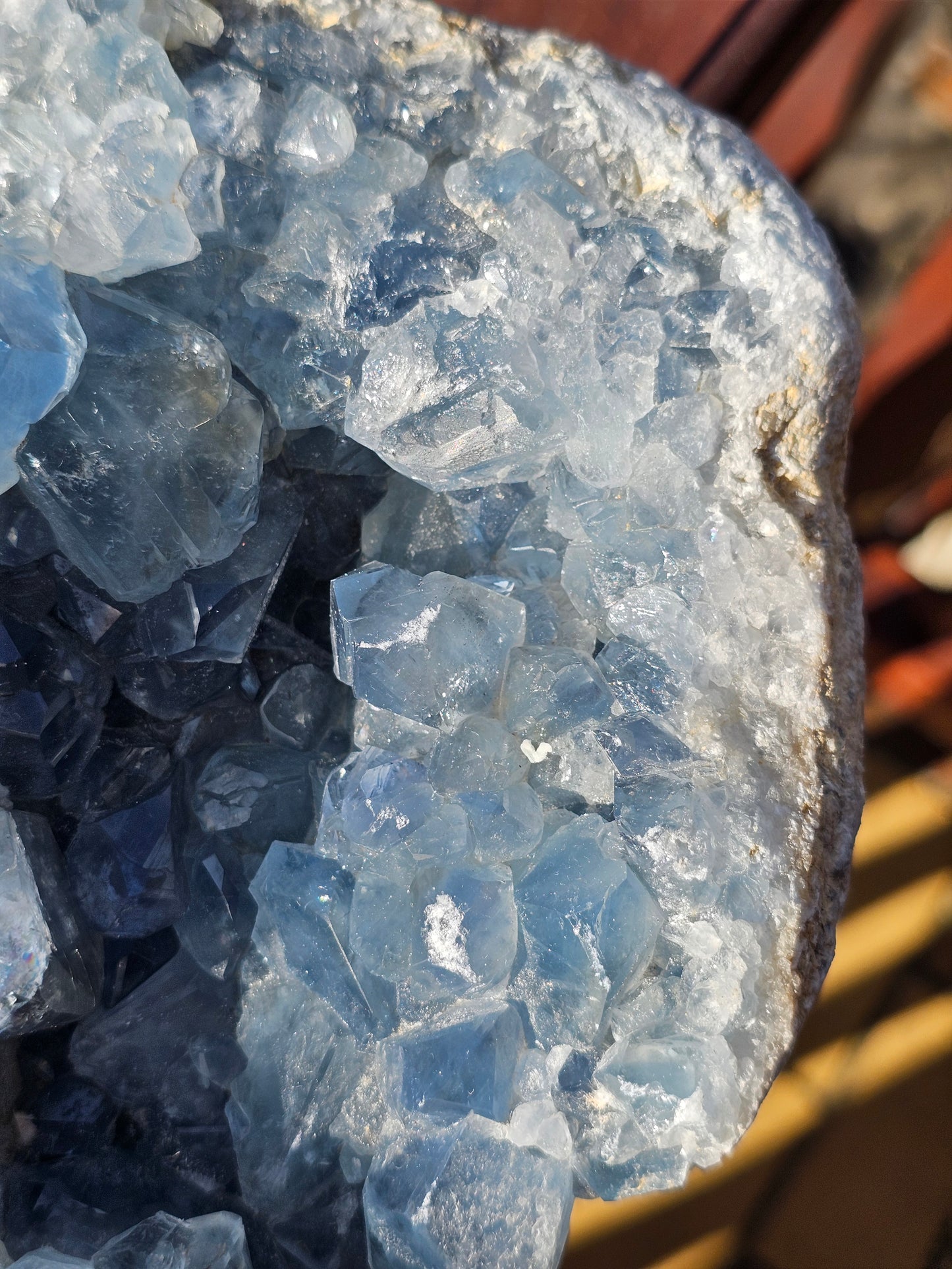 Superbe géode de Célestine de Madagascar.