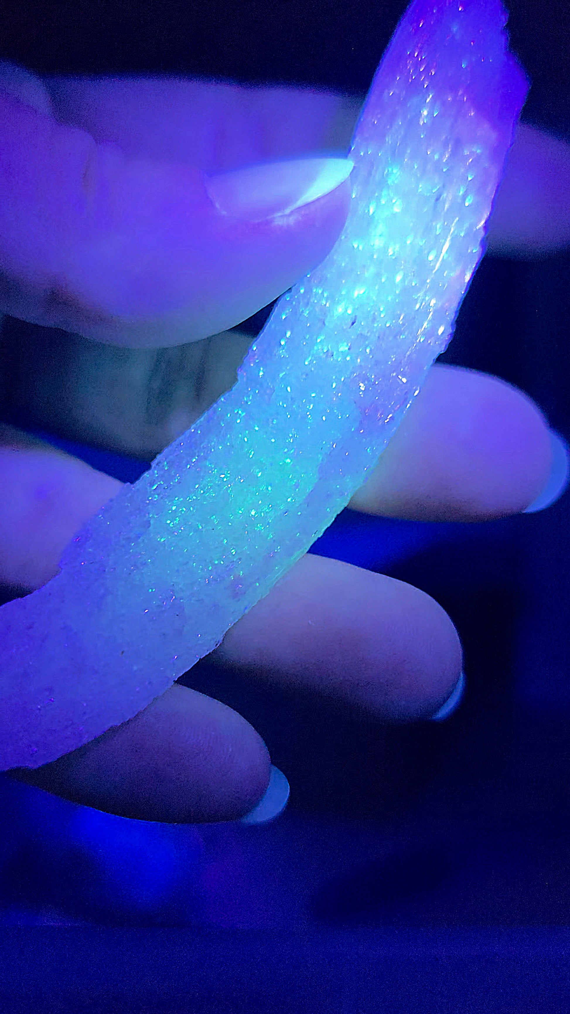 Incroyable Gypse Rams Horn de Chine légèrement réactif aux UV.