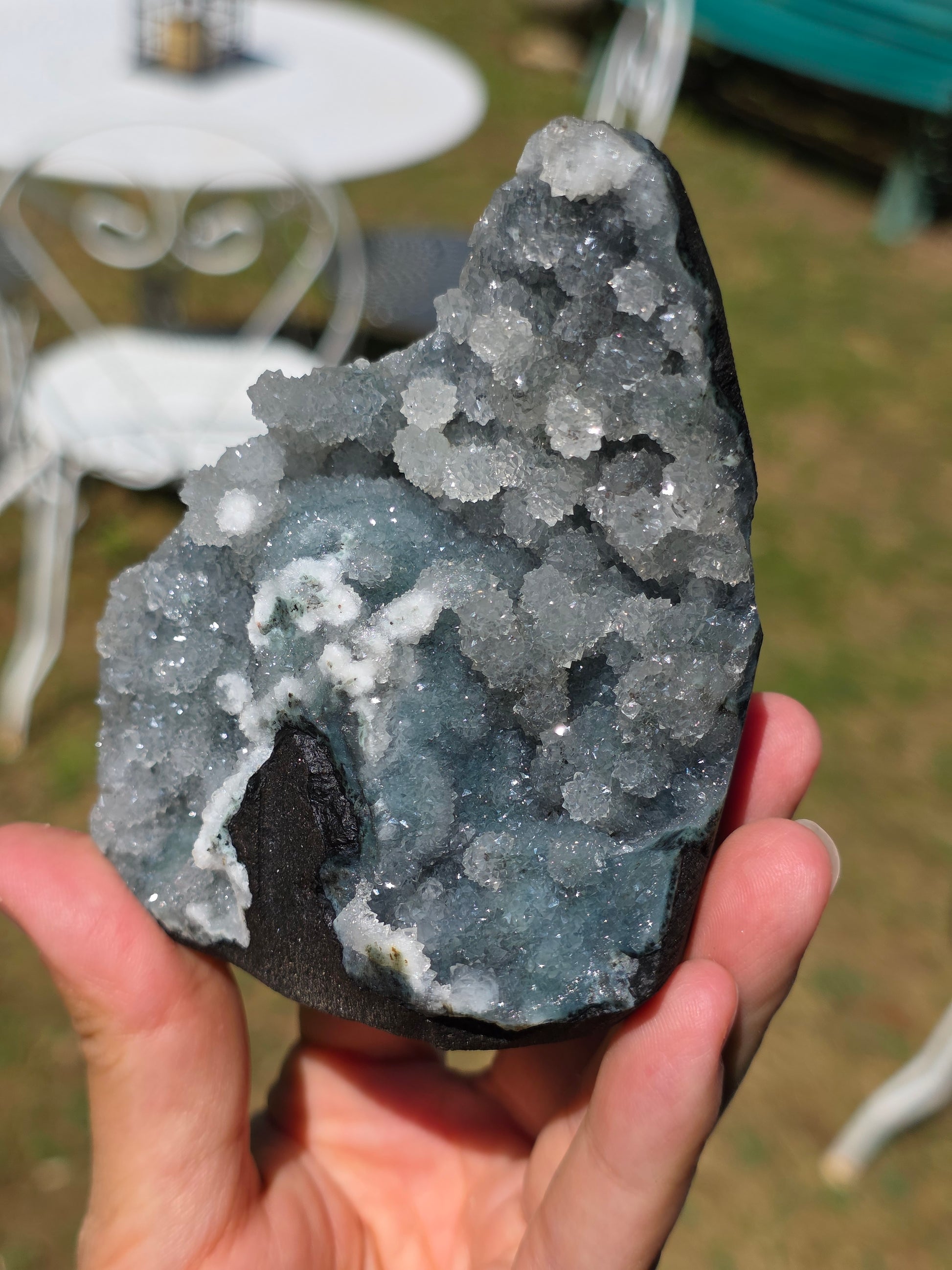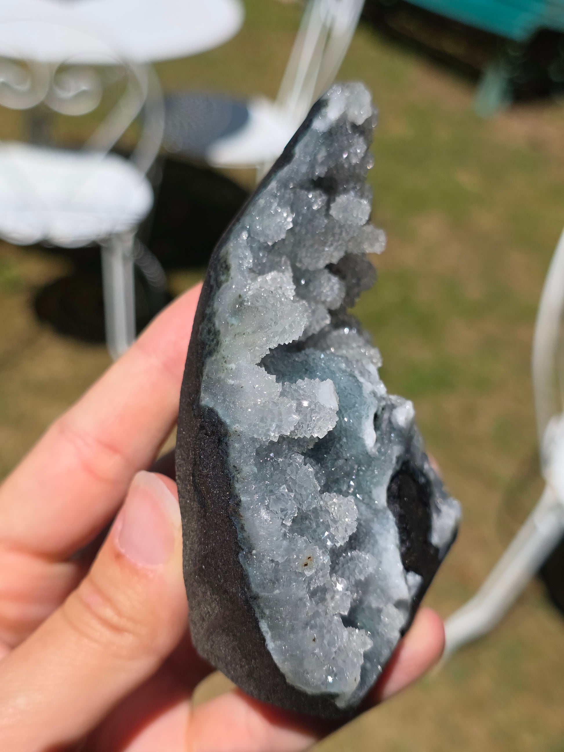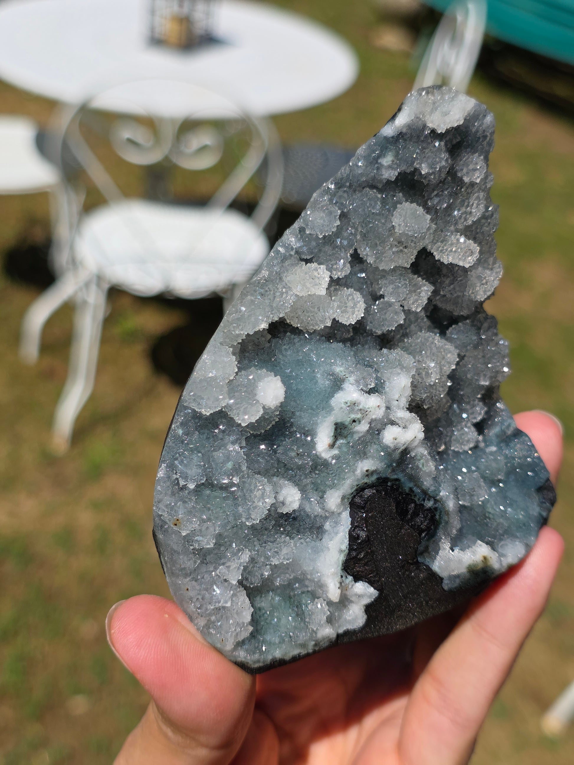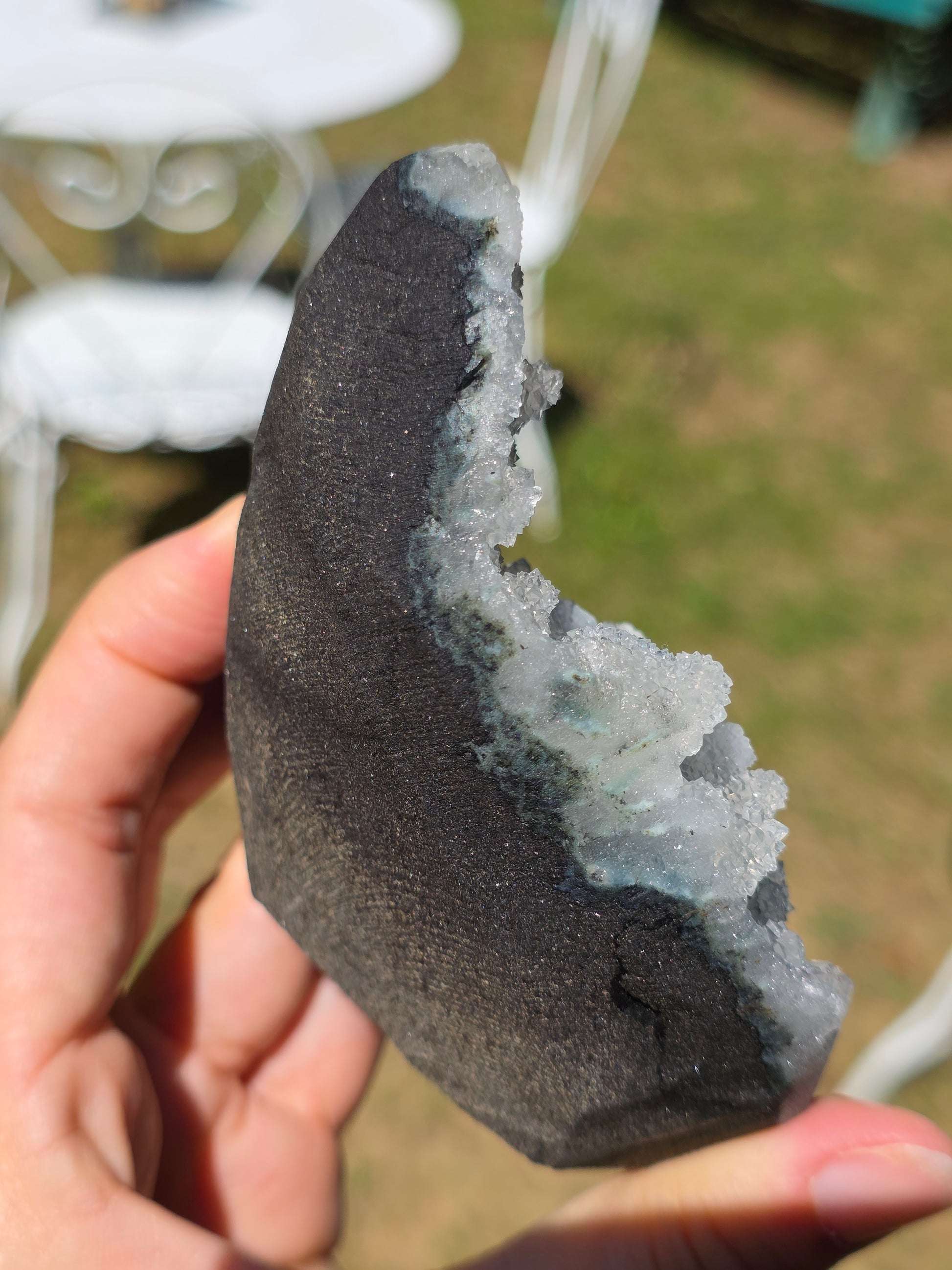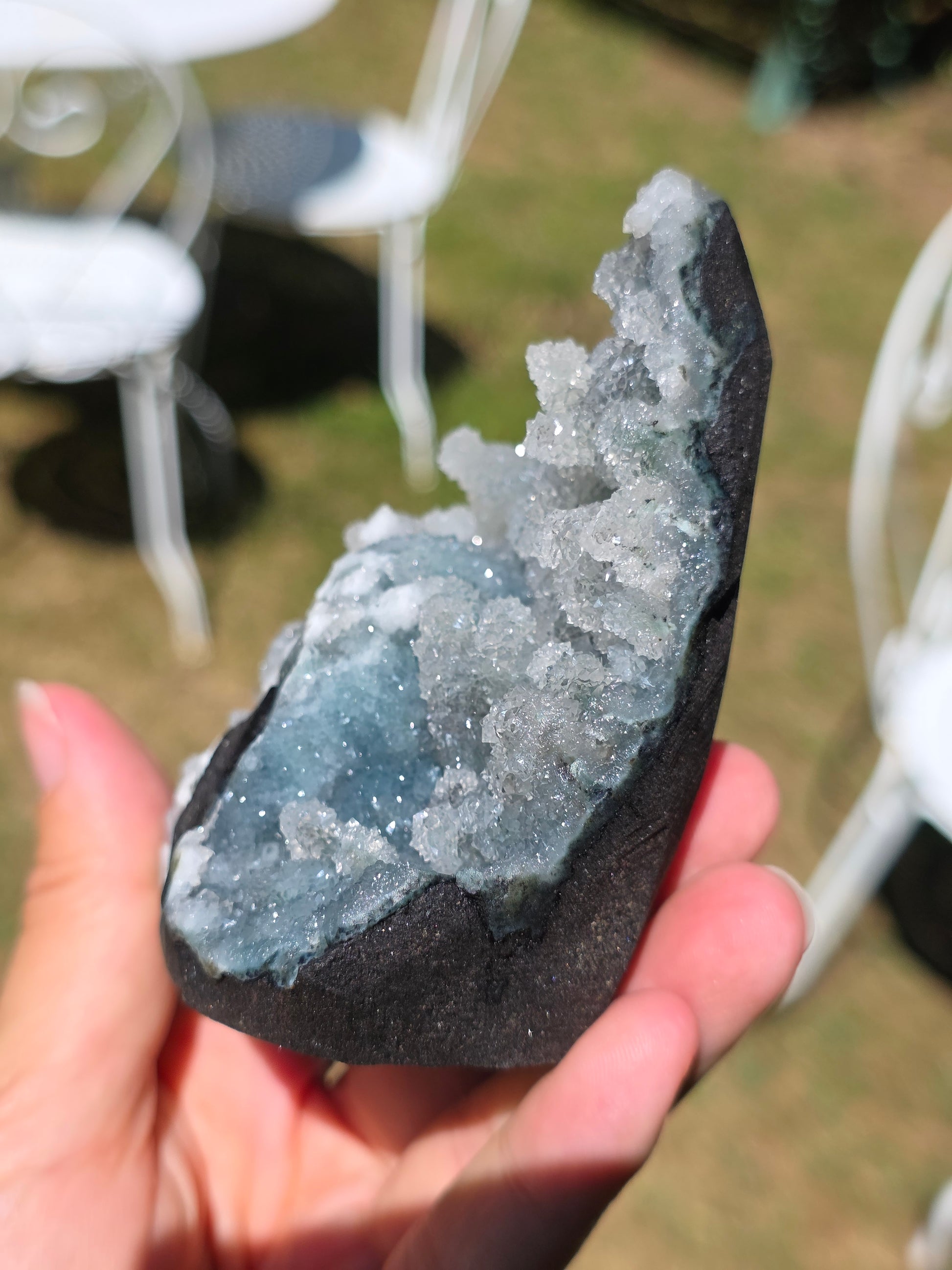 Magnifique Calcédoine en provenance d'Inde (vidéo ici).