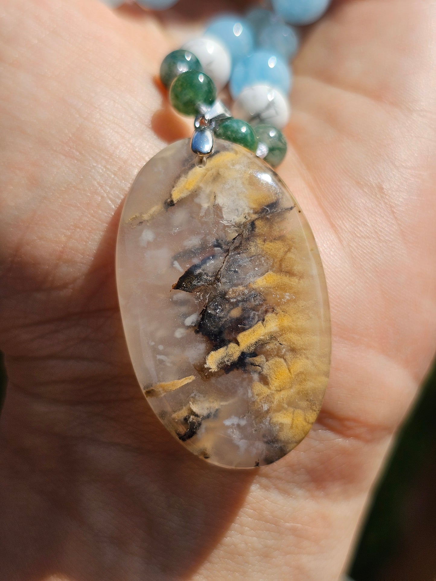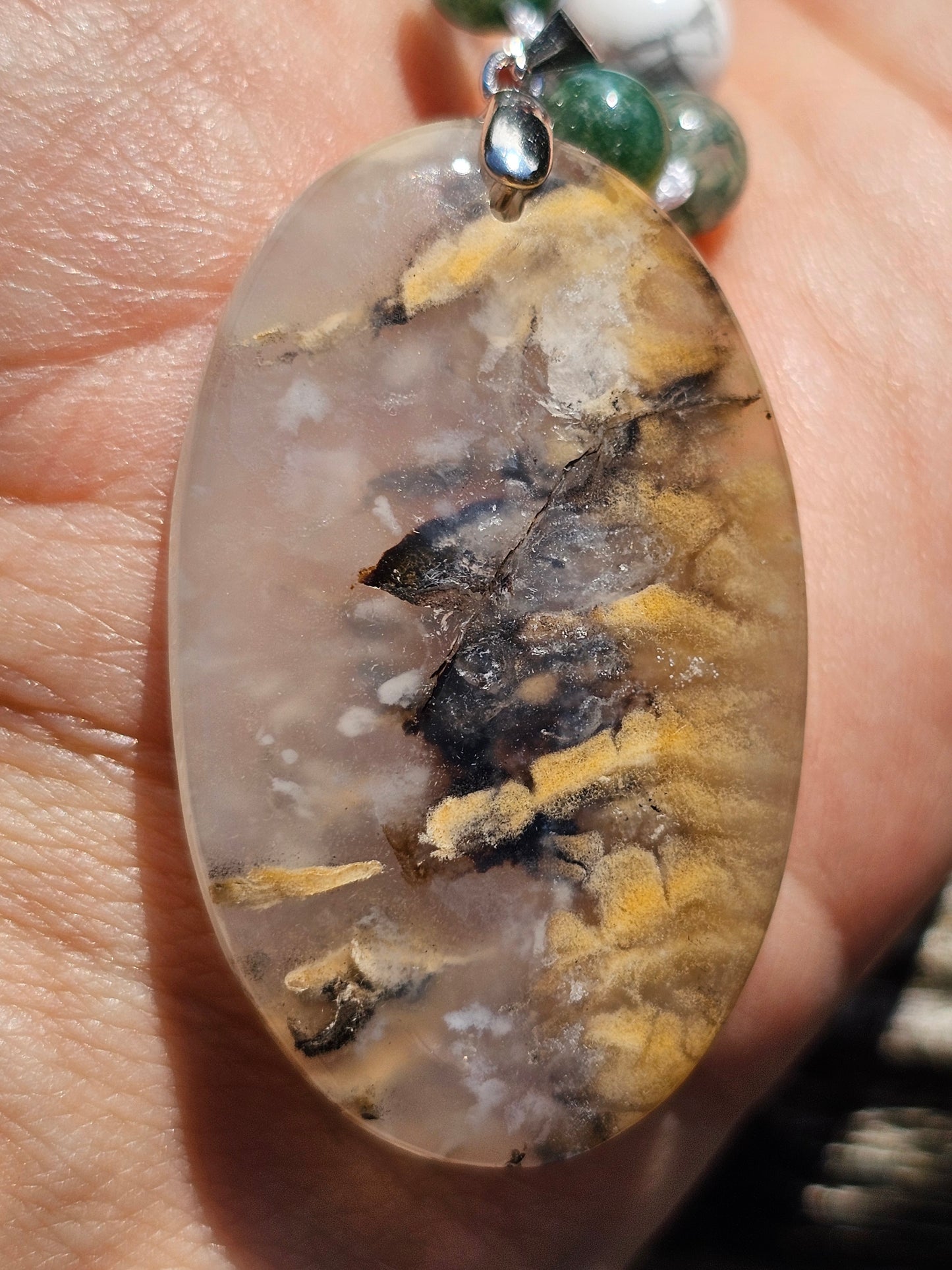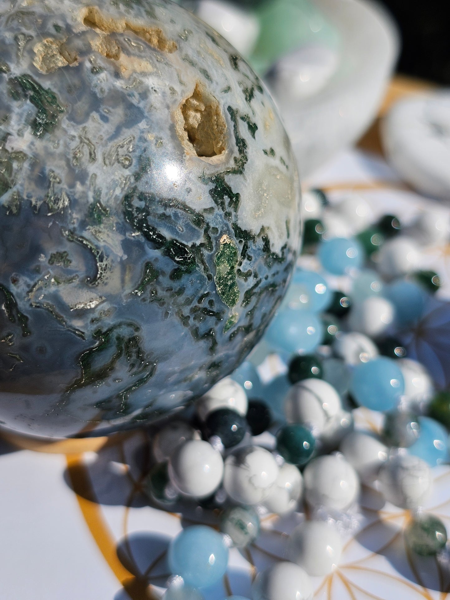 Agate mousse : ouverture d'esprit et du cœur avec un sentiment de sécurité, confiance en soi, communication avec les autres, joie de vivre, légèreté, positivité, relativiser, connexions aux énergies de la Nature, instant présent, retrouver sa nature profonde.