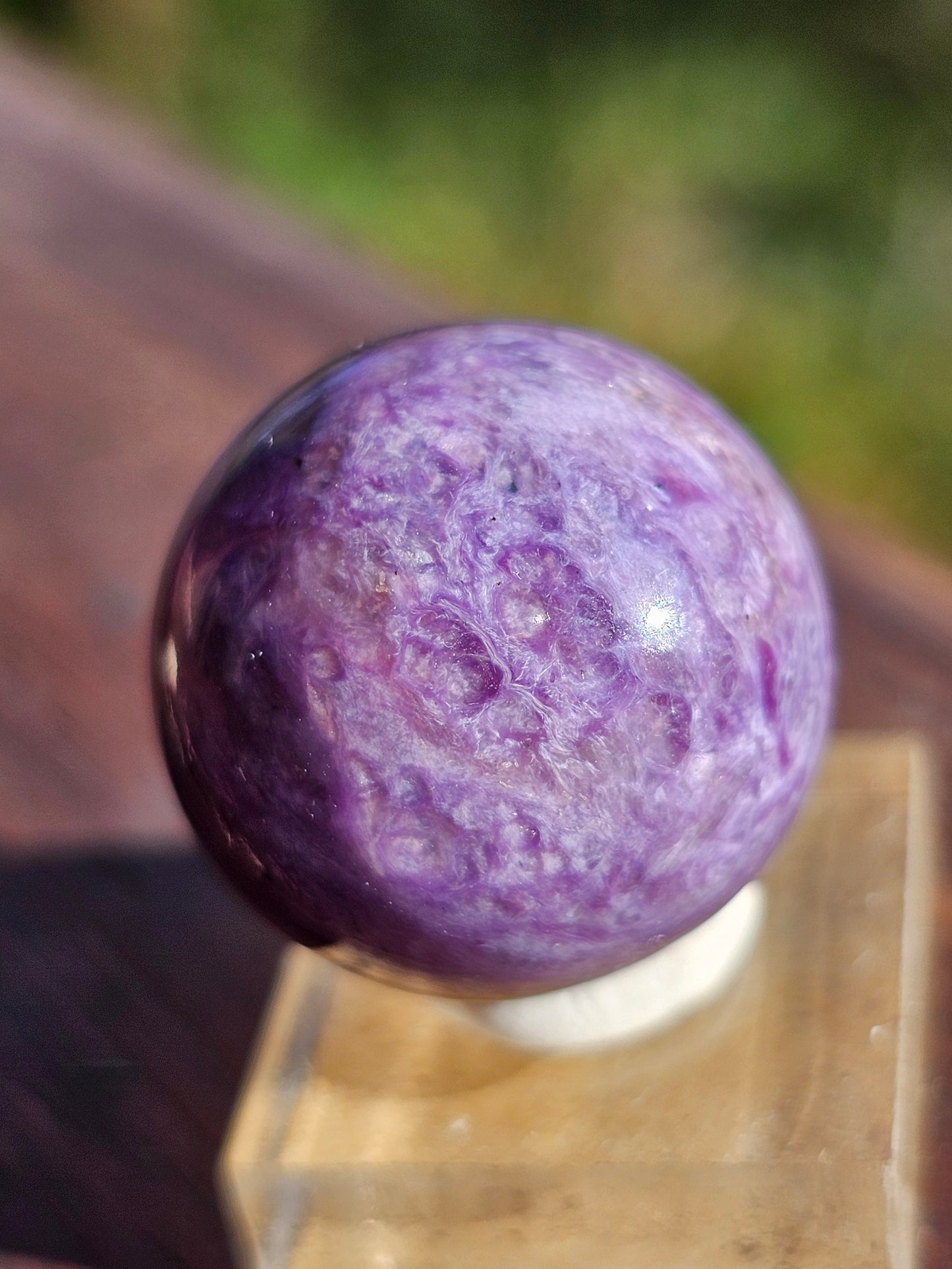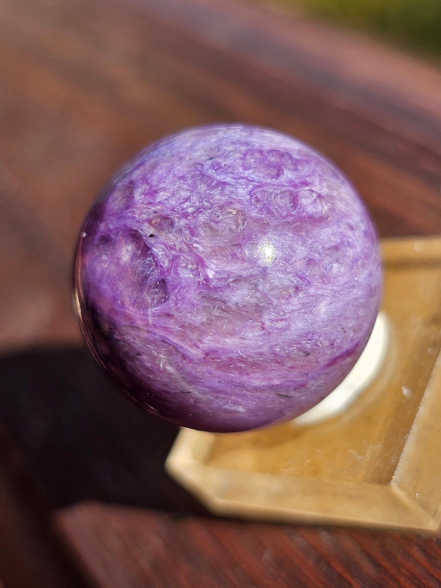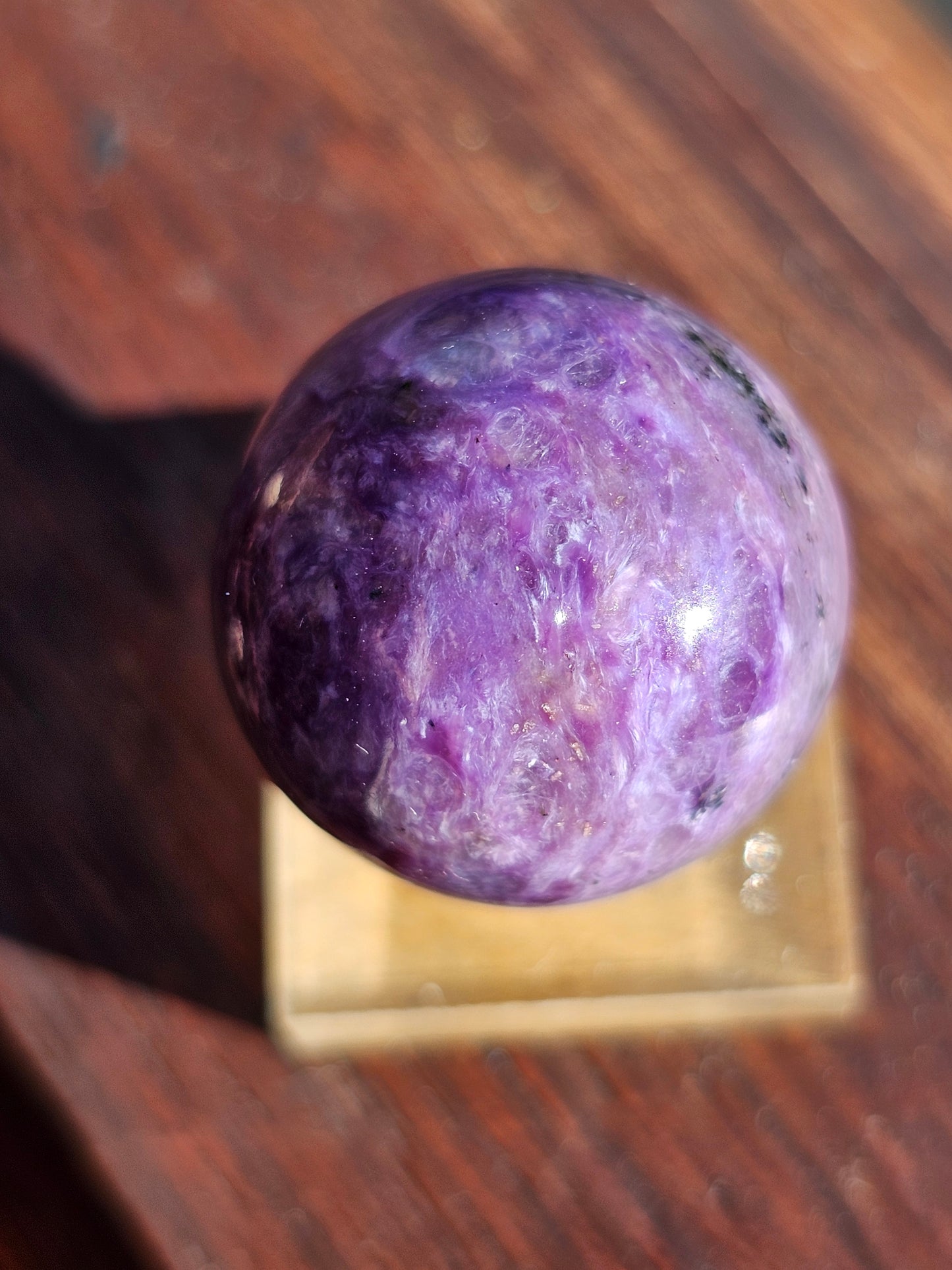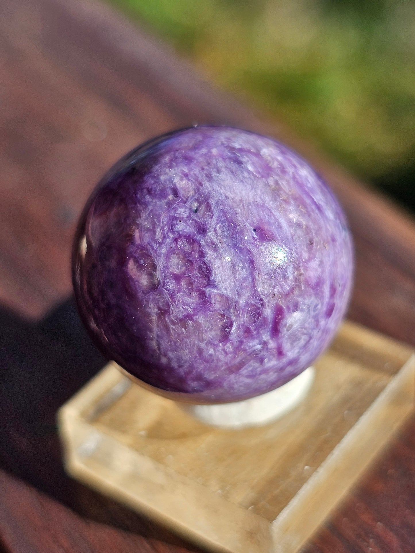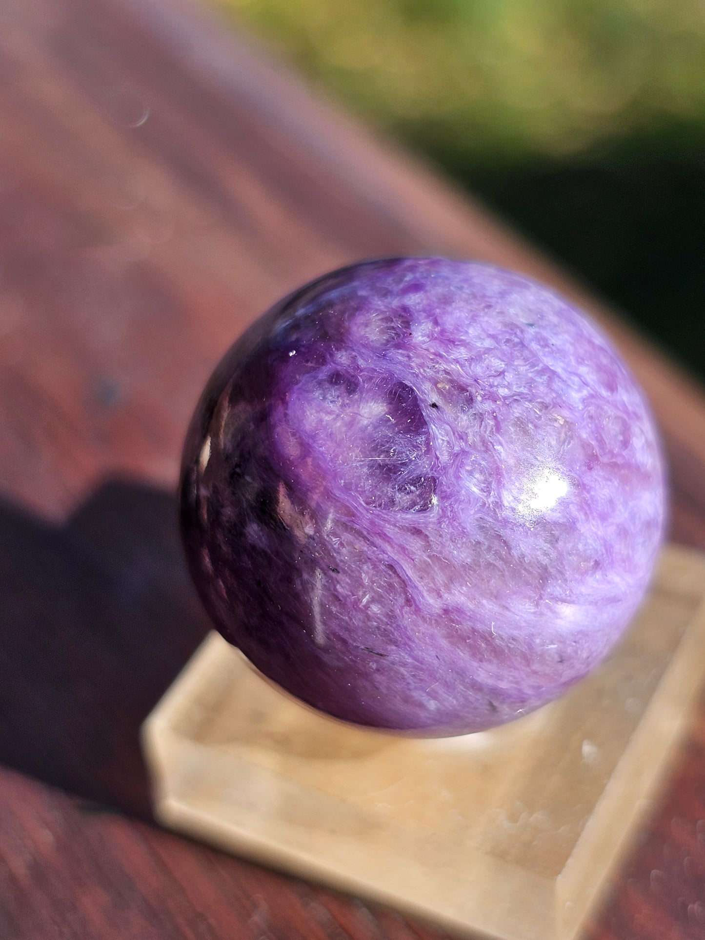 Superbe petite sphère de Charoïte de Russie sur socle (vous pouvez bien évidemment l'enlever sans dommage).