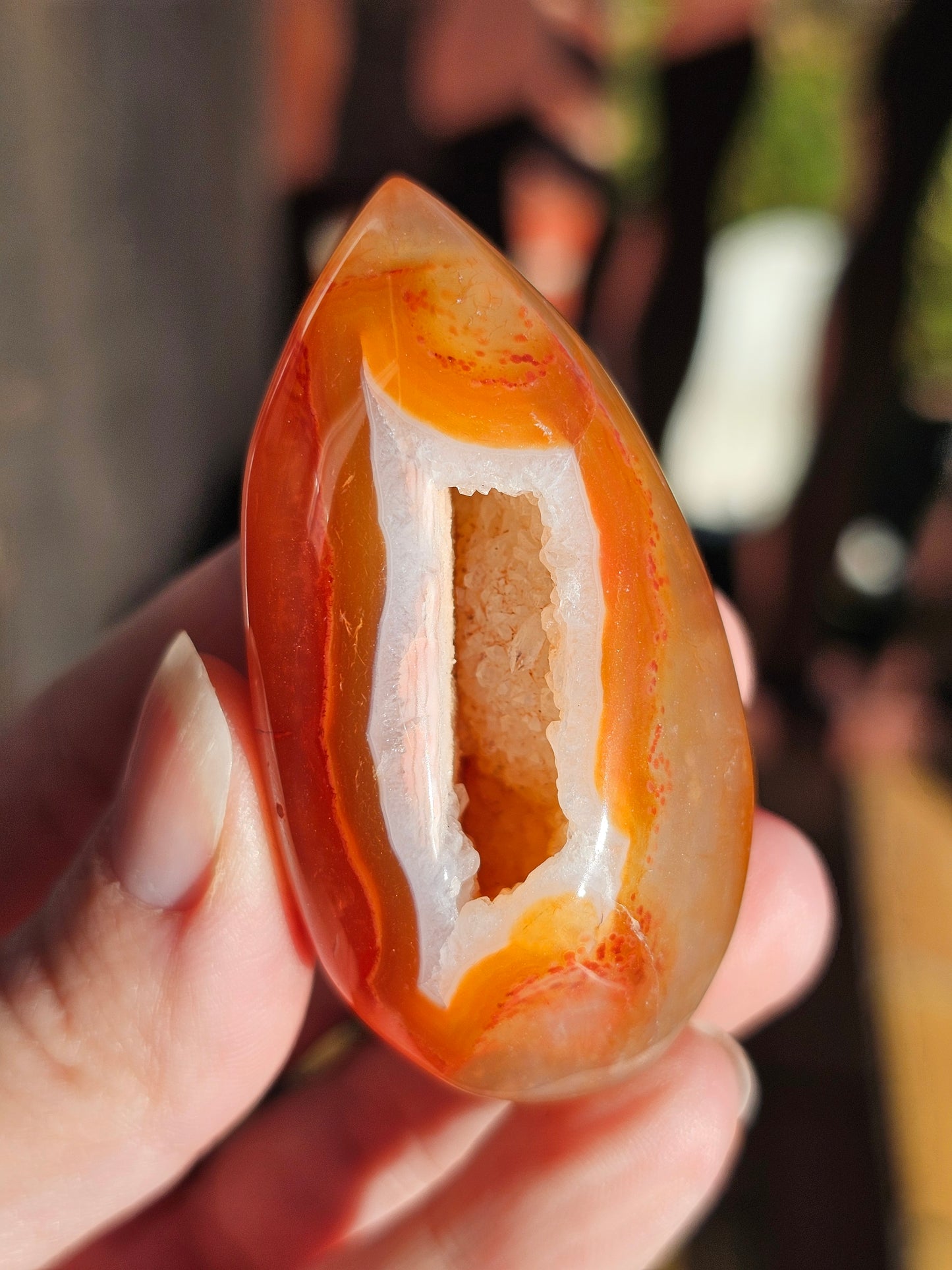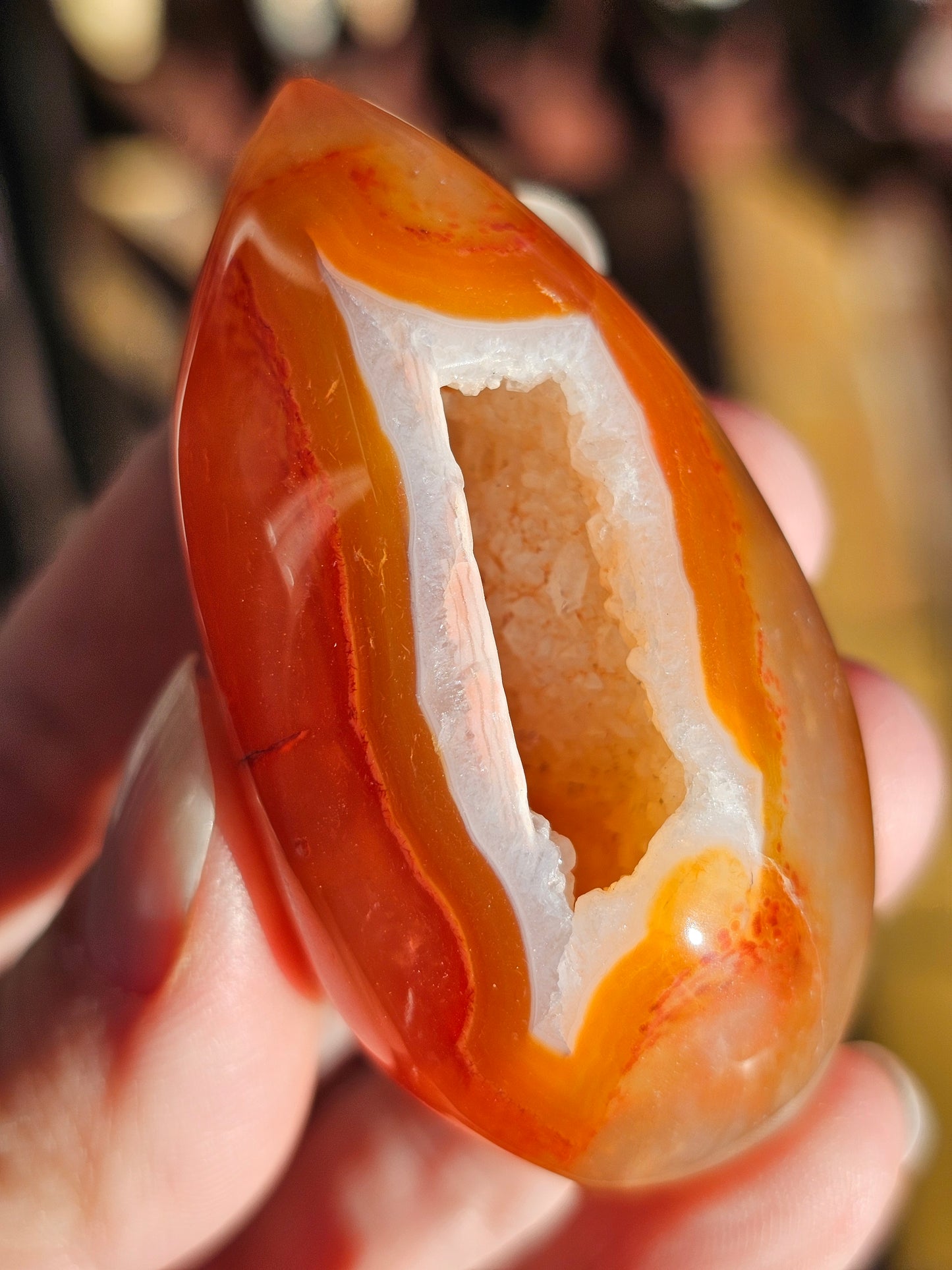 Magnifique Oeuf en Cornaline de Madagascar joliment cristallisée.
