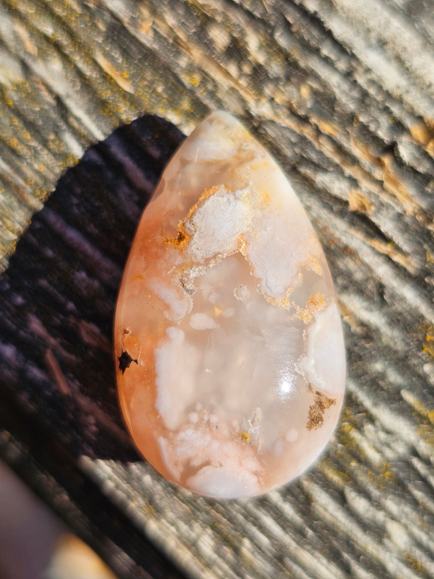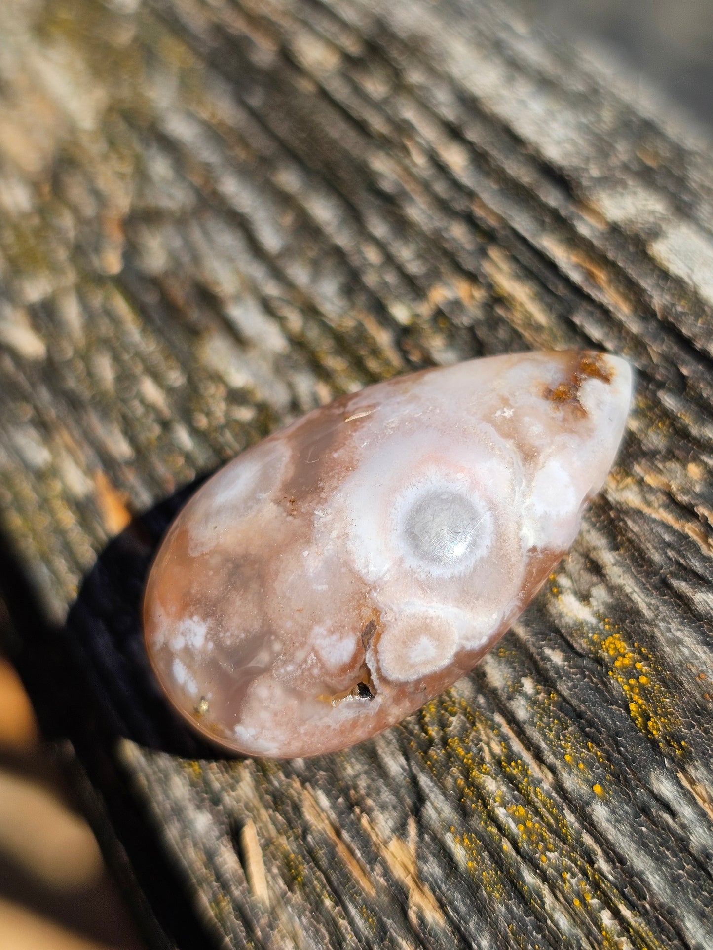 Superbe pendentif en Agate fleurs de cerisiers avec perçage latéral livré dans son pochon.