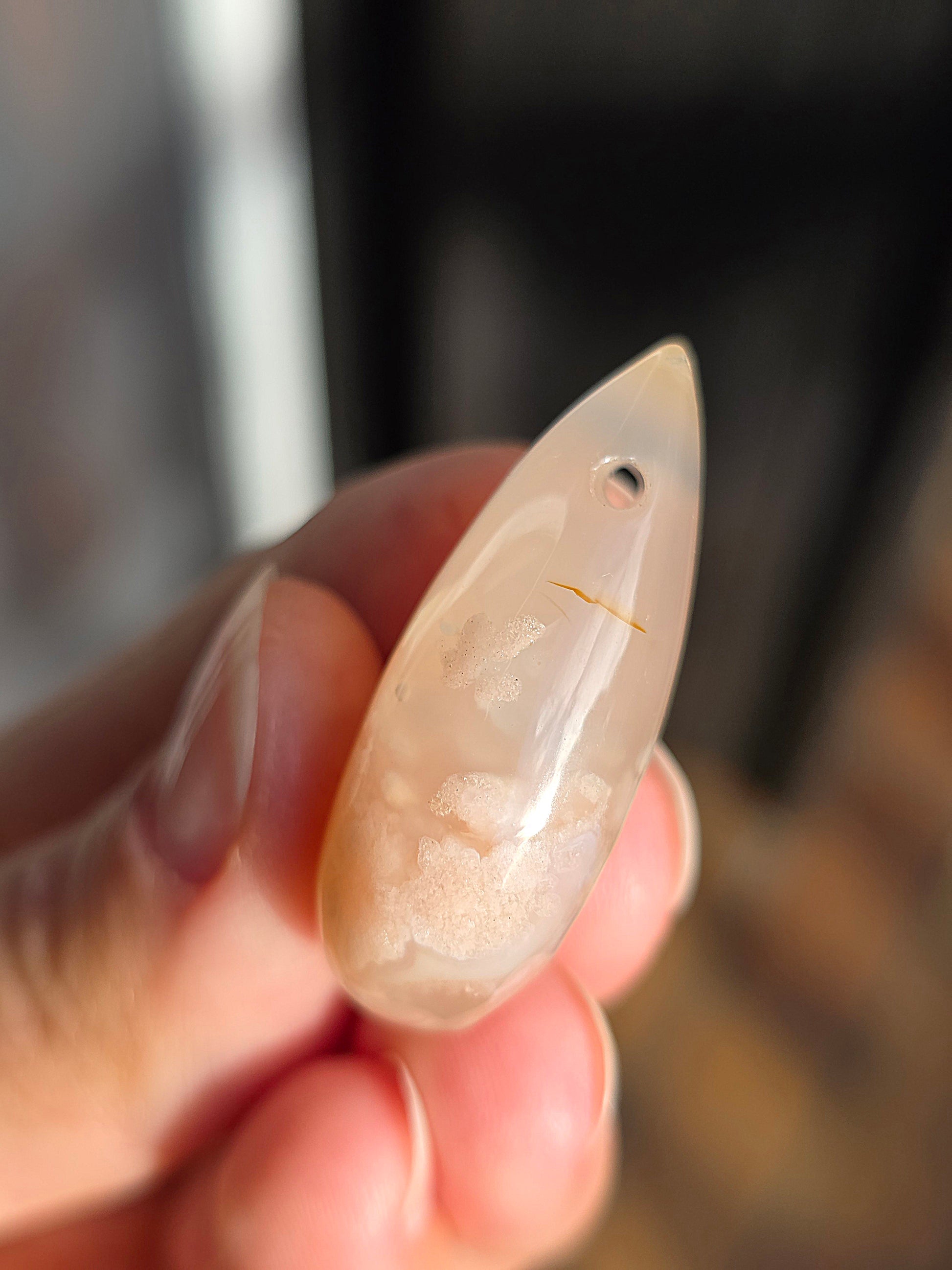 Joli pendentif en Agate fleurs avec perçage latéral. (d'autres modèles sont disponibles sur le site)