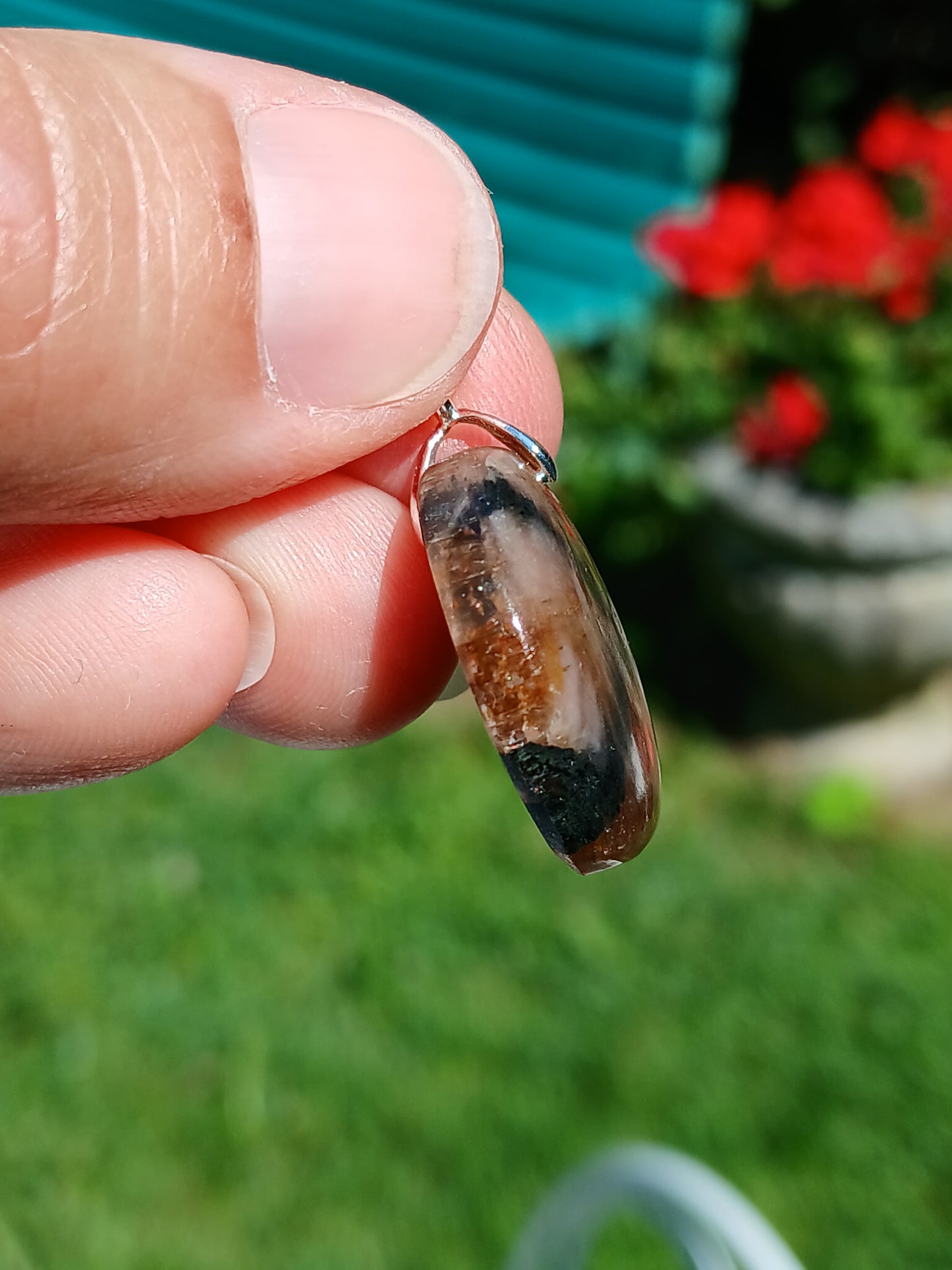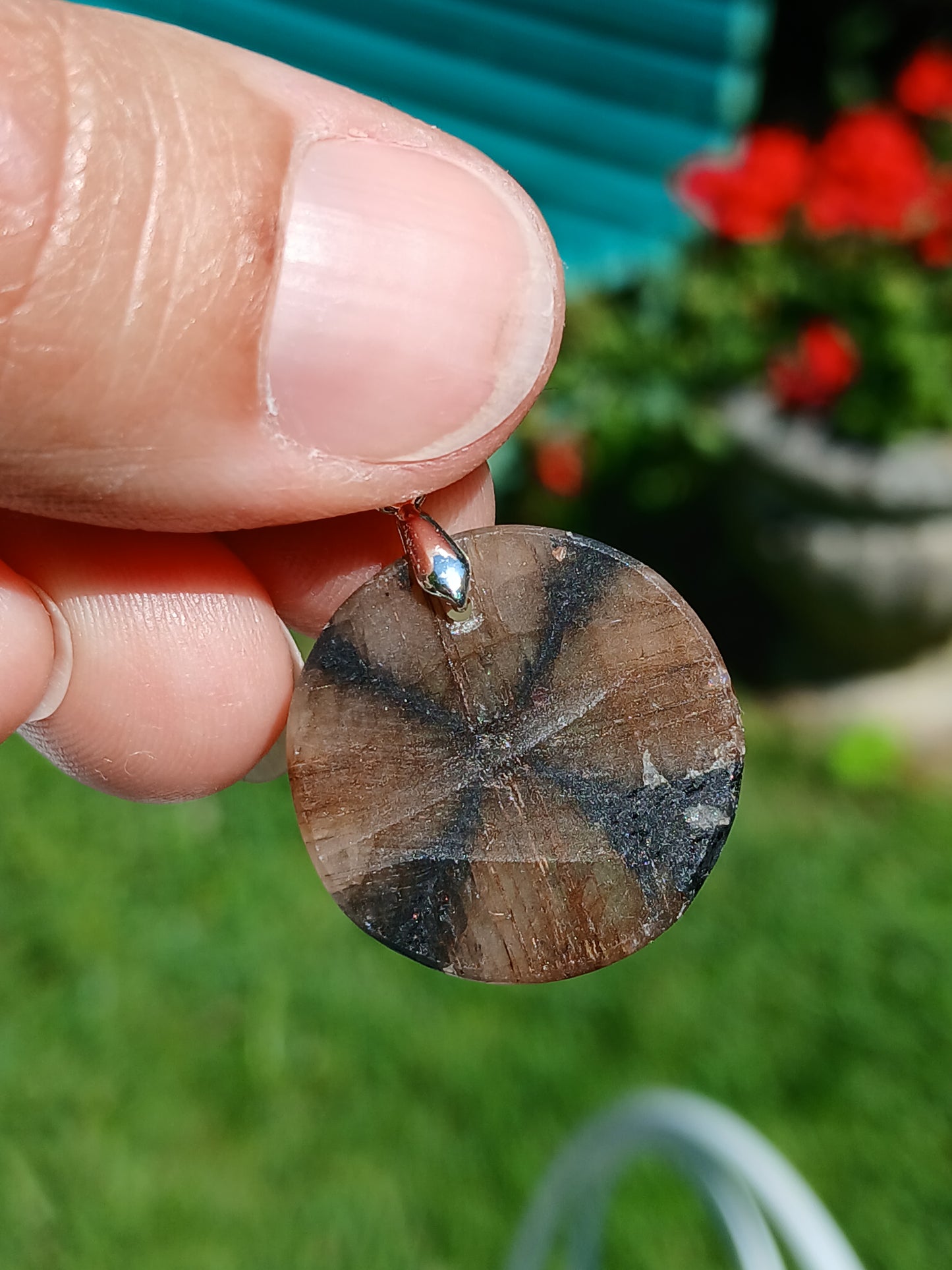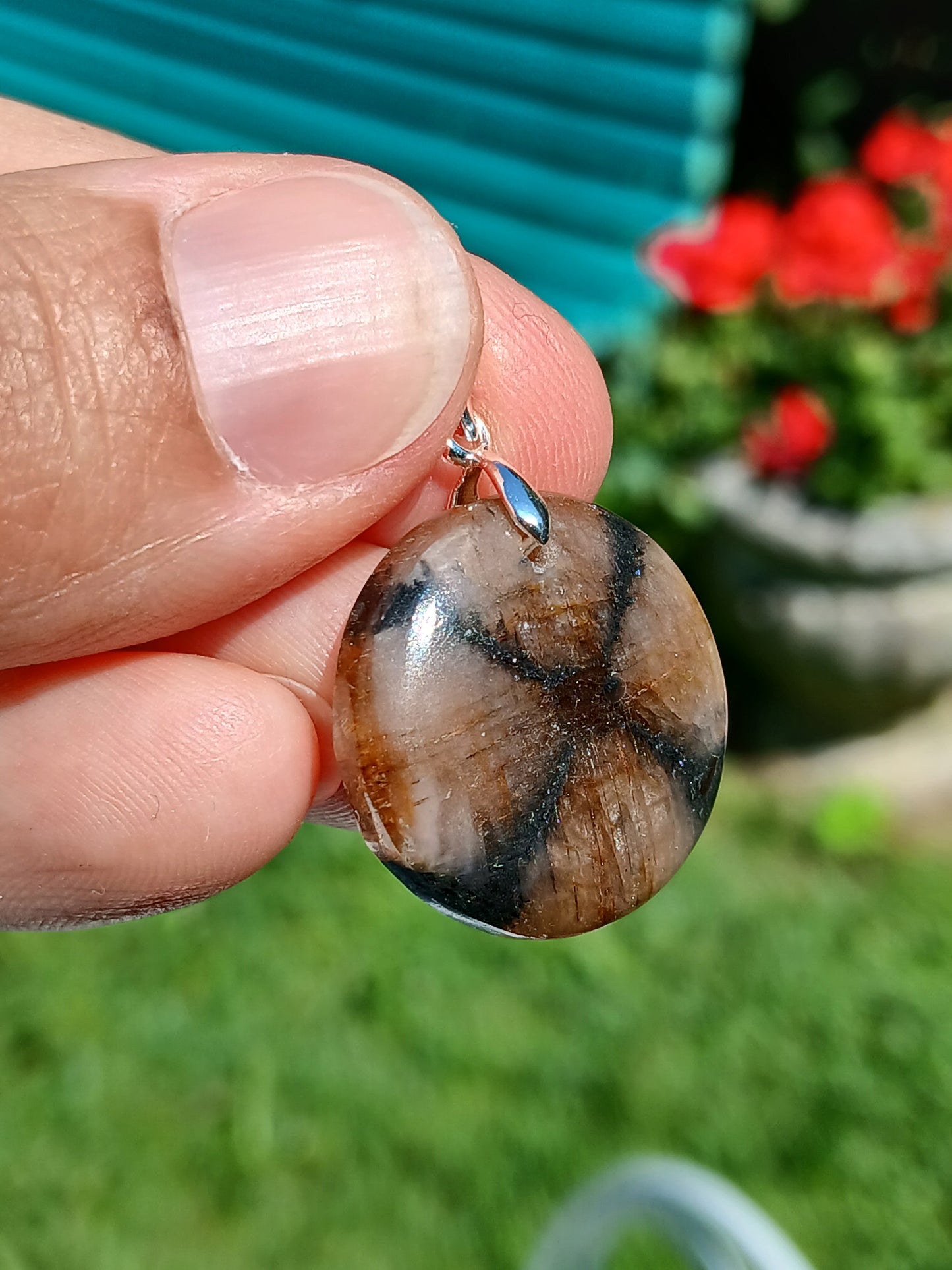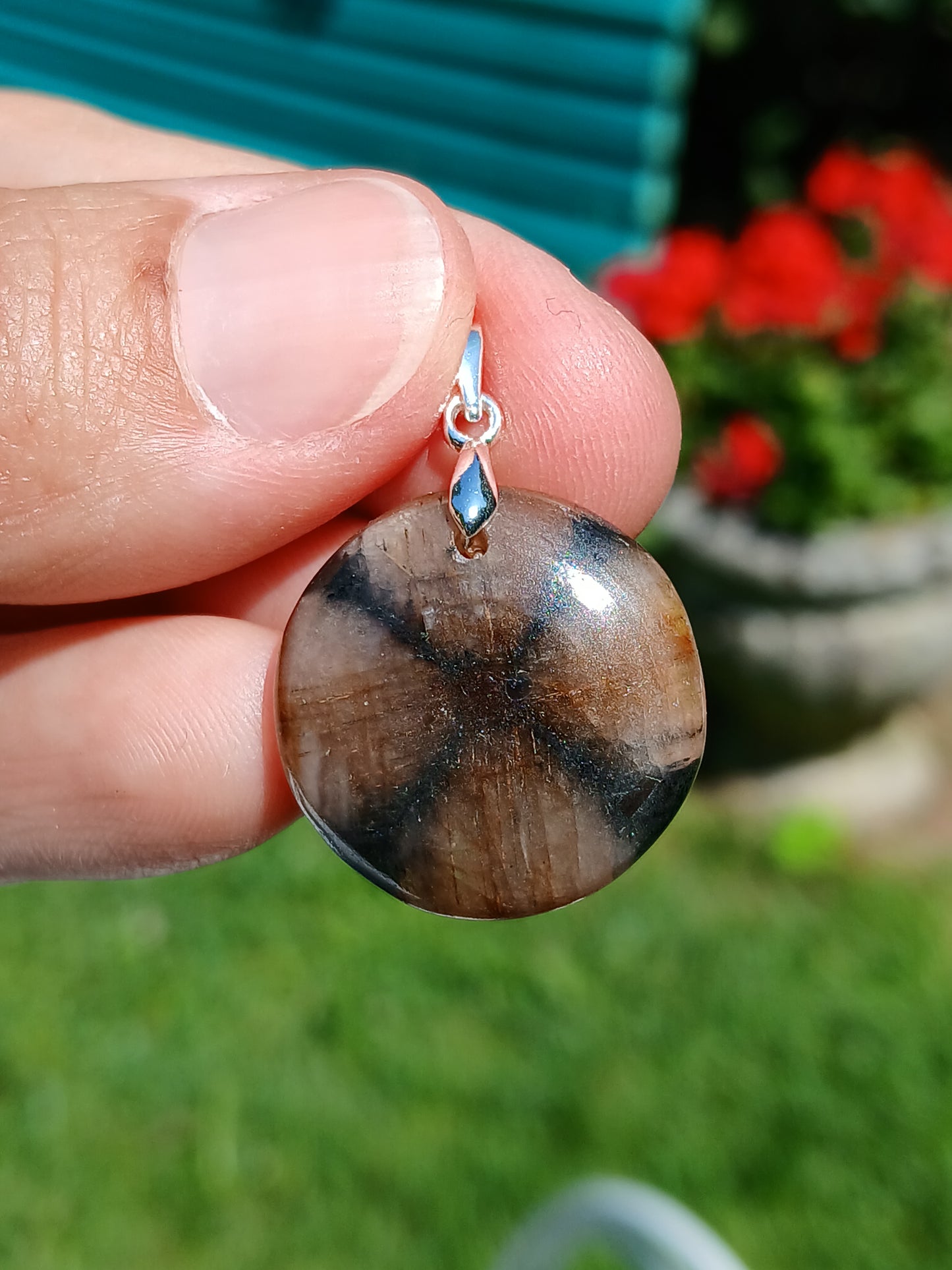 Magnifique pendentif en Chiastolite monté sur une bélière en argent 925 (vidéo disponible ici)