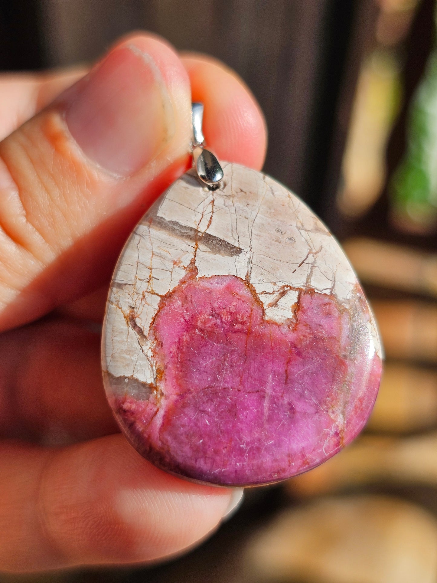 Joli pendentif en Cobaltocalcite monté sur une bélière en argent 925.