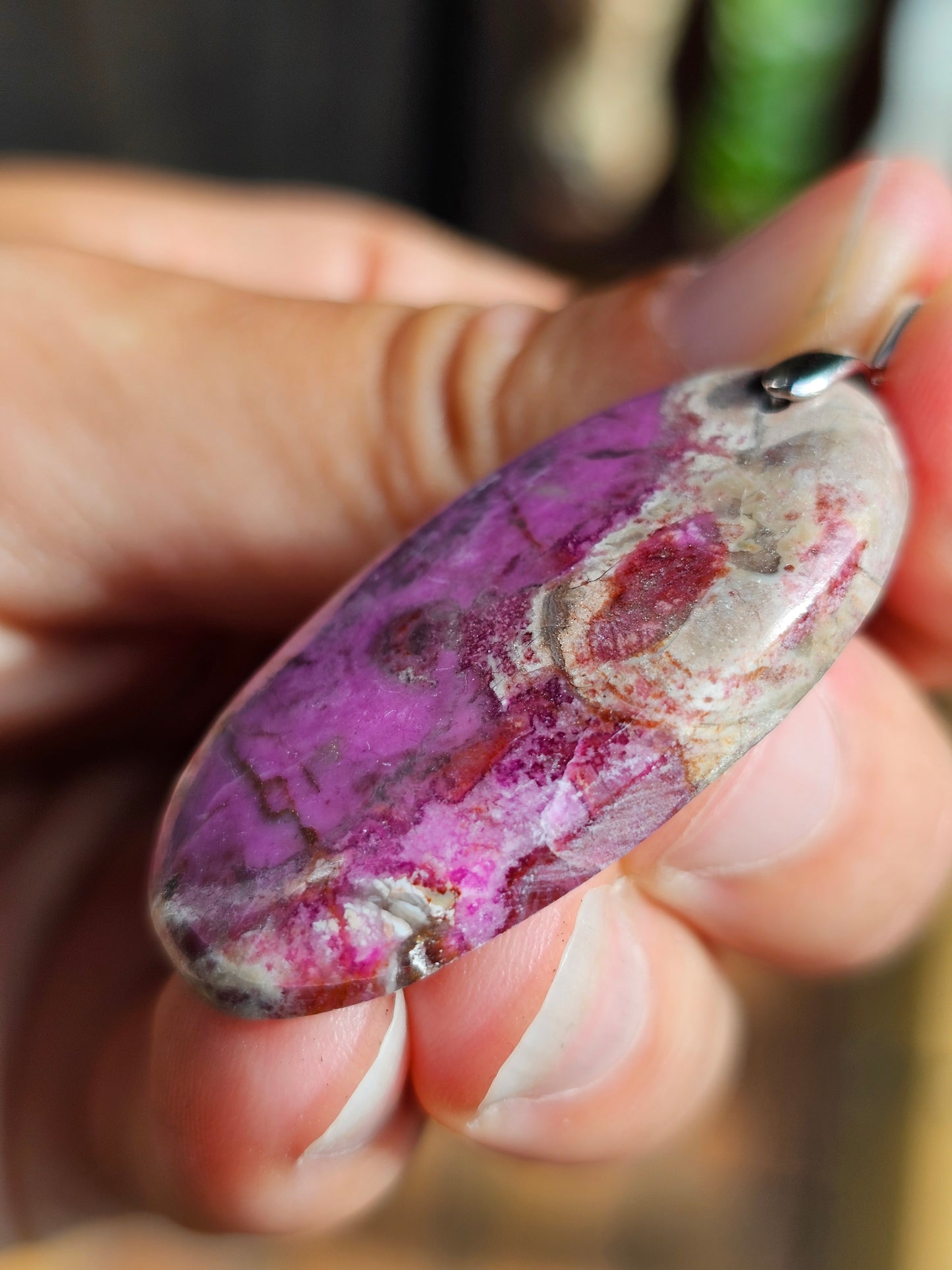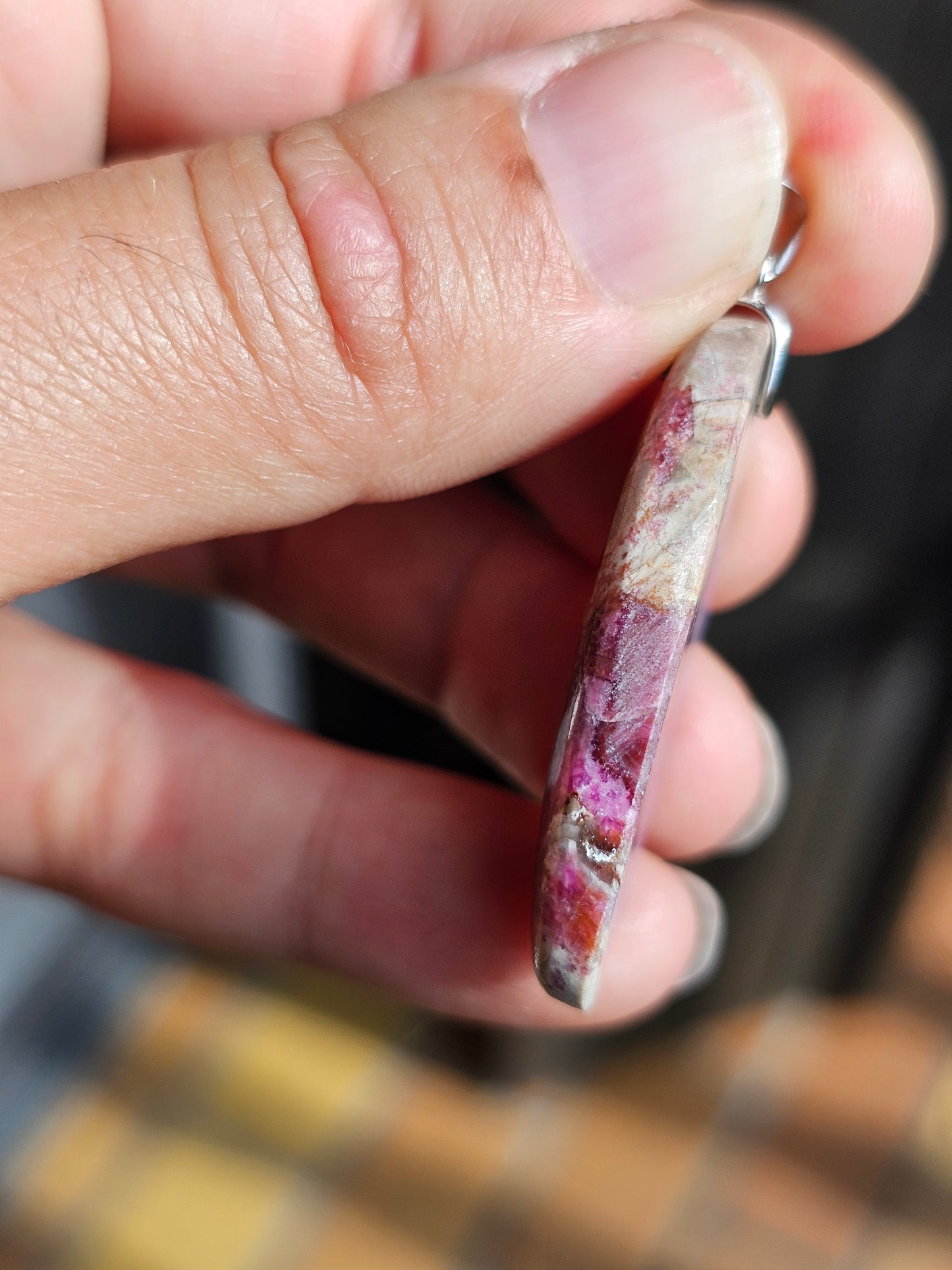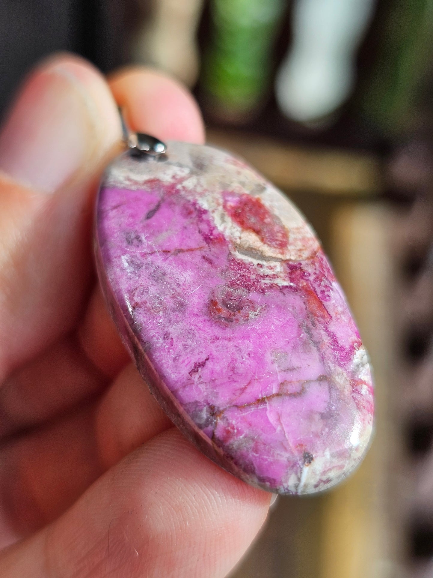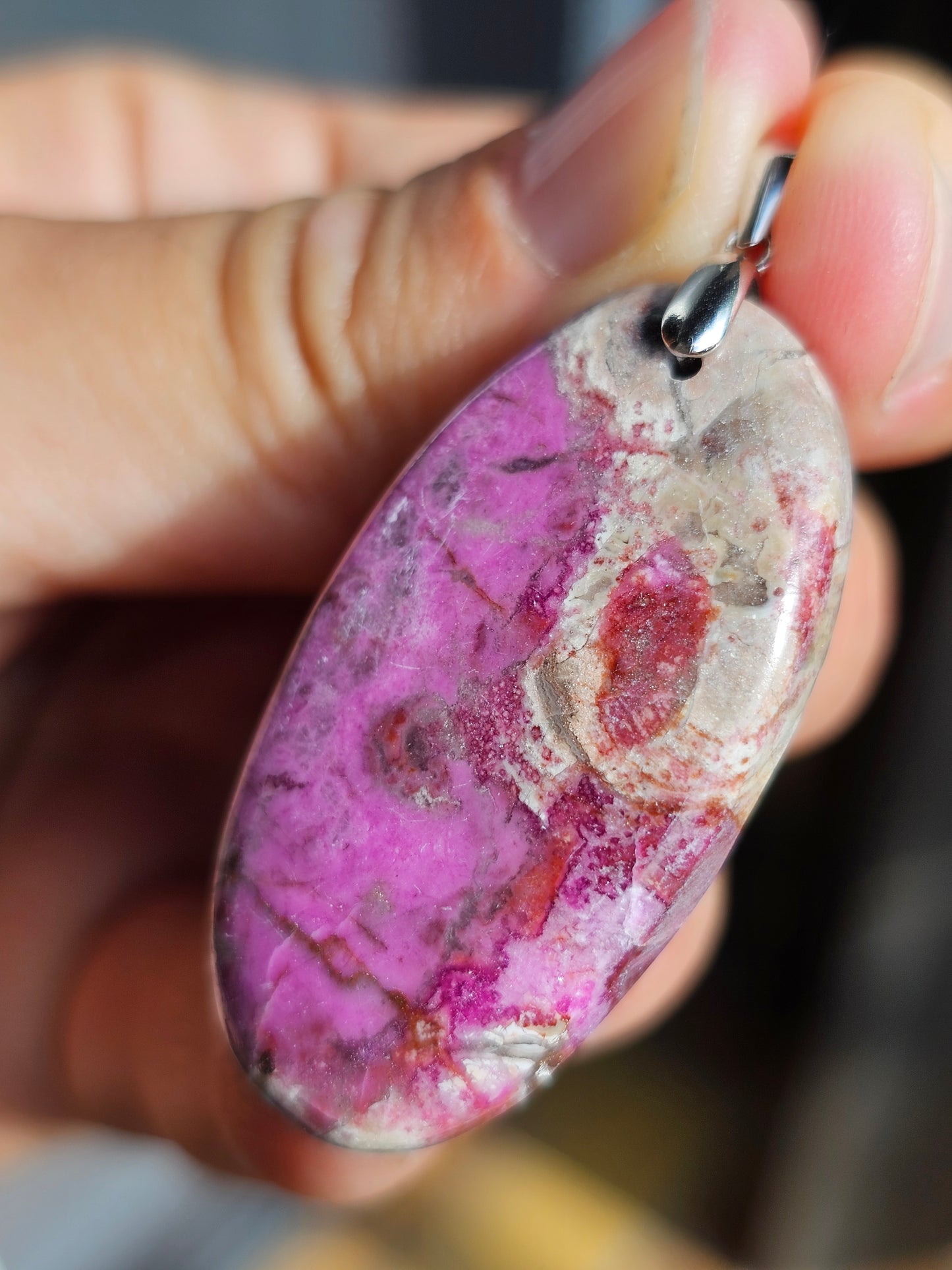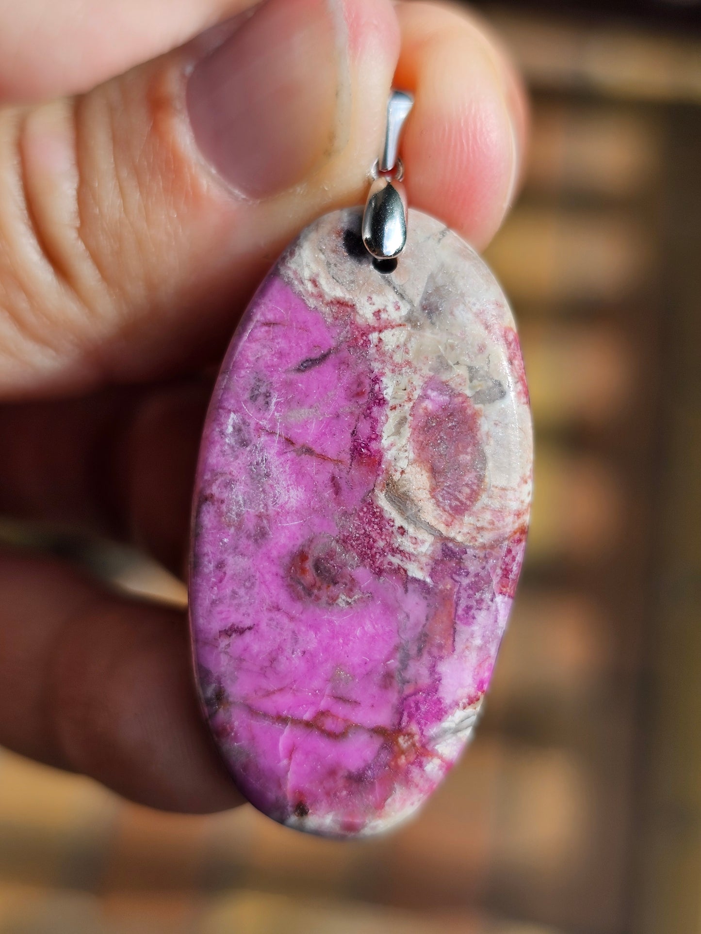 Joli pendentif en Cobaltocalcite monté sur une bélière en argent 925.