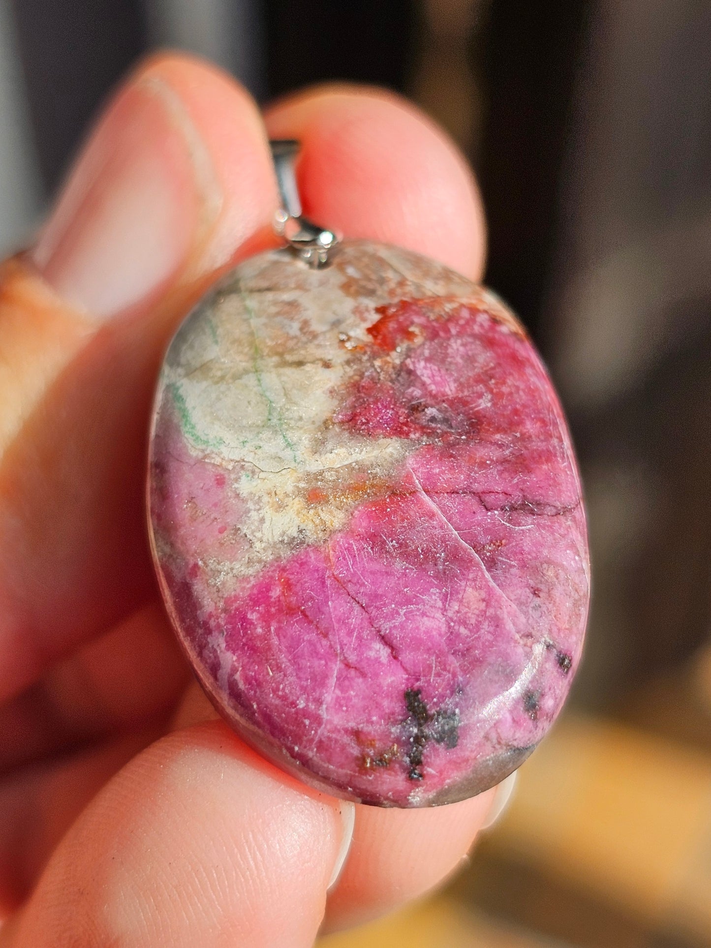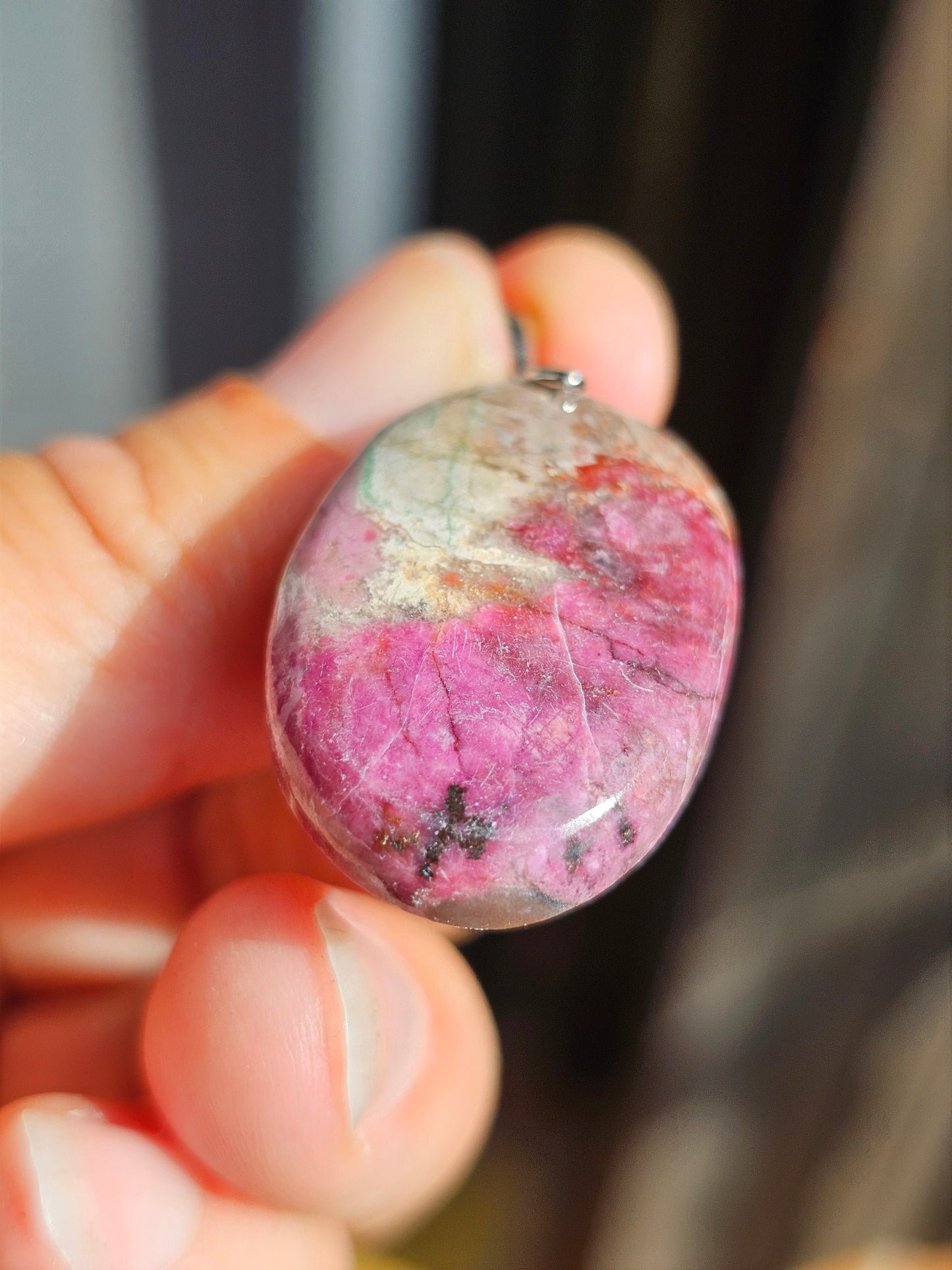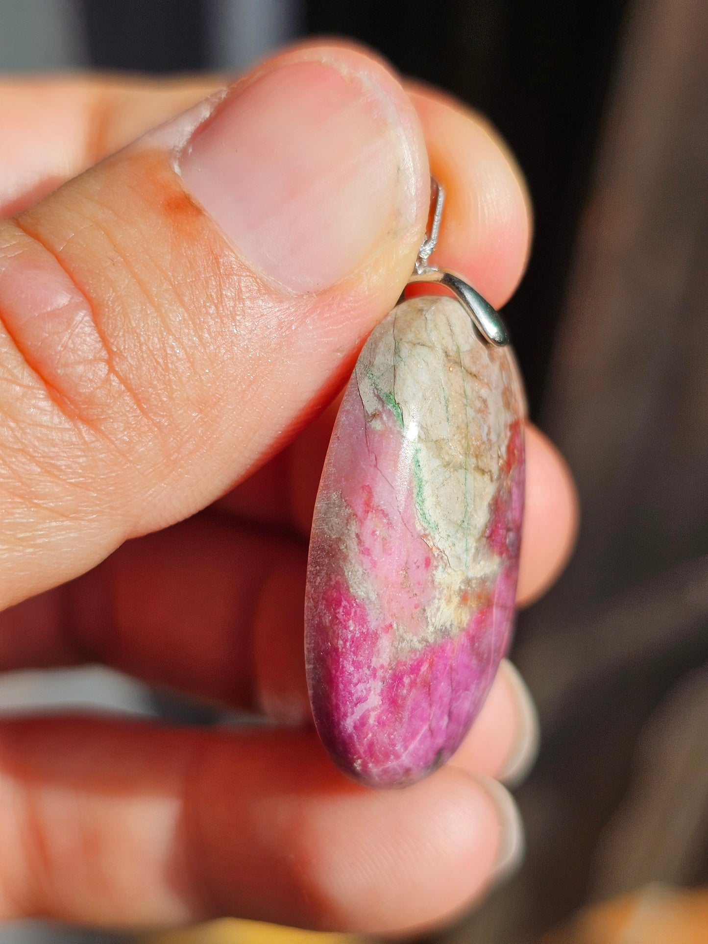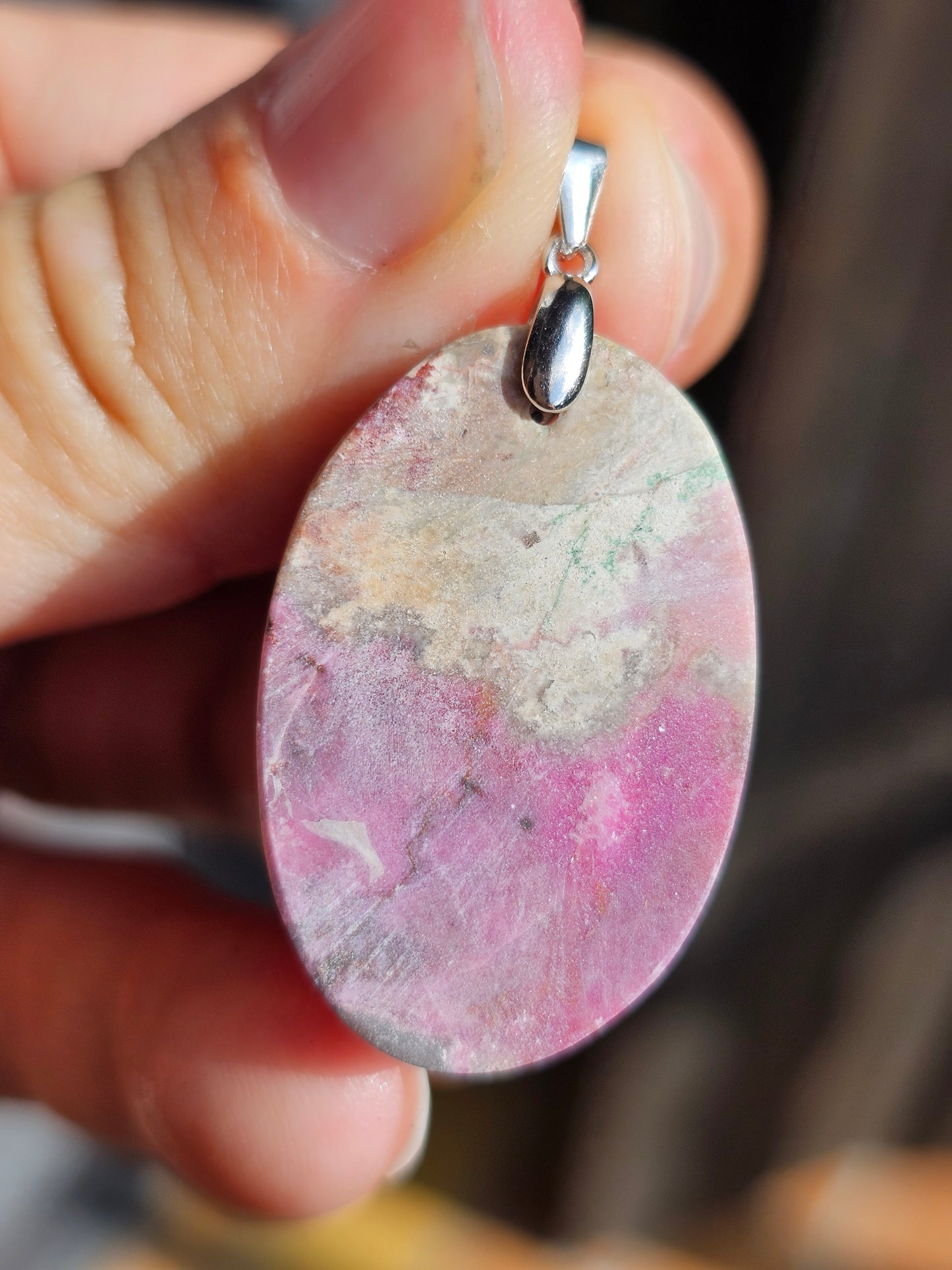 Joli pendentif en Cobaltocalcite monté sur une bélière en argent 925.