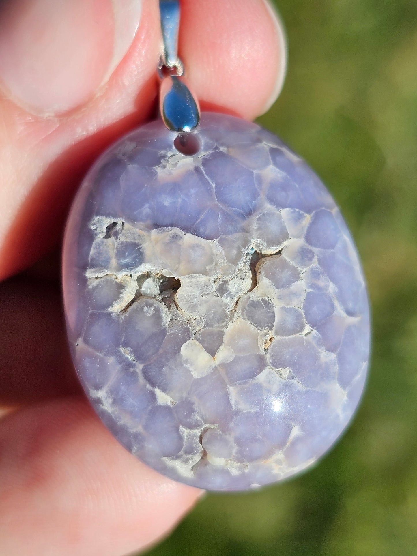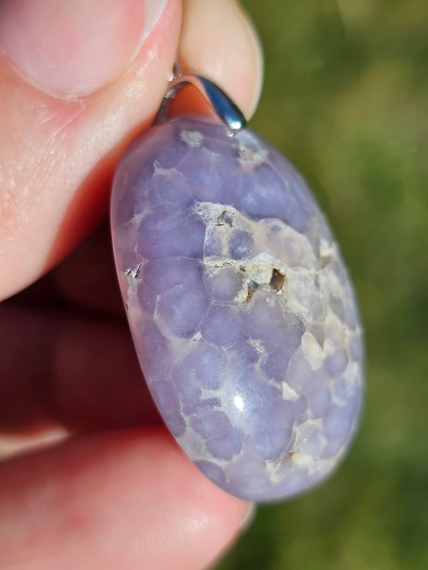 Joli pendentif en Agate grappe, également appelé Agate raisin, monté sur une bélière en argent 925.