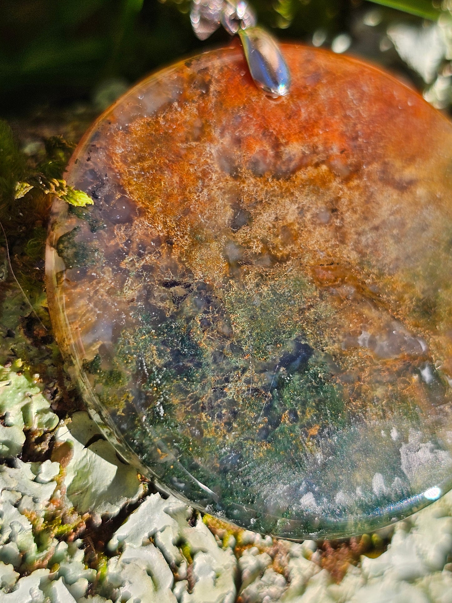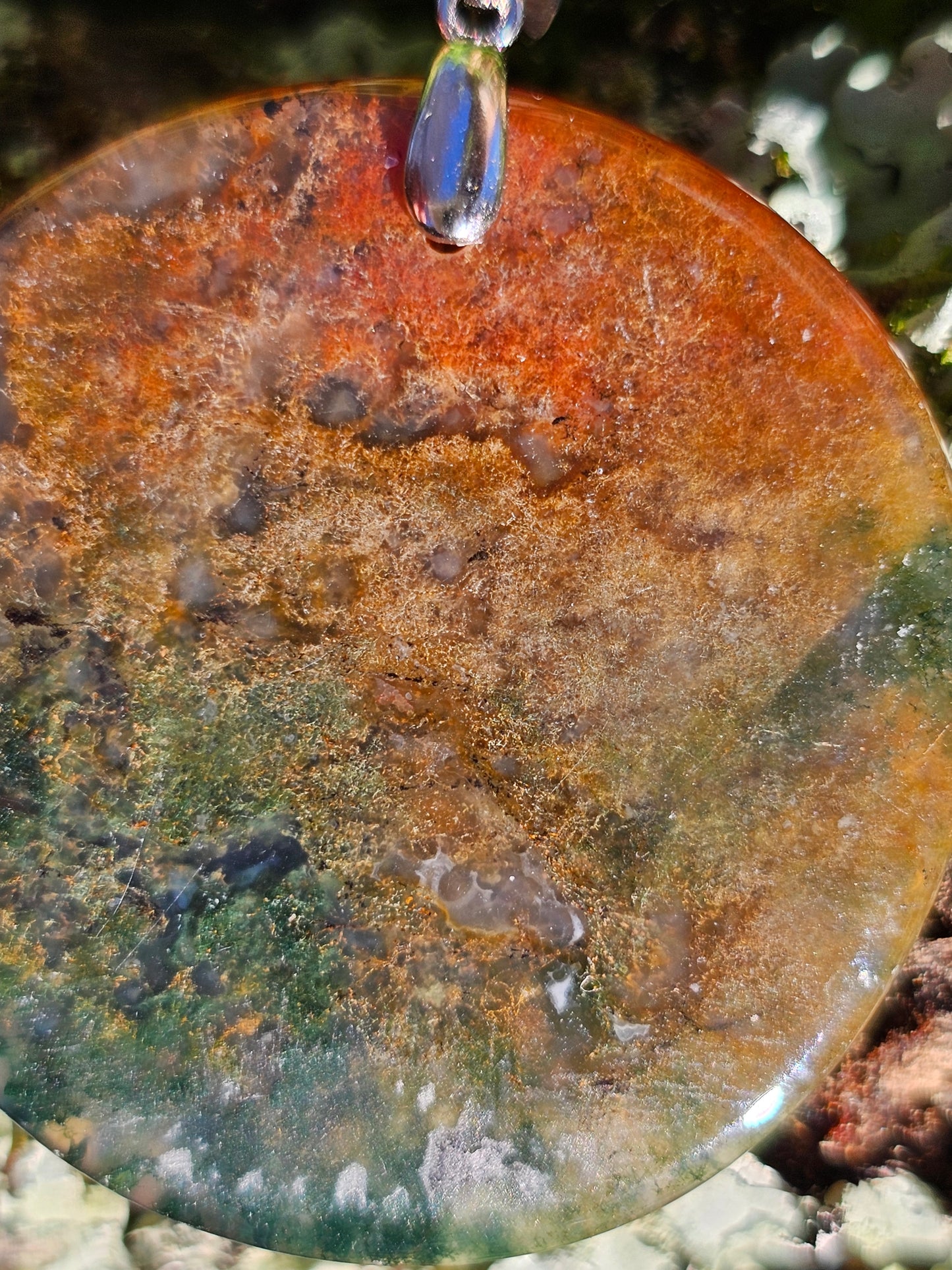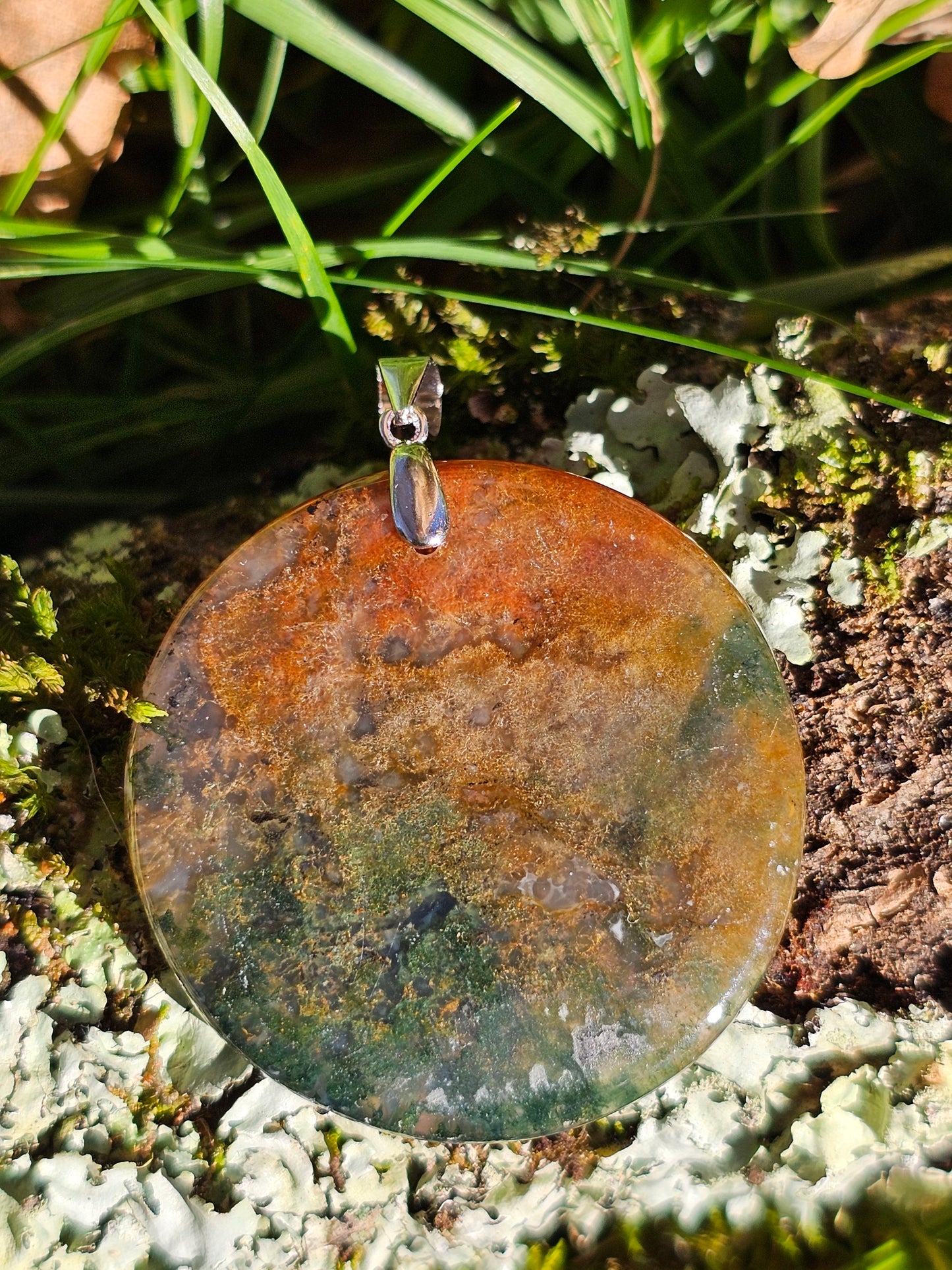 Magnifique pendentif en Agate mousse verte et rouge monté sur une bélière en argent 925. Un vrai bout de Nature autour de votre cou !