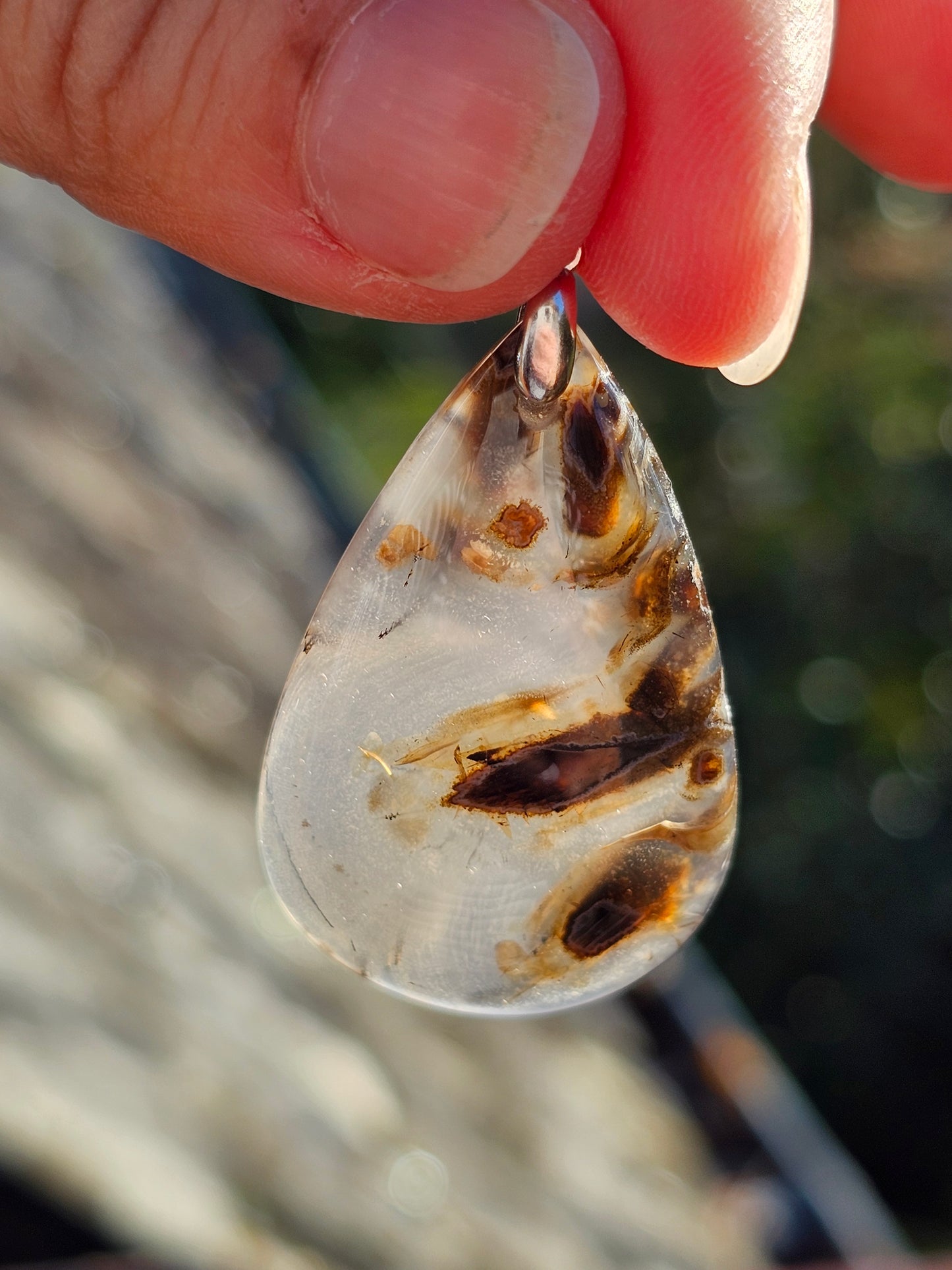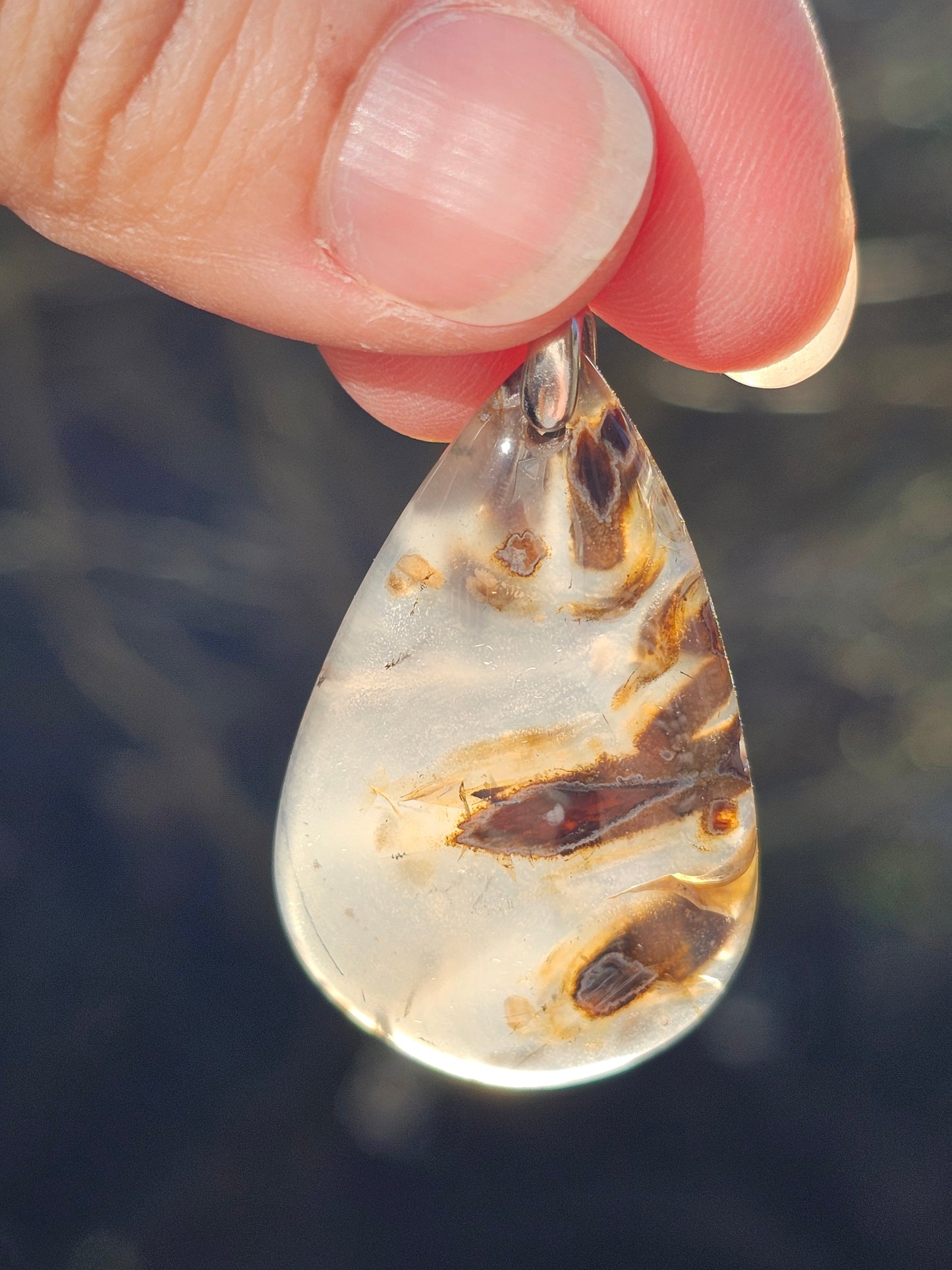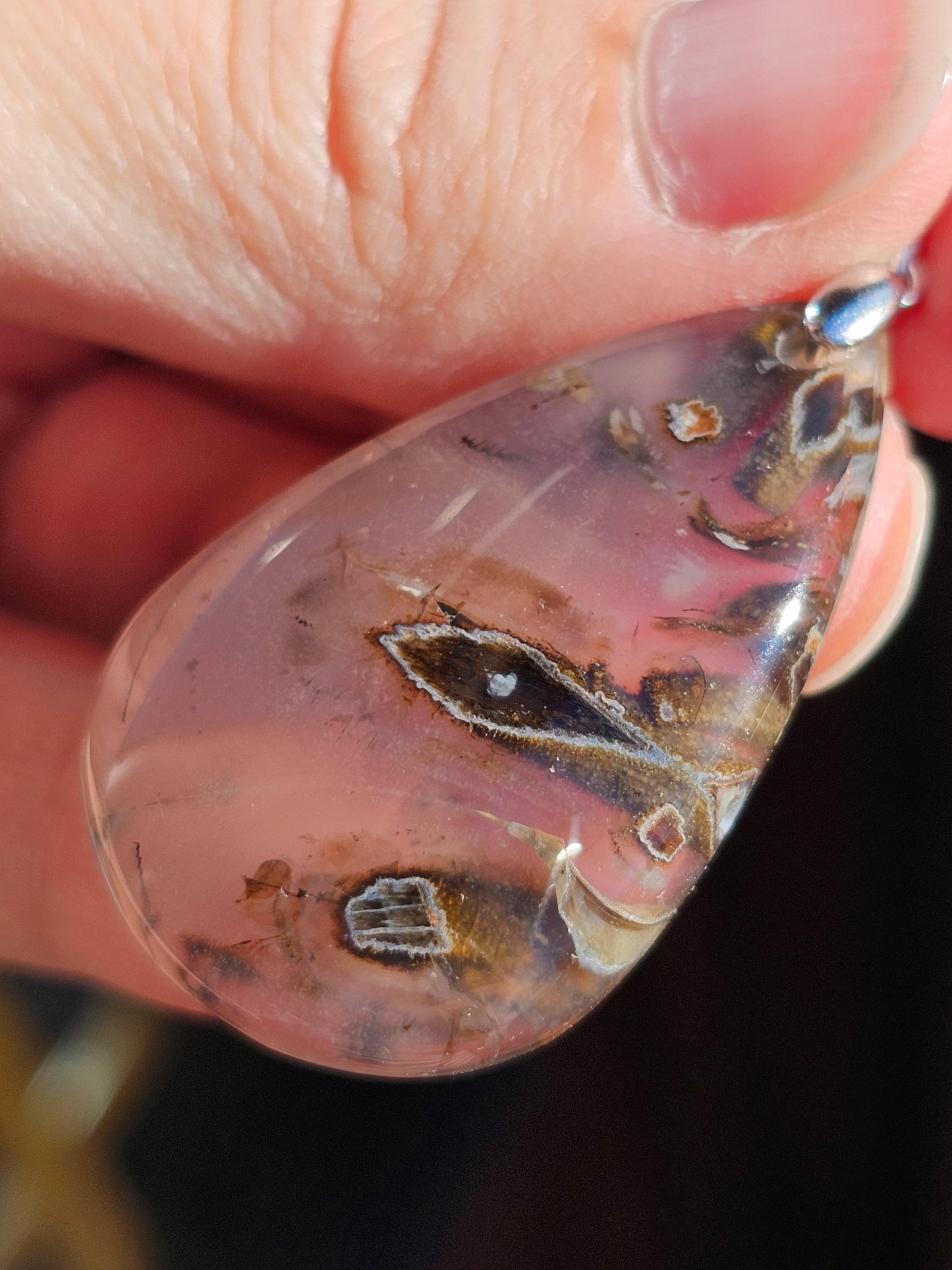 Magnifique pendentif en Agate stick de Turquie, monté sur une bélière en argent 925.