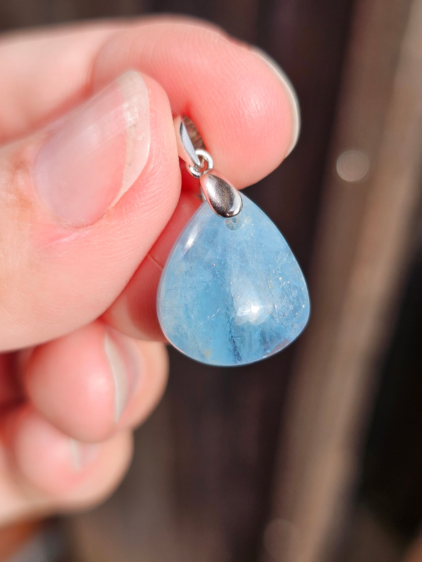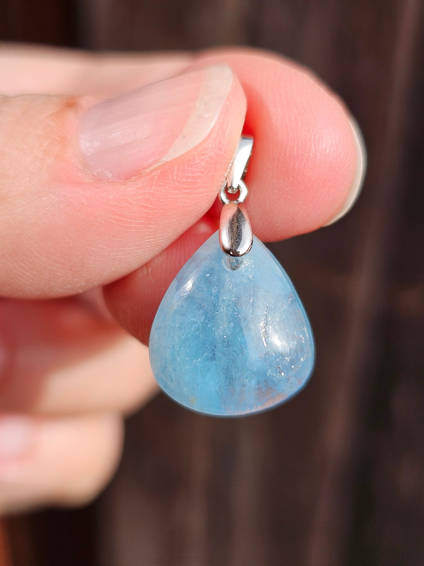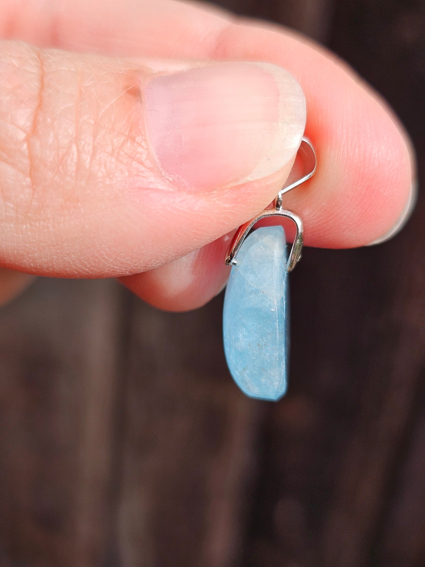 Magnifique pendentif en Aigue-marine du Brésil monté sur une bélière en argent 925. (vidéo disponible en cliquant ici)
