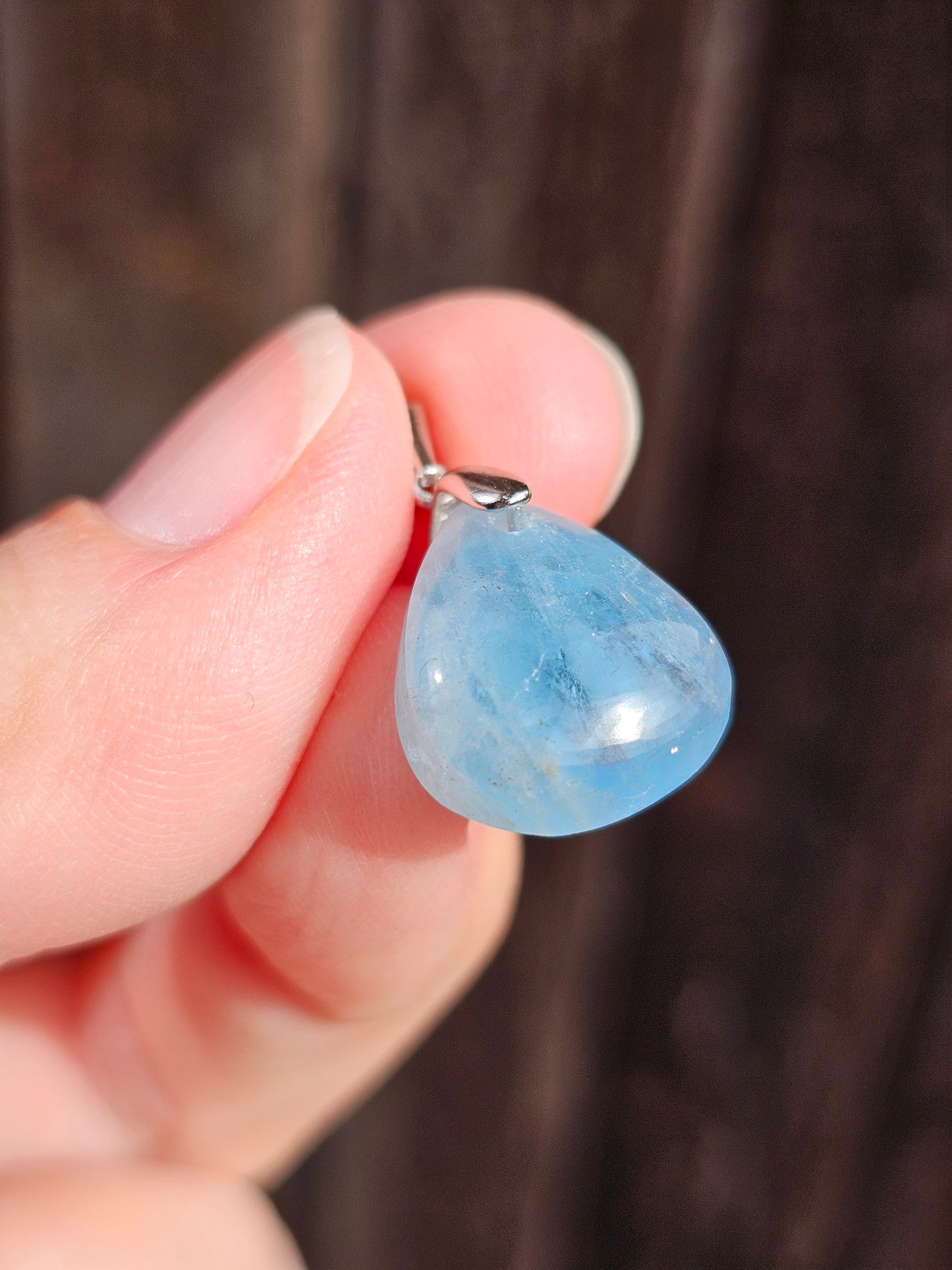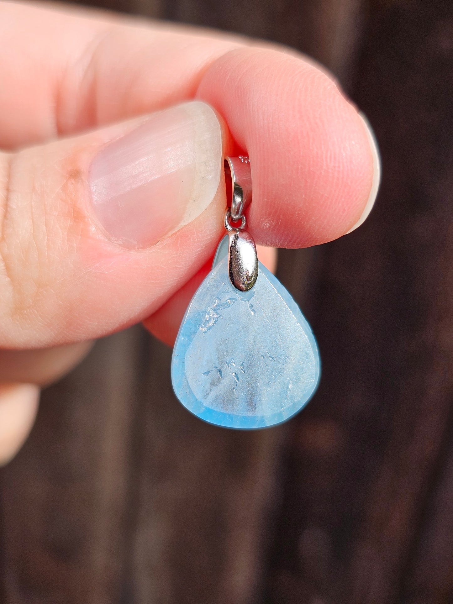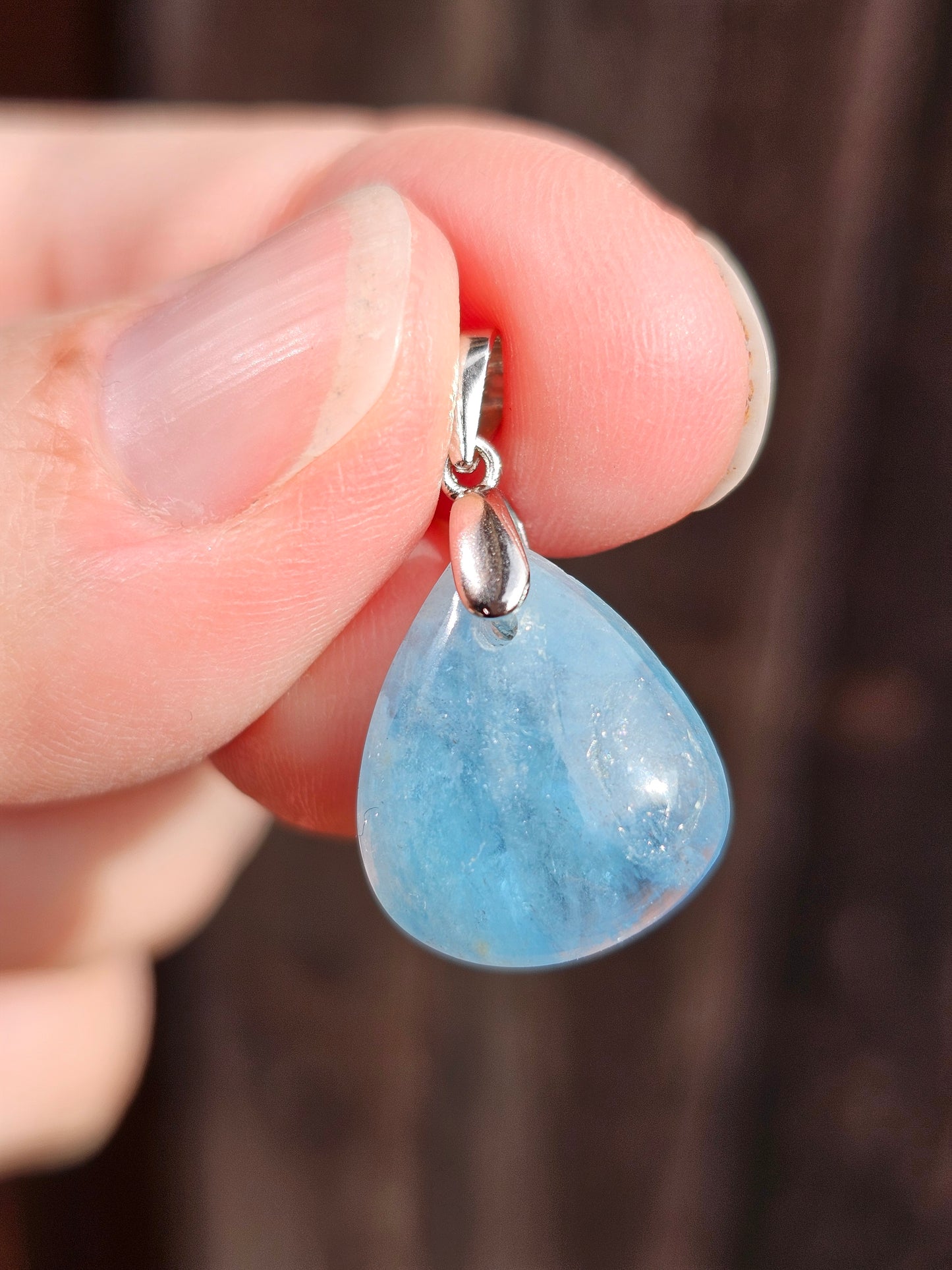 Magnifique pendentif en Aigue-marine du Brésil monté sur une bélière en argent 925. (vidéo disponible en cliquant ici)