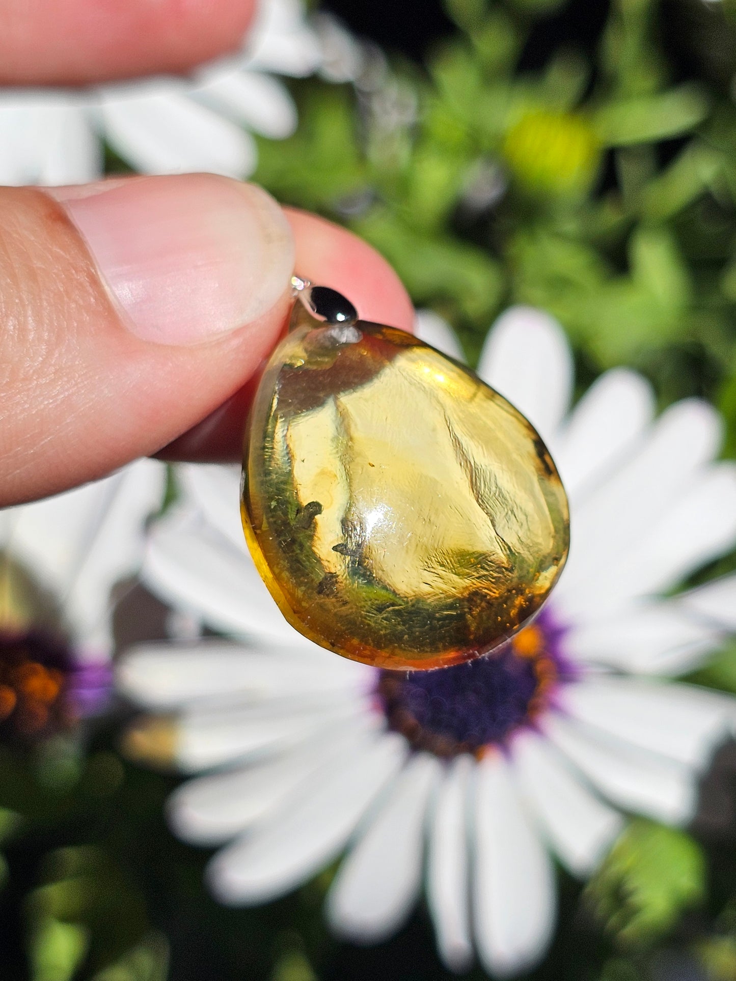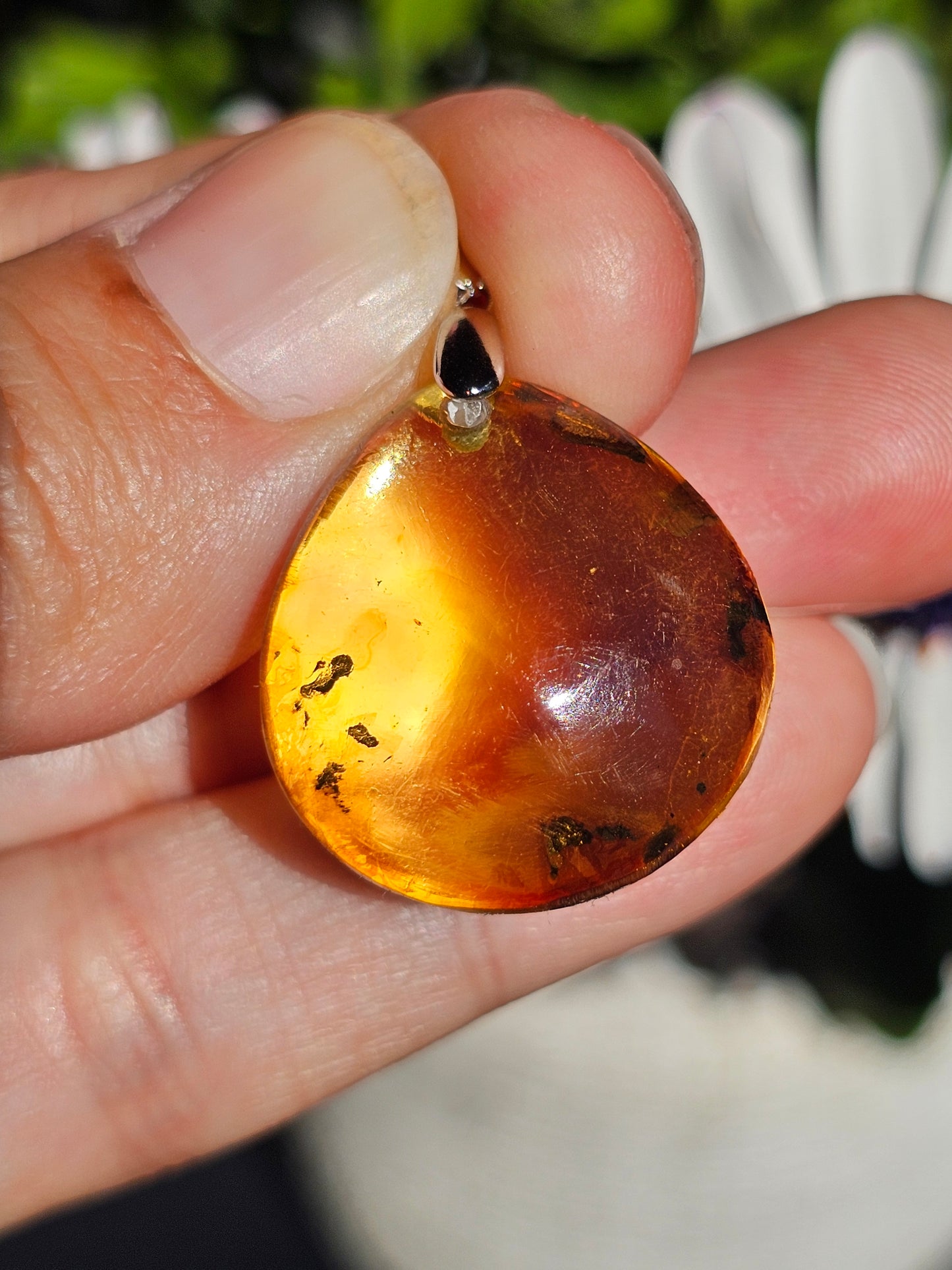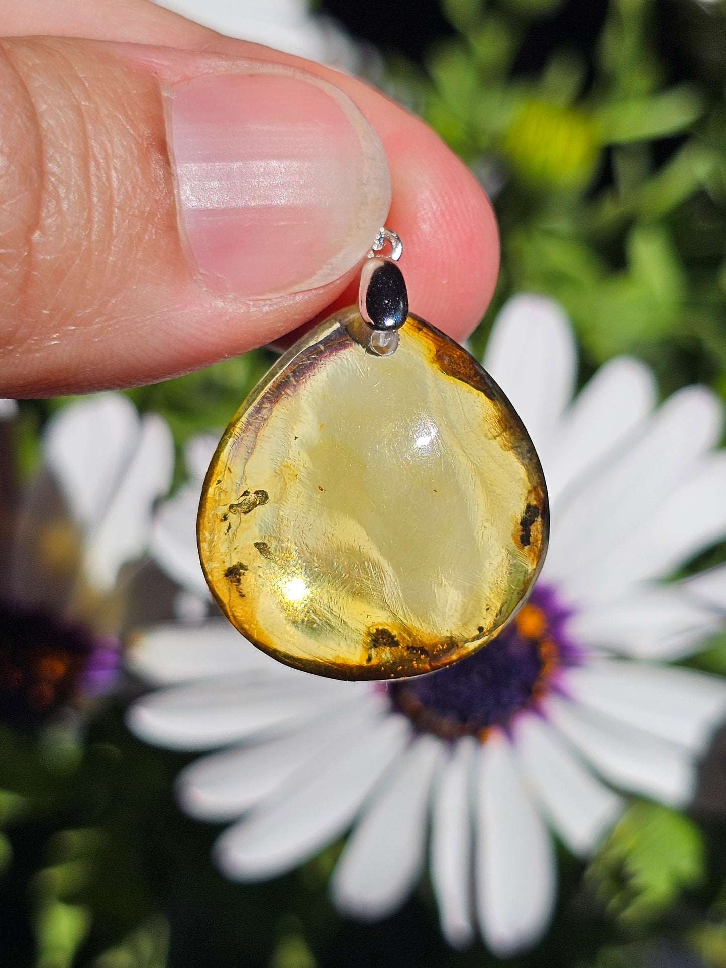 Joli pendentif en Ambre baltique naturelle monté sur une bélière en argent 925. (vidéo en cliquant ici)