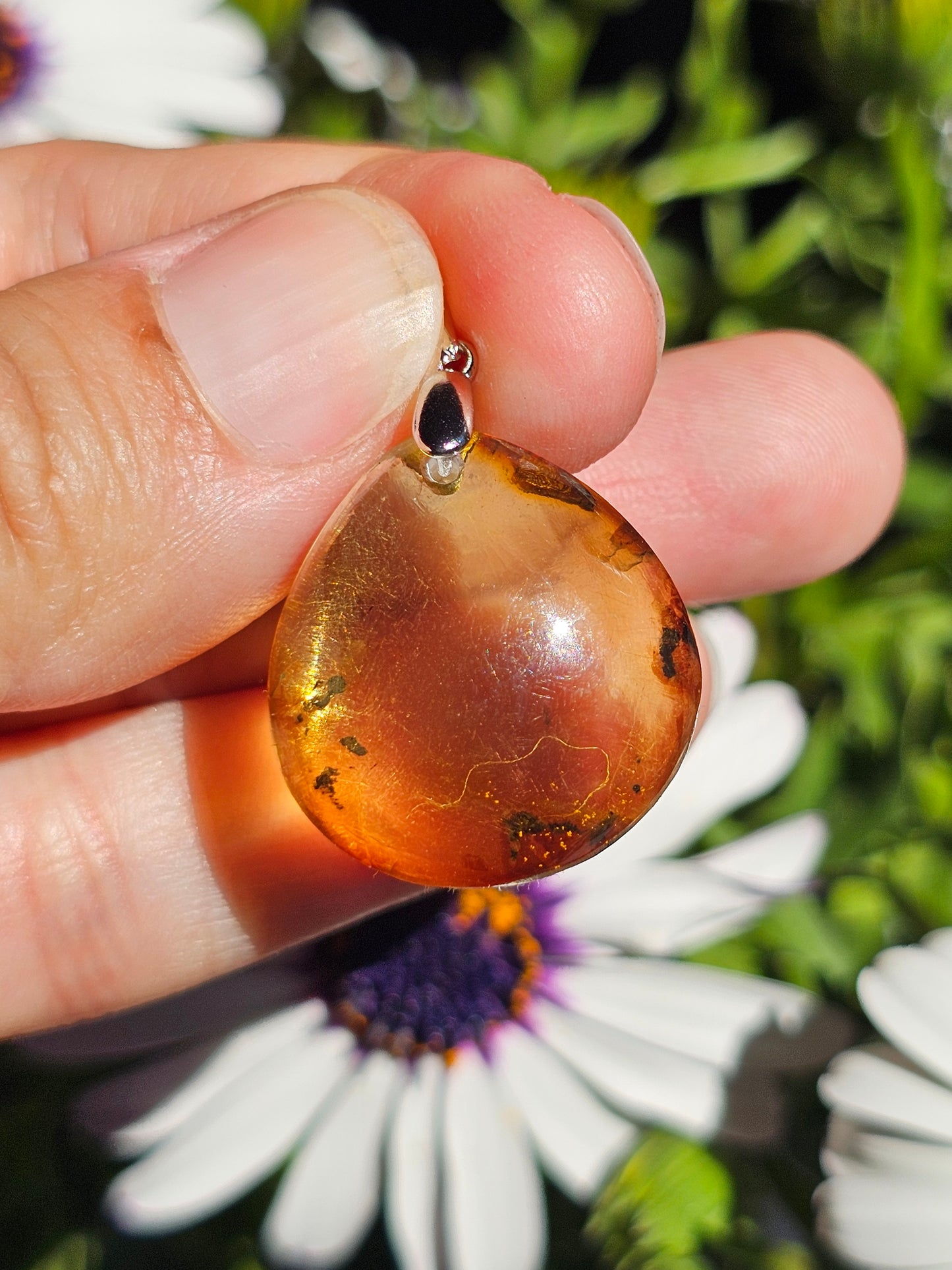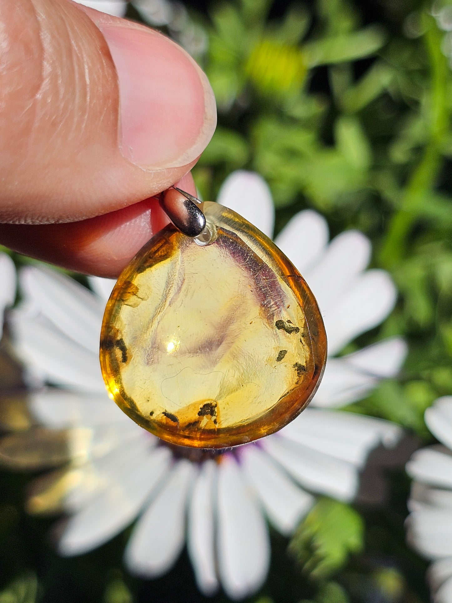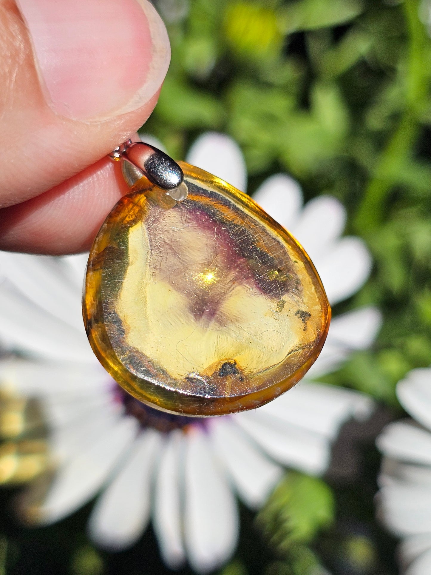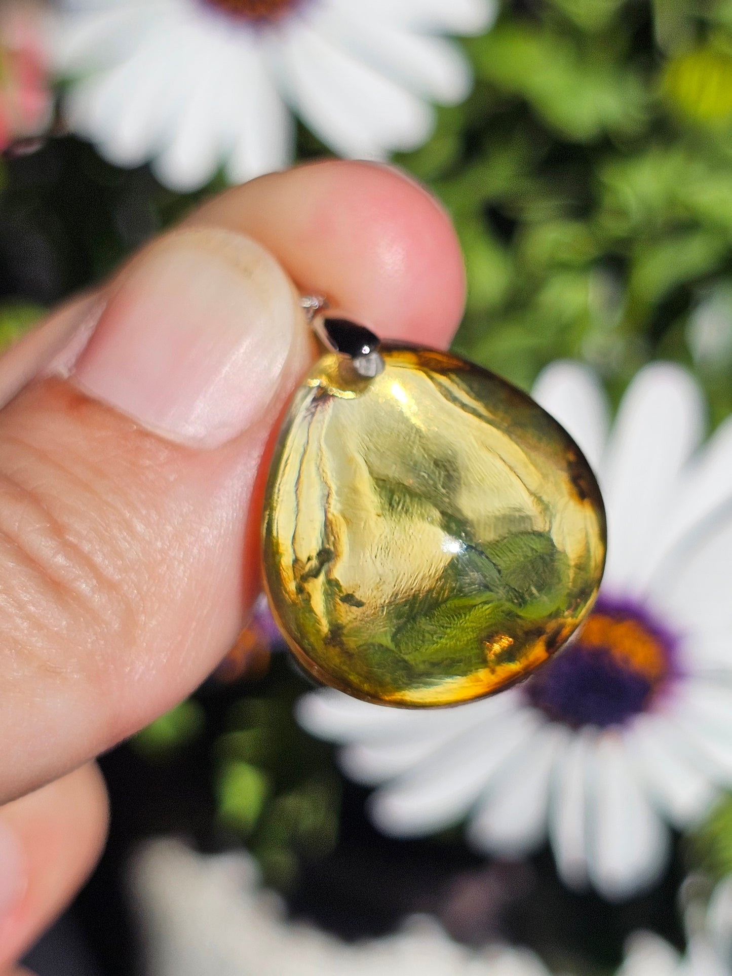 Joli pendentif en Ambre baltique naturelle monté sur une bélière en argent 925. (vidéo en cliquant ici)