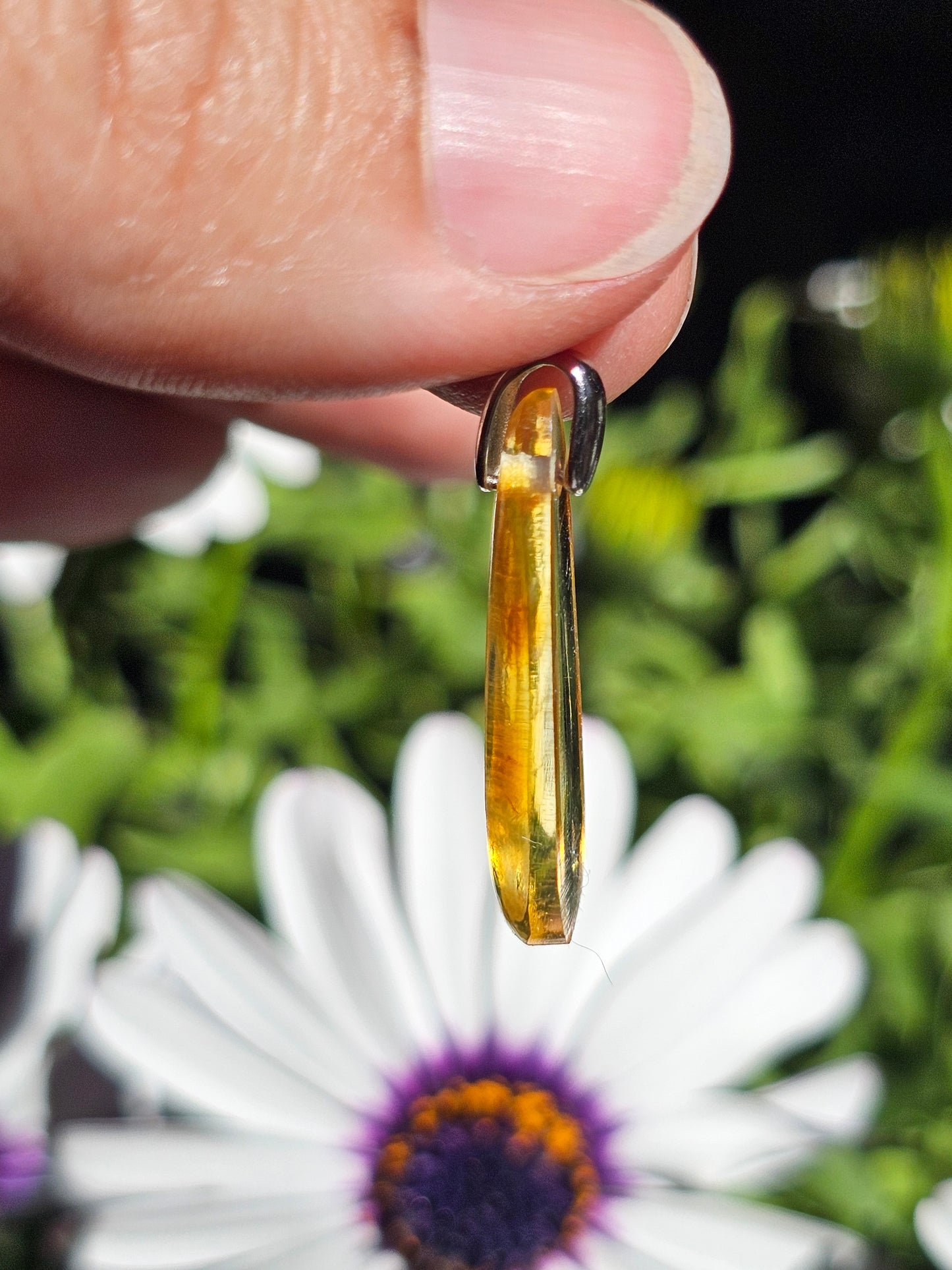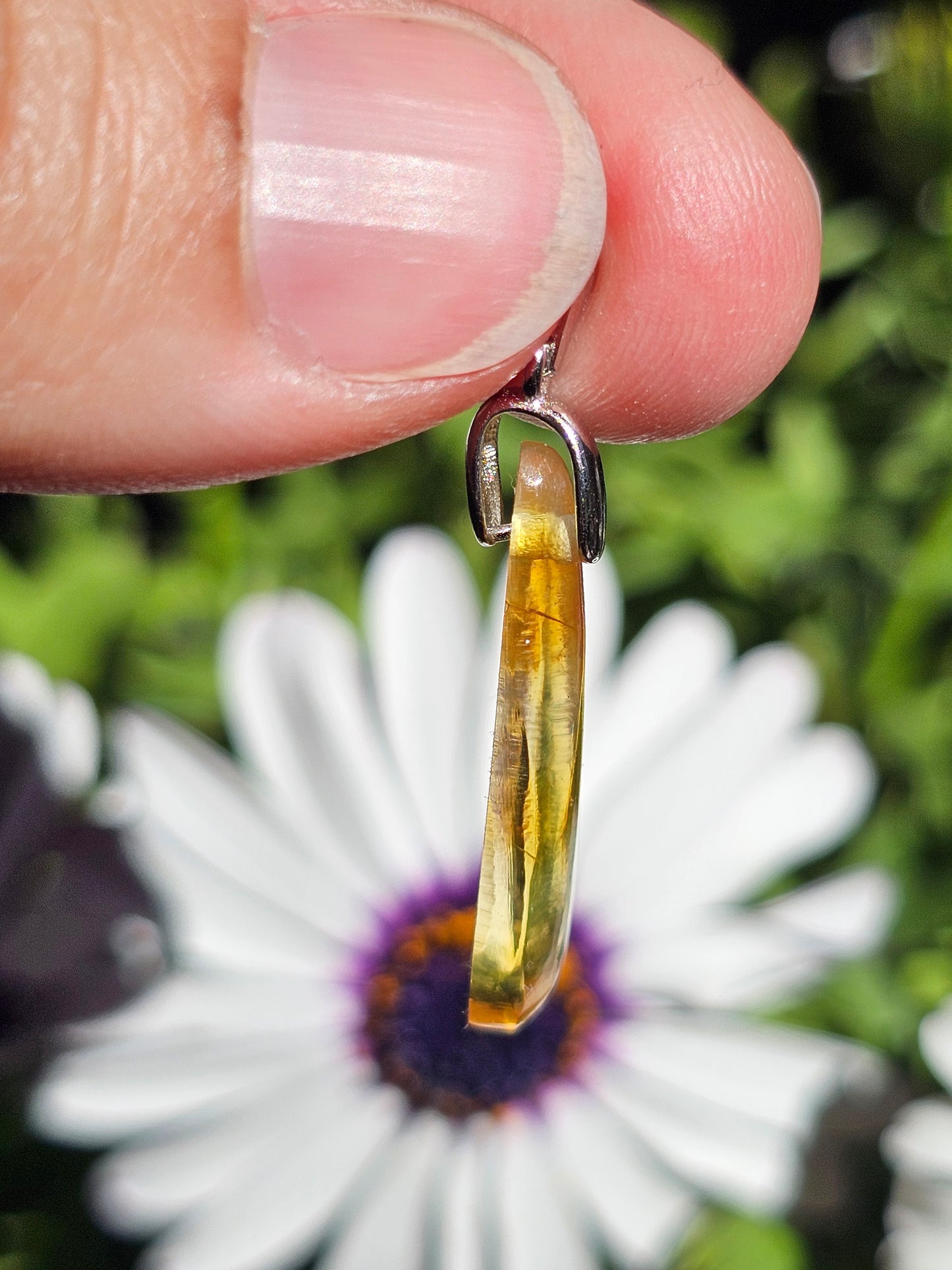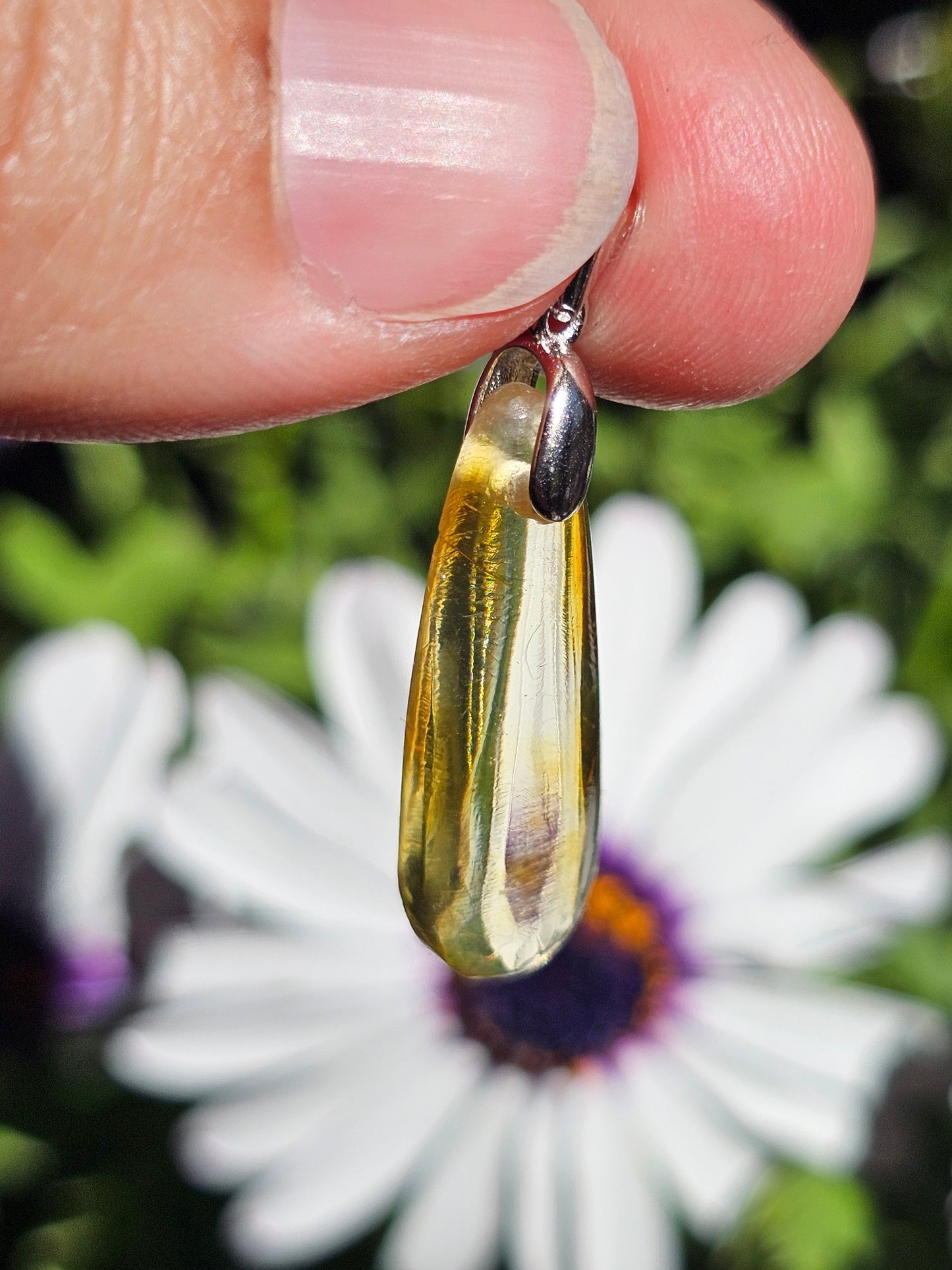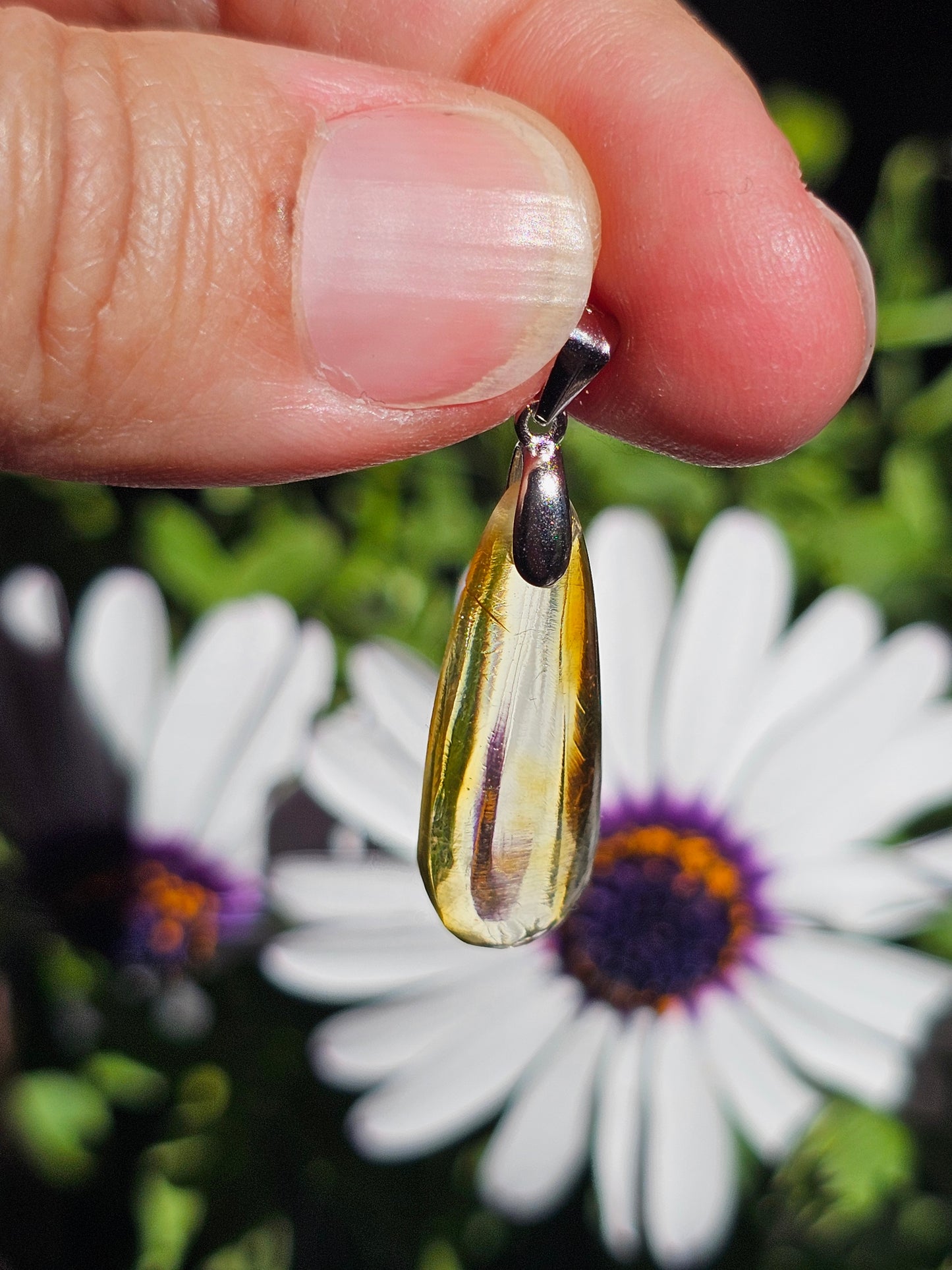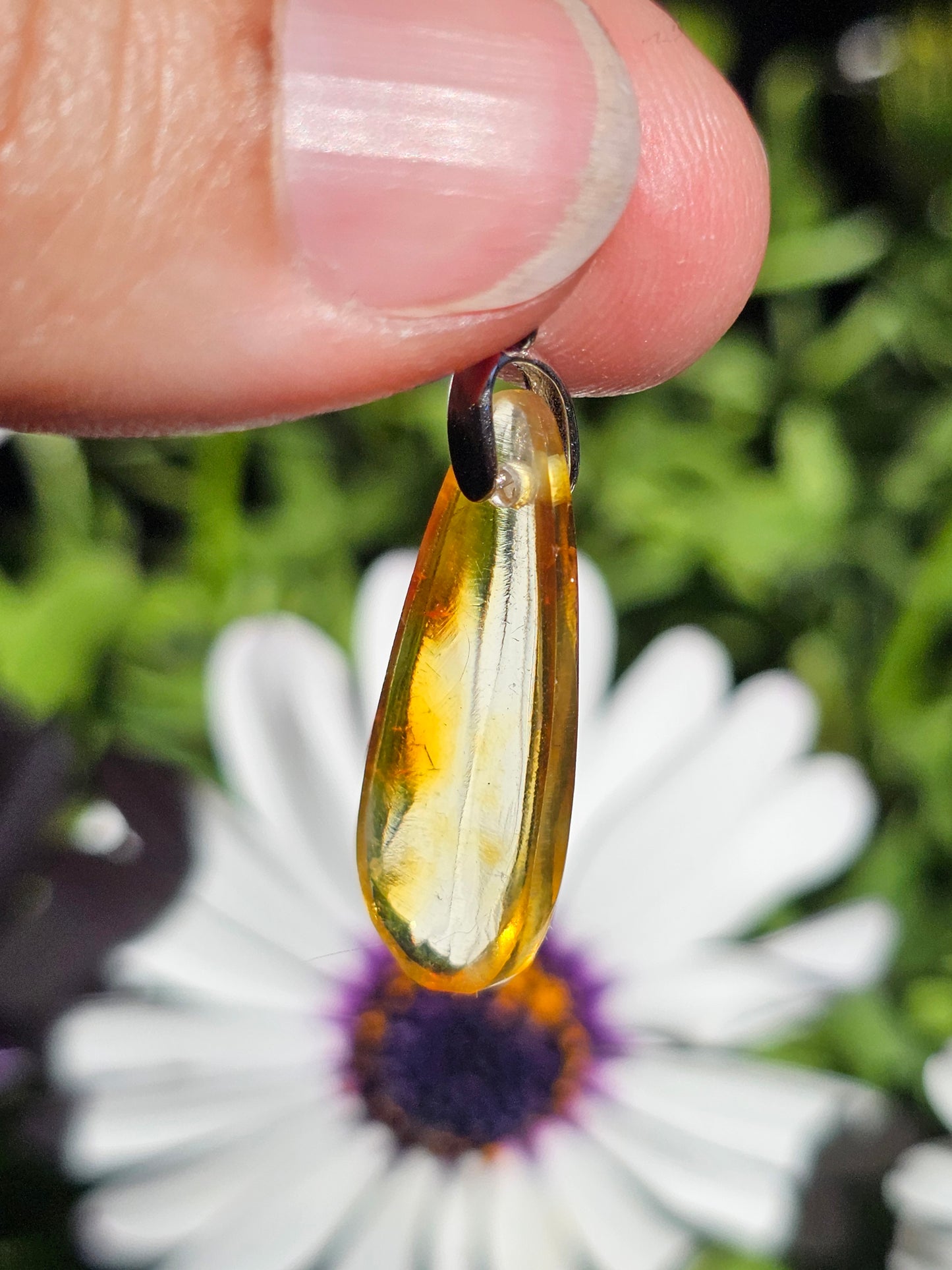 Joli pendentif en Ambre baltique naturelle monté sur une bélière en argent 925. (vidéo en cliquant ici)