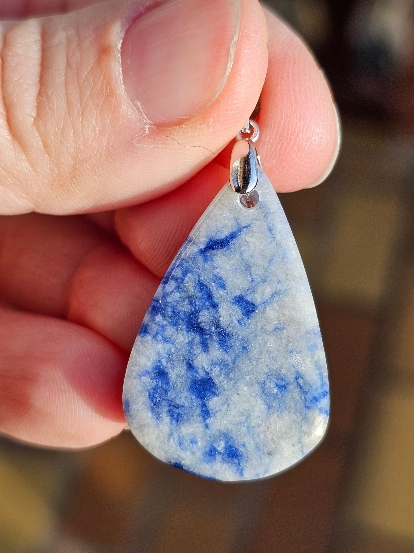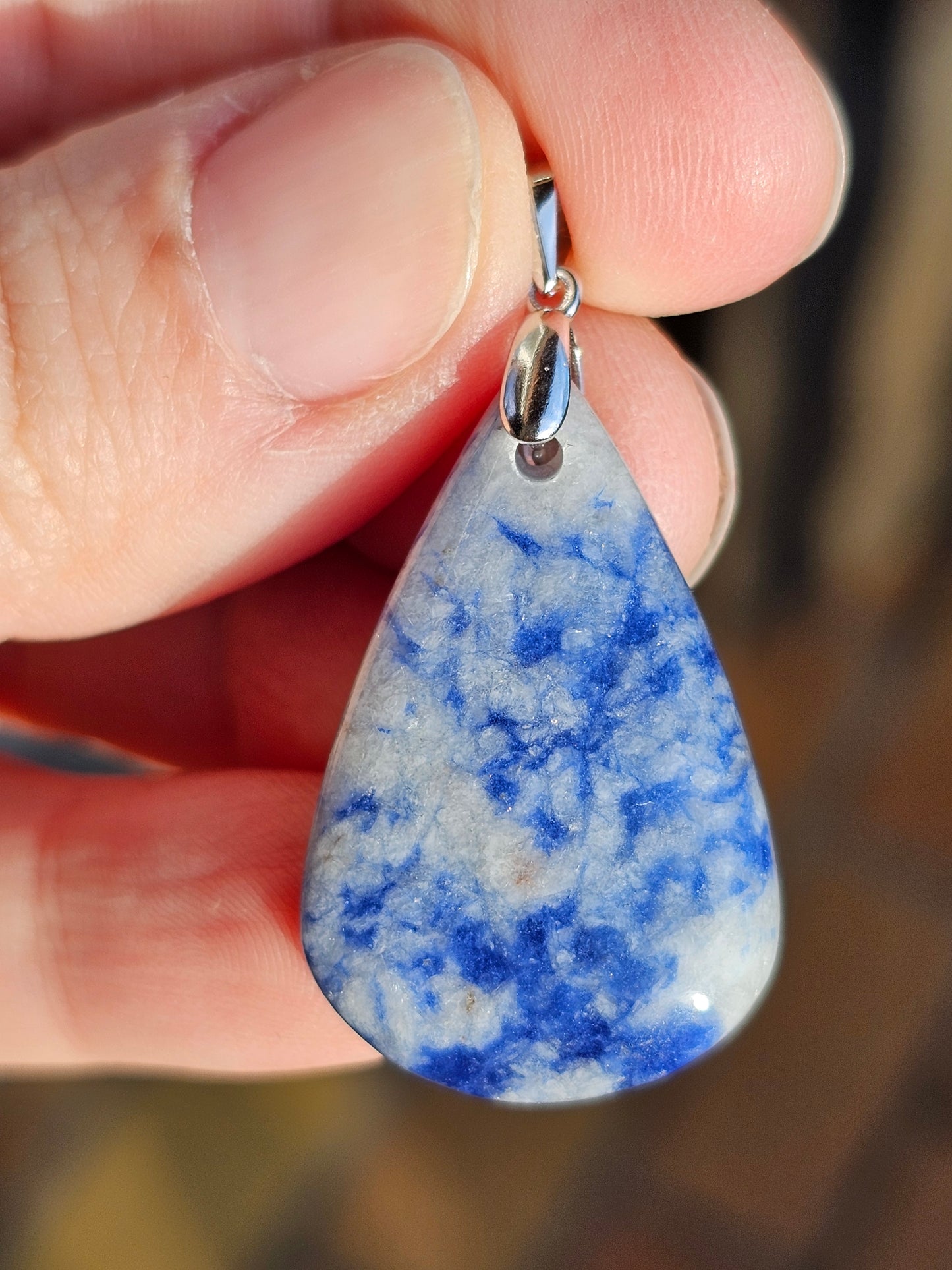 Joli pendentif en Dumortiérite monté sur une bélière en argent 925.